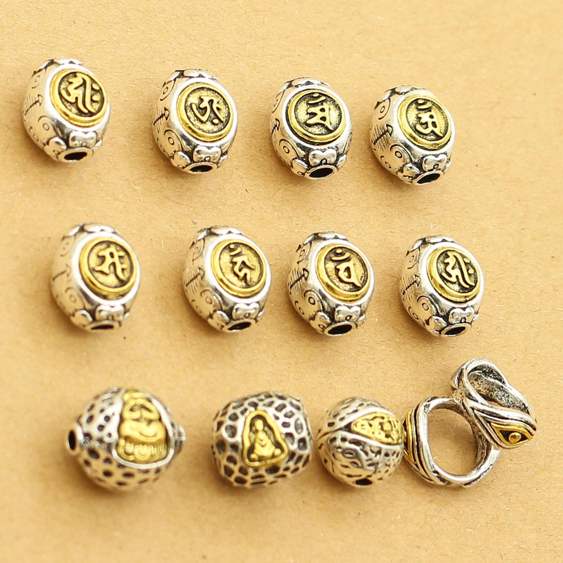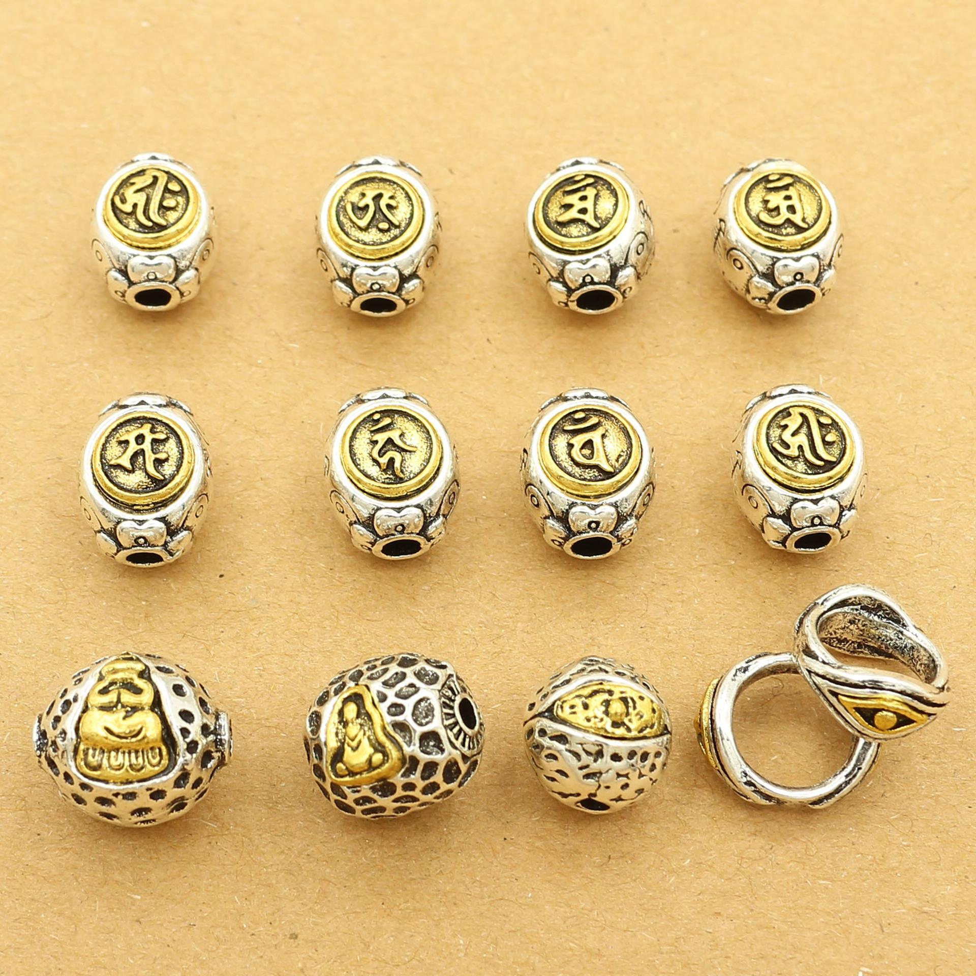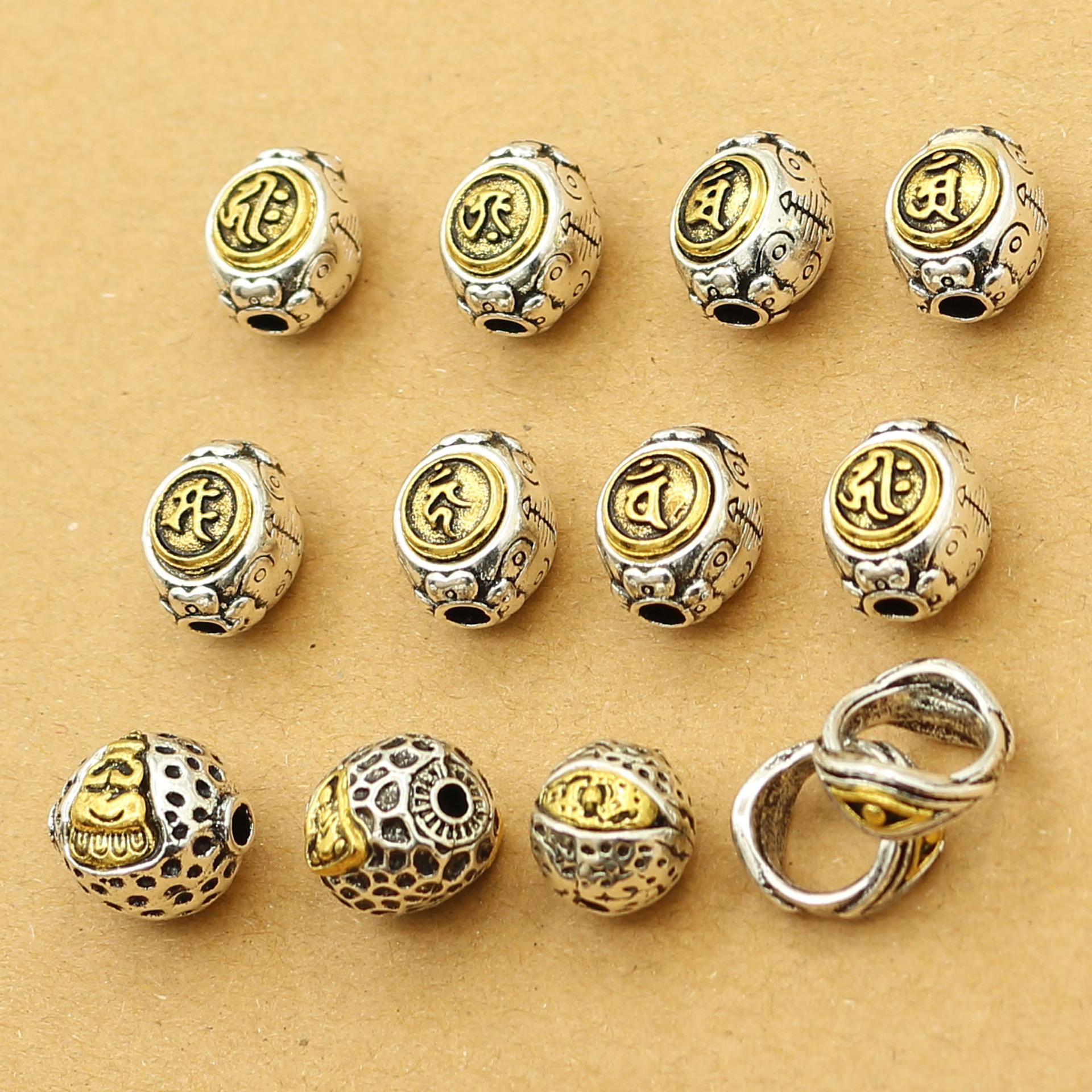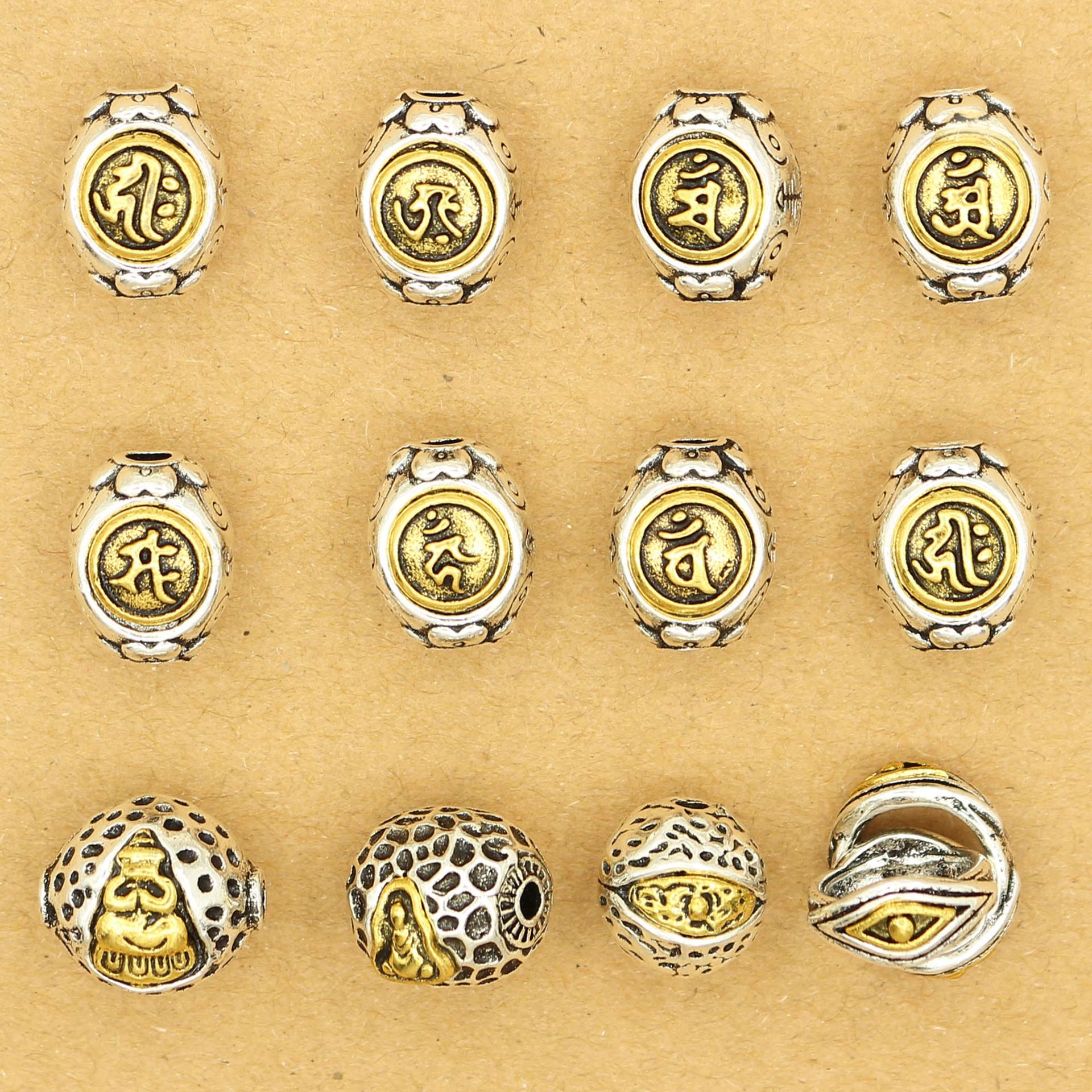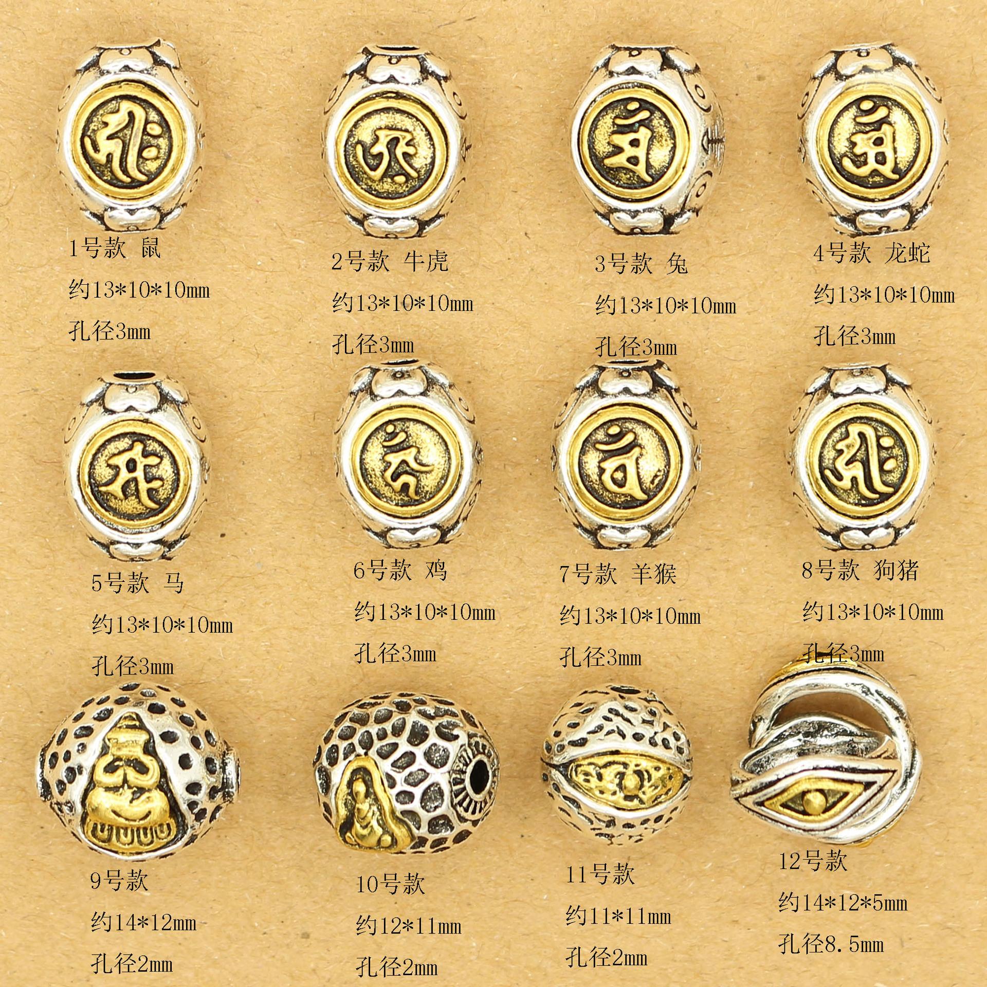 Retro Plata Tibetana Zodiaco Accesorios DIY Pulsera Pulsera Ocho Cuentas Guardianas Accesorios de Joyería Cuentas Dispersas