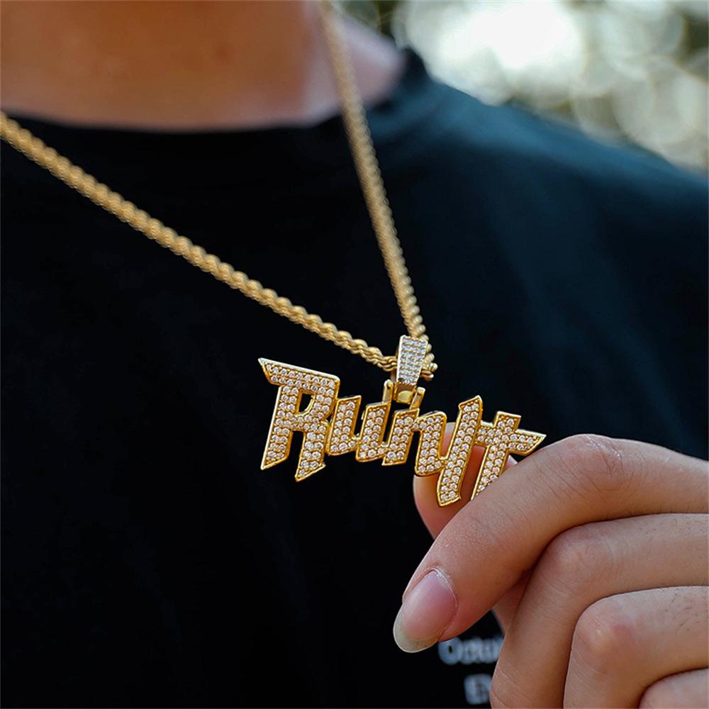 Collar con colgante de letra de hip-hop europeo y americano de circonio completo, nuevo, con incrustaciones de circonio de cobre con diamantes completos, transfronterizo para accesorios de letras
