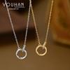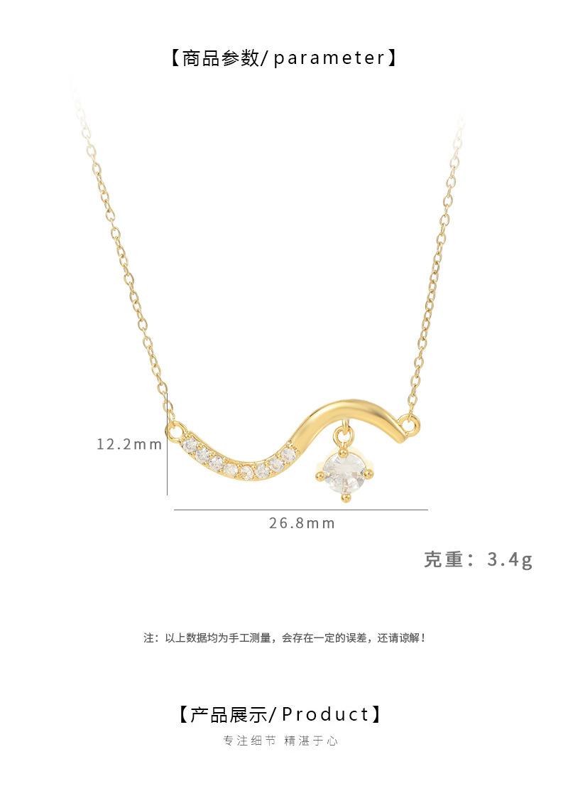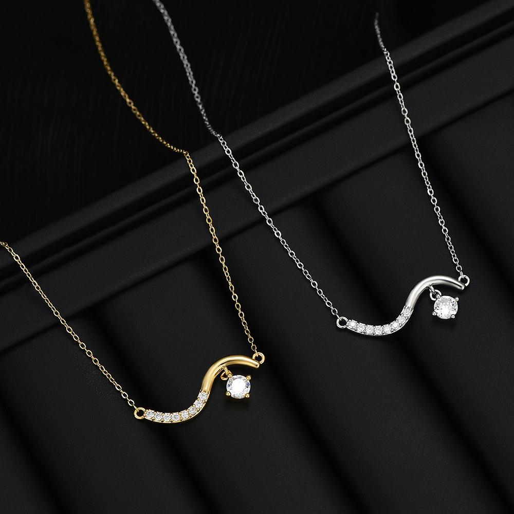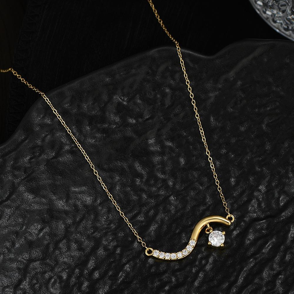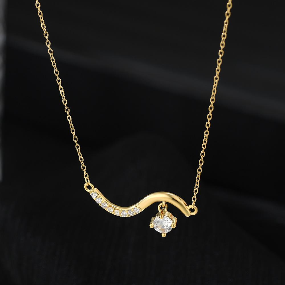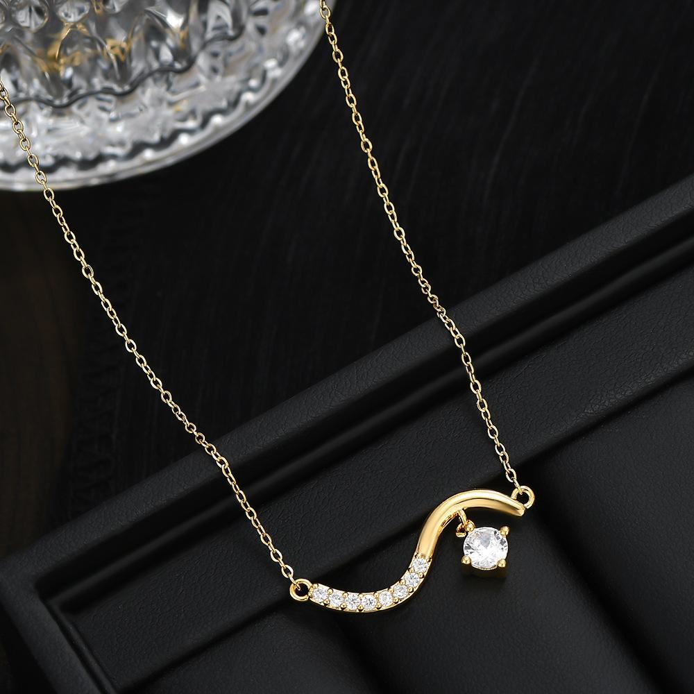 Elegante cadena de clavícula con microincrustaciones de circonitas galvanizadas en oro auténtico, diseño de nicho, collar con ondas irregulares y cadena de cuello con viento.