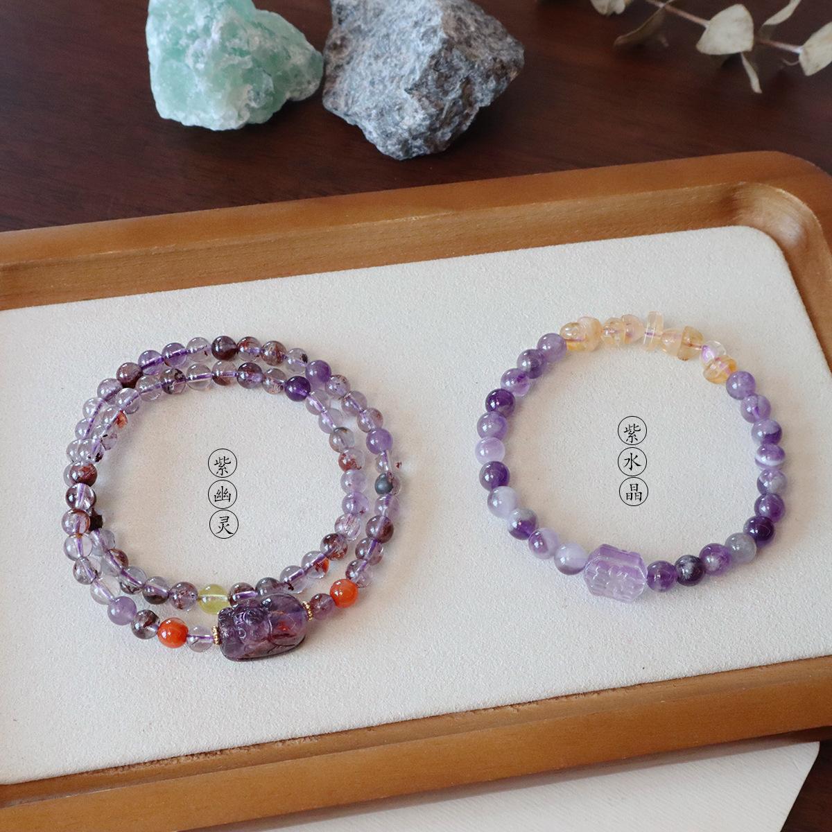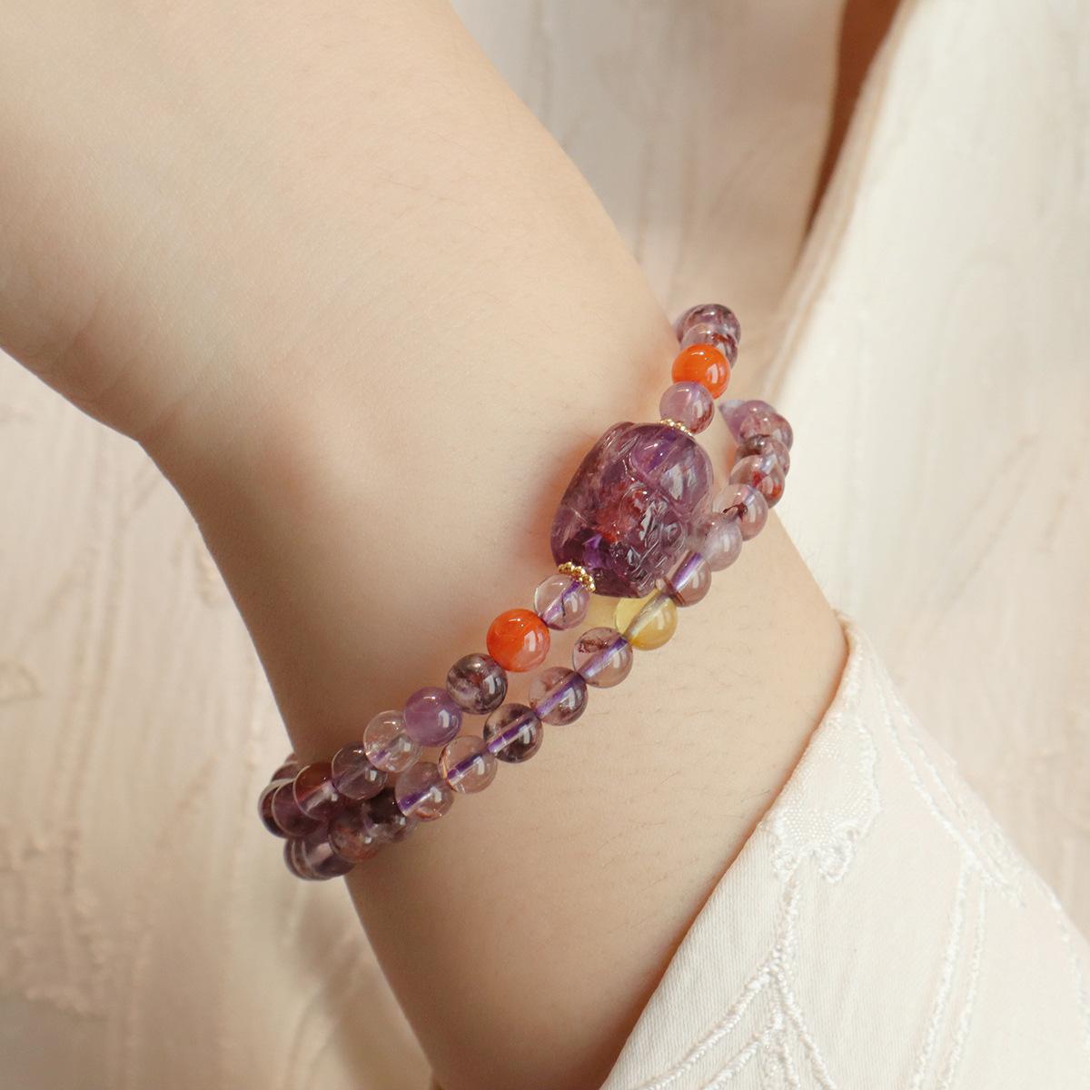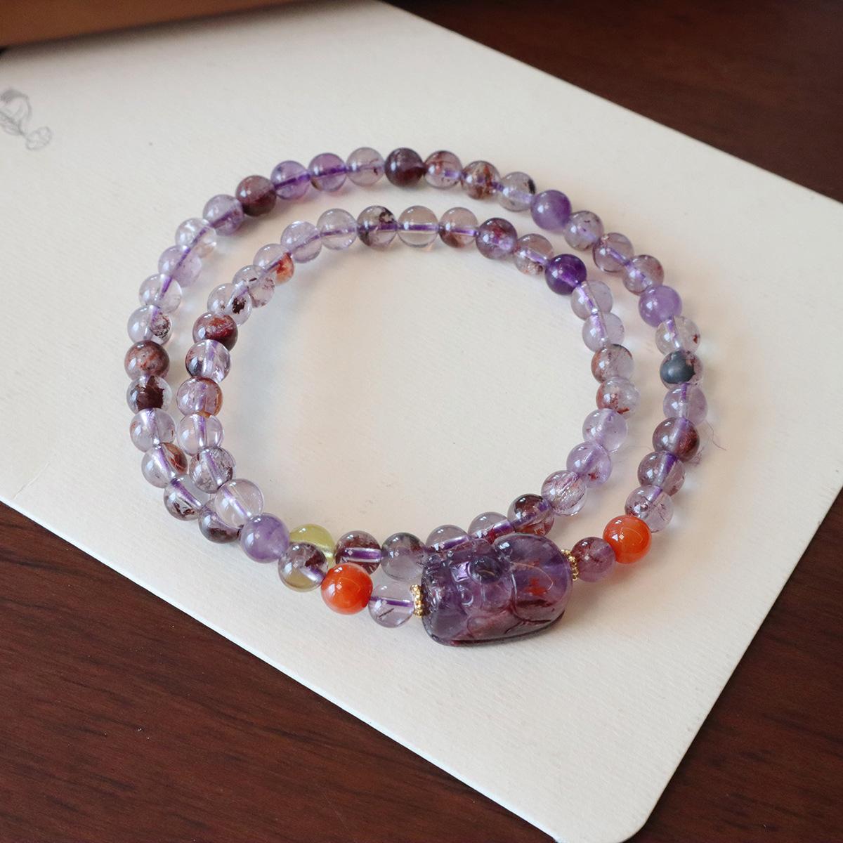 Double circle natural purple ghost pixiu bracelet, Natural amethyst transfer bead bracelet welfare model