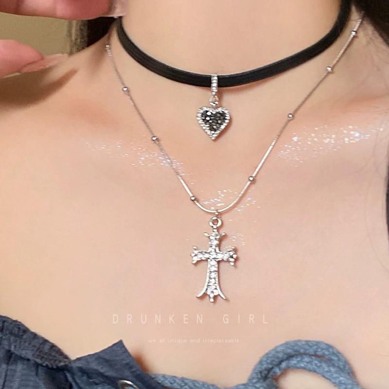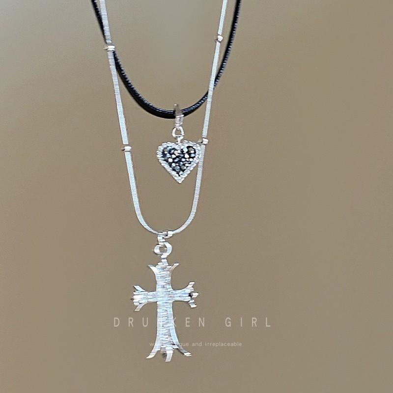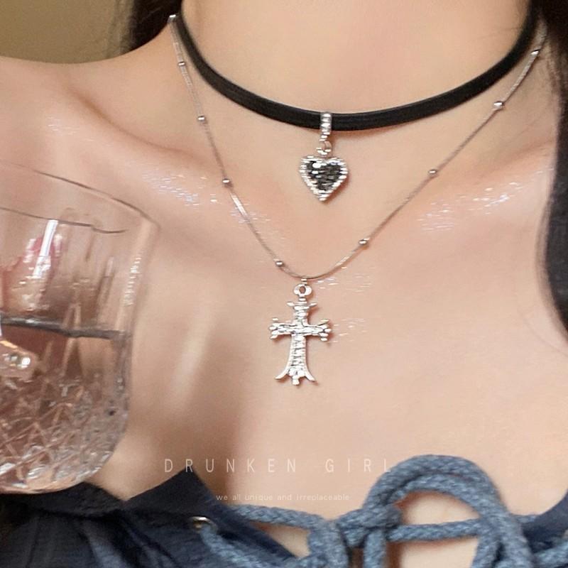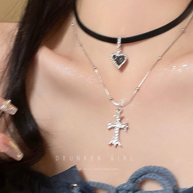 Collar retro con cruz de amor para mujer, de verano, ligero, de lujo, con diseño de nicho, cadena de clavícula para chica dulce, fresca y atractiva.