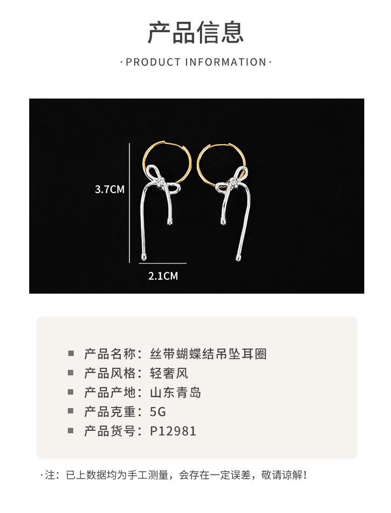 Aretes Colgantes de Lazo de Cinta Nuevo 2025, Diseño Nicho Retro Venta al por Mayor Aretes y Clips para Oreja de Alta Gama