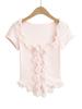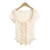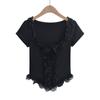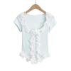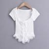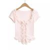 2024 Verano Nuevo Diseño Sentido Encaje Manga Corta T Puro Dulce Sexy Escote Bajo Slim Top T