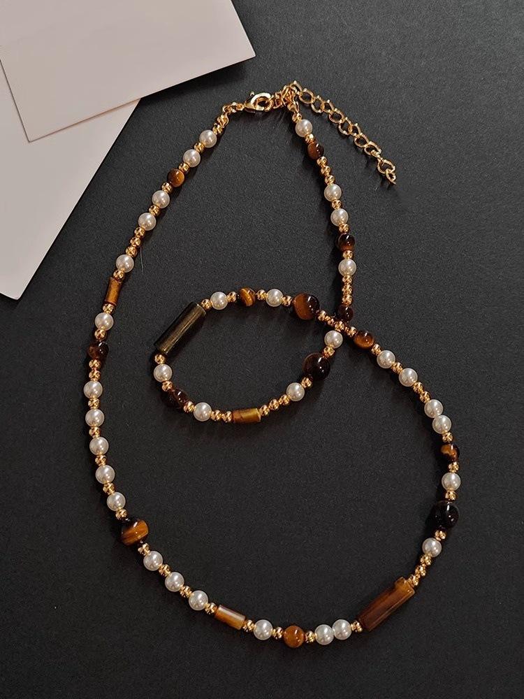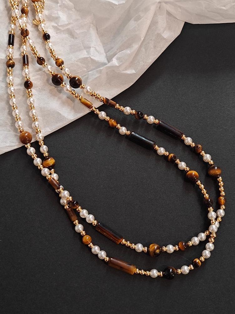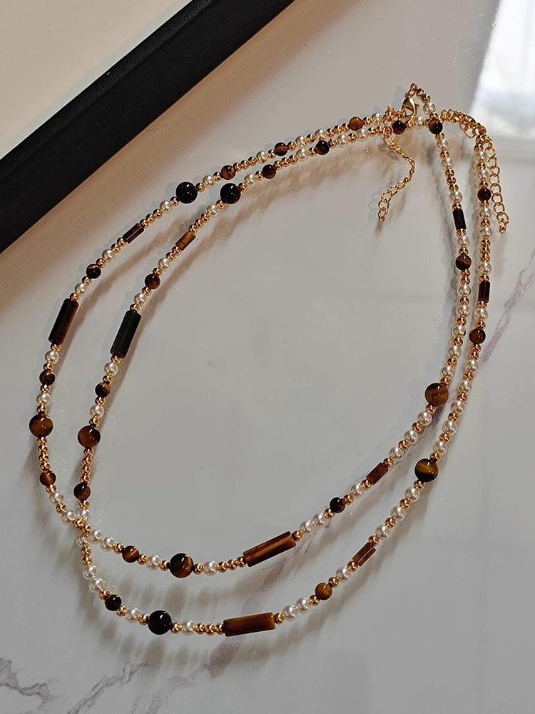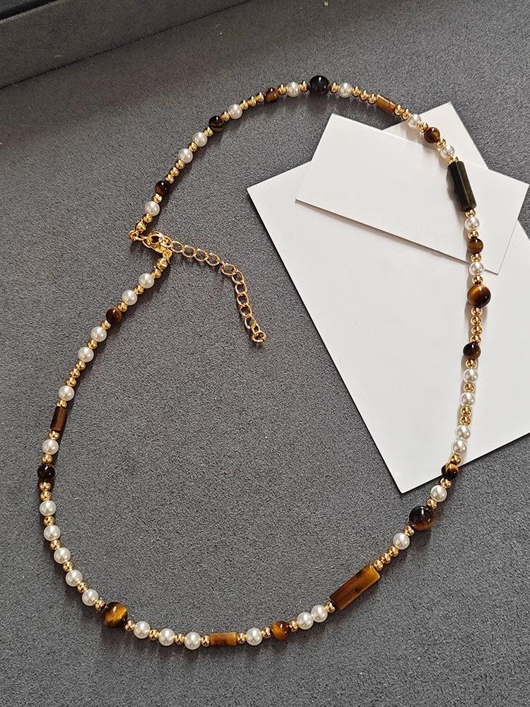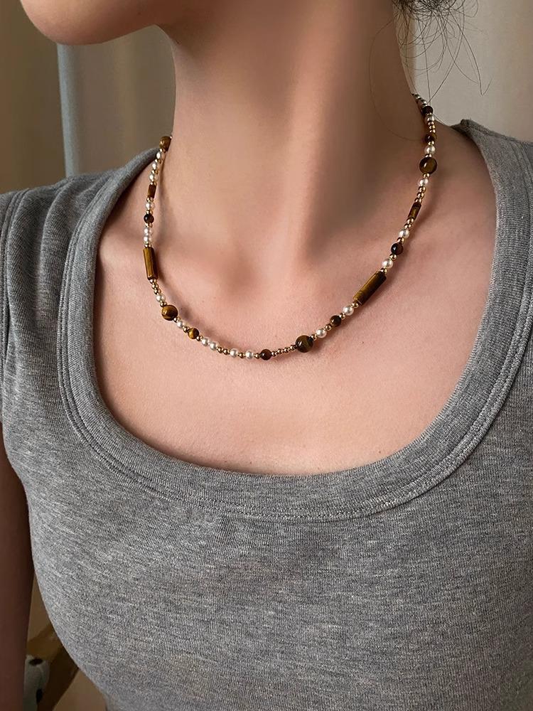 Tiger eye patchwork shijia pearl necklace 925 silver