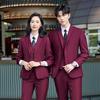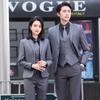 Ropa de Negocios Traje de Mujer Traje Igual para Hombre y Mujer Otoño e Invierno Manga Larga Traje de Lana a Rayas Vestido Traje de Negocios de Tres Piezas