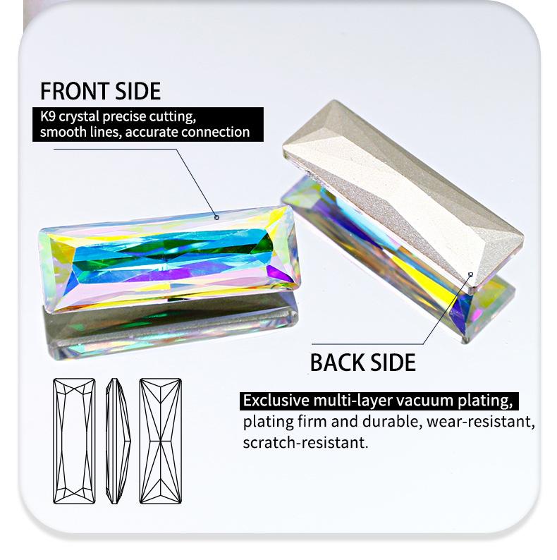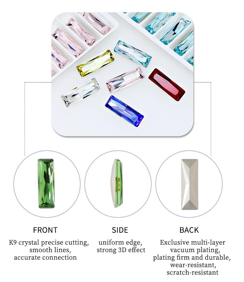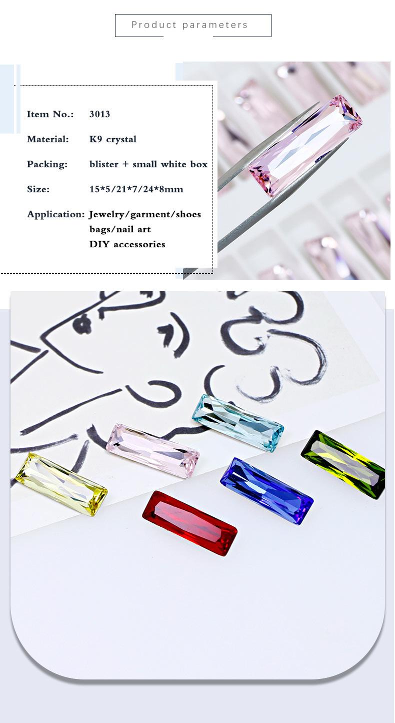 Dongzhou tira de cristal taladro de fondo puntiagudo 21*7MM rectangular taladro de vidrio super flash pedrería accesorios de joyería DIY al por mayor