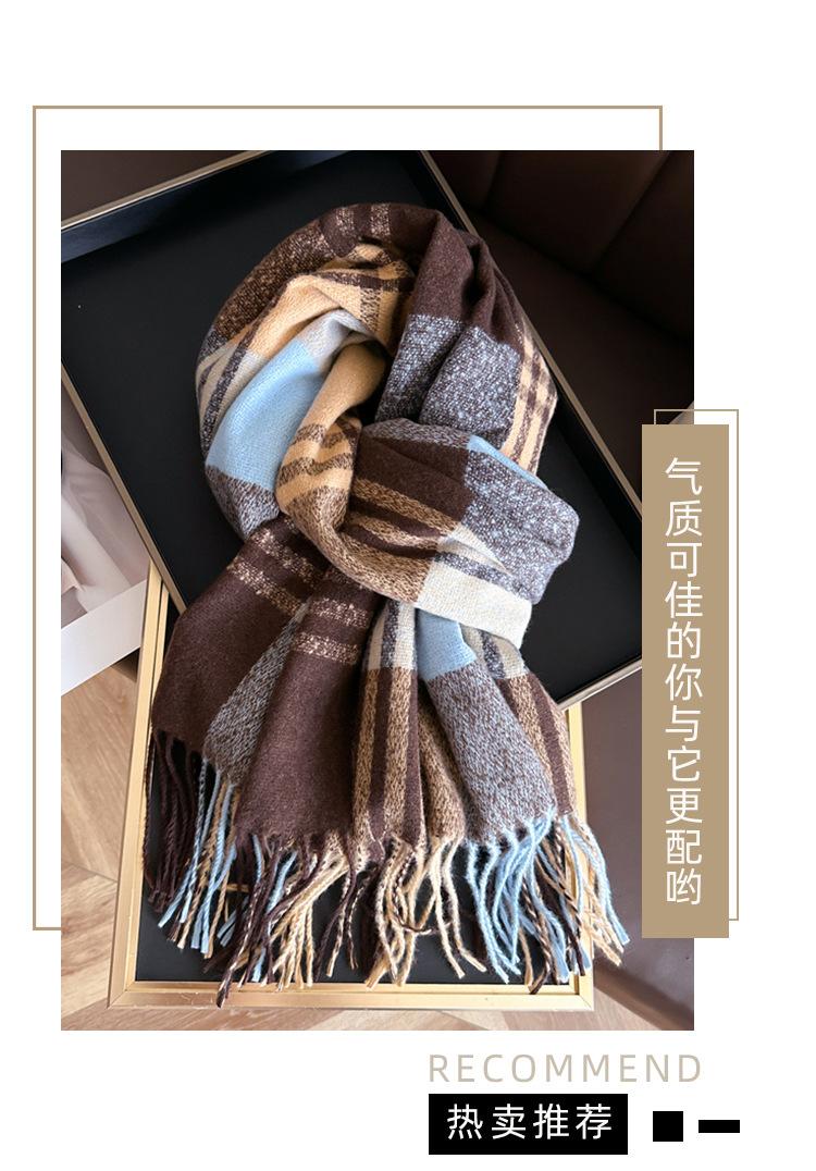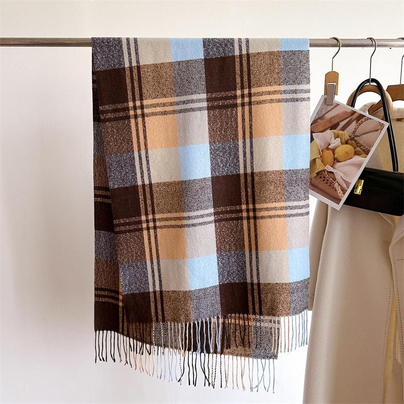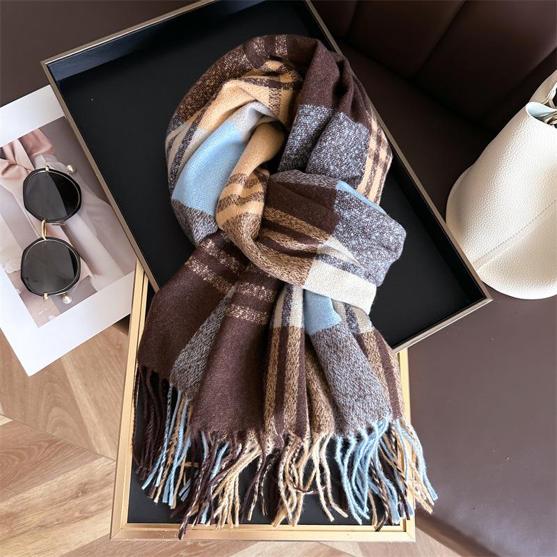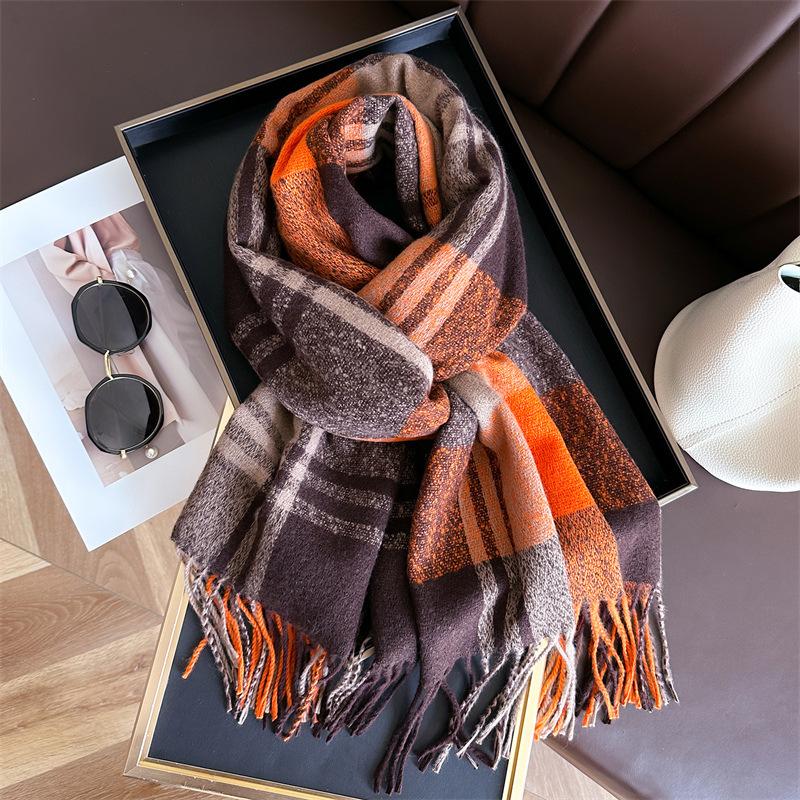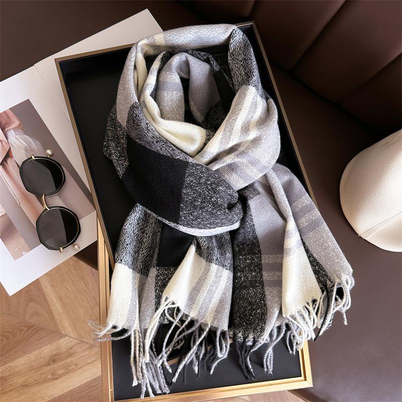 Nueva bufanda chal cálida de imitación de cachemira con cuadros arcoíris, unisex, de moda para otoño e invierno, con borlas que combinan con todo.