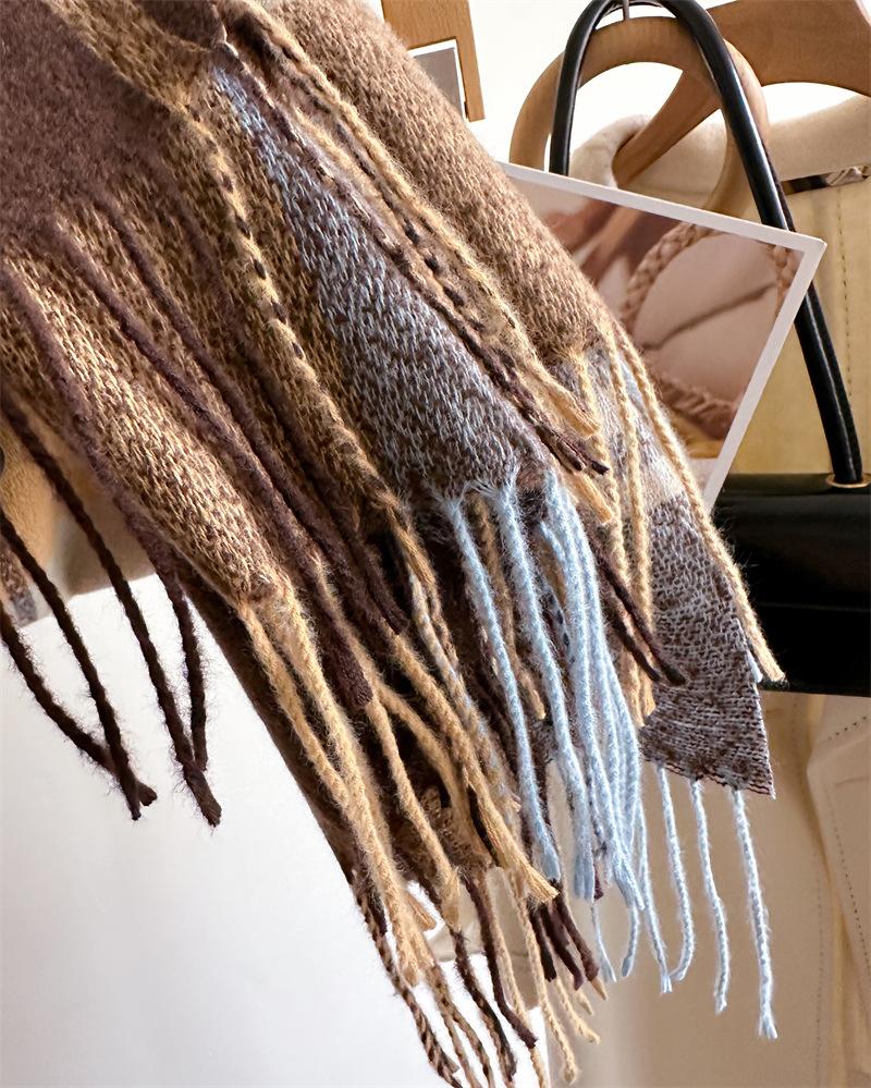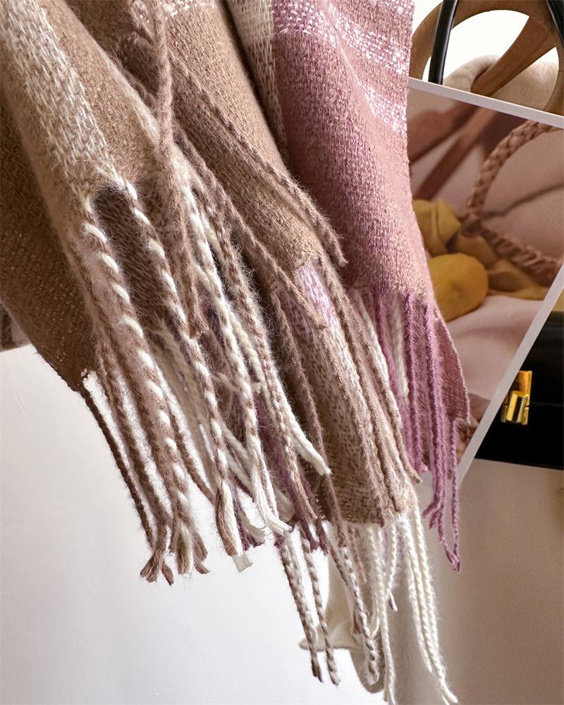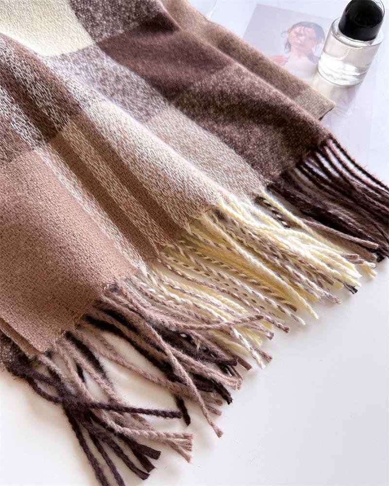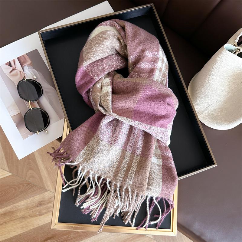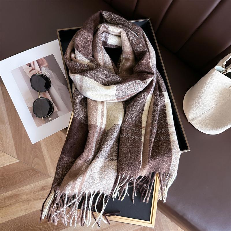 Nueva bufanda chal cálida de imitación de cachemira con cuadros arcoíris, unisex, de moda para otoño e invierno, con borlas que combinan con todo.