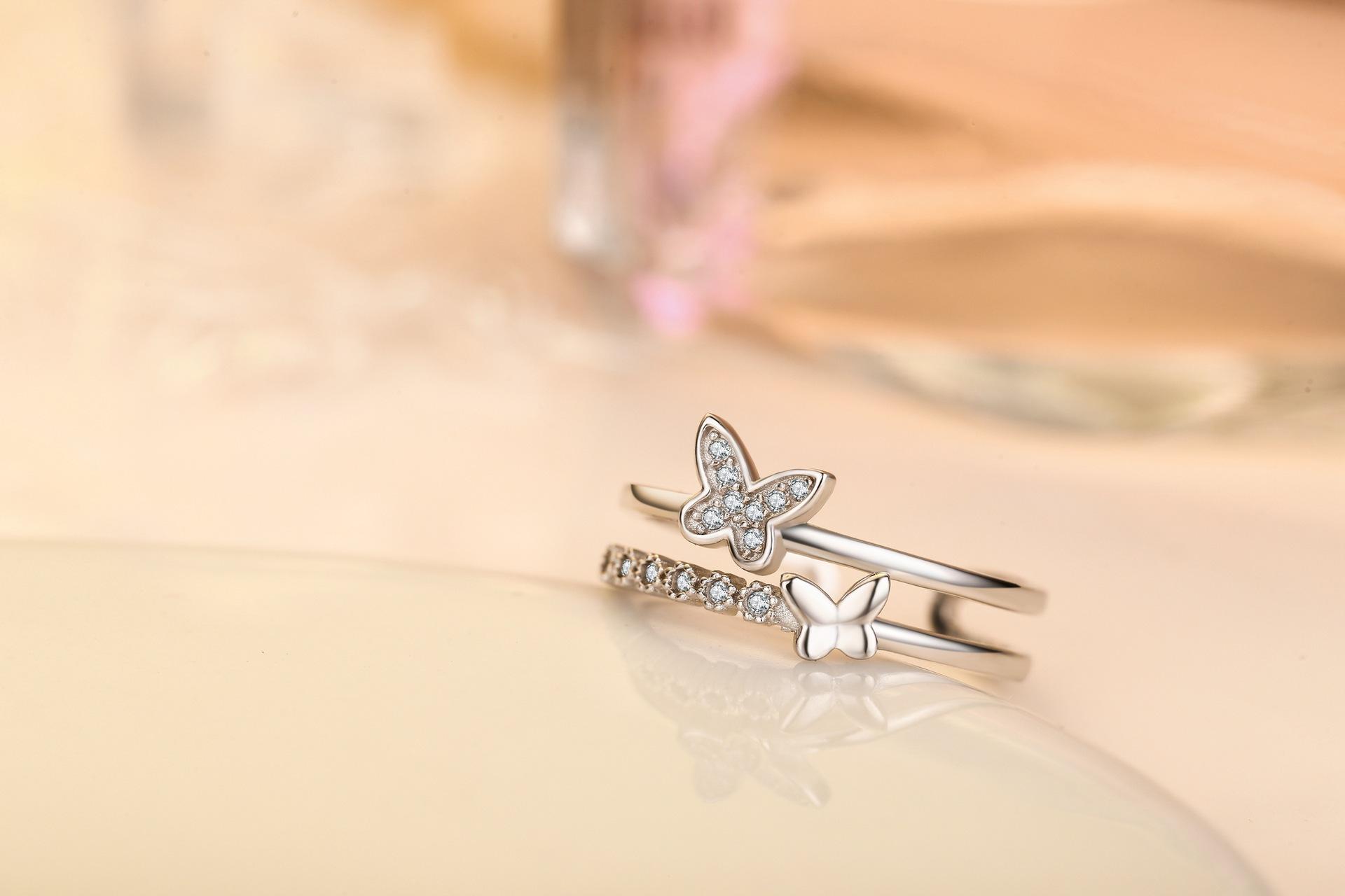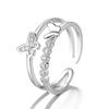 Anillo de mariposa abierto simple de plata para mujer, moda japonesa y coreana, anillo de cola de dedo índice simple y moderno, joyería de plata, venta directa de fábrica
