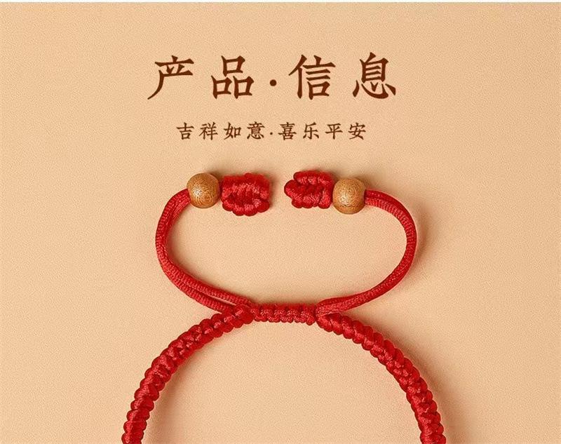 Pulsera de mano roja para bebé tejida a mano, cuerda roja con piedra de melocotón, caoba para hombres y mujeres, pulsera infantil, paz, cinabrio, cuerda de mano