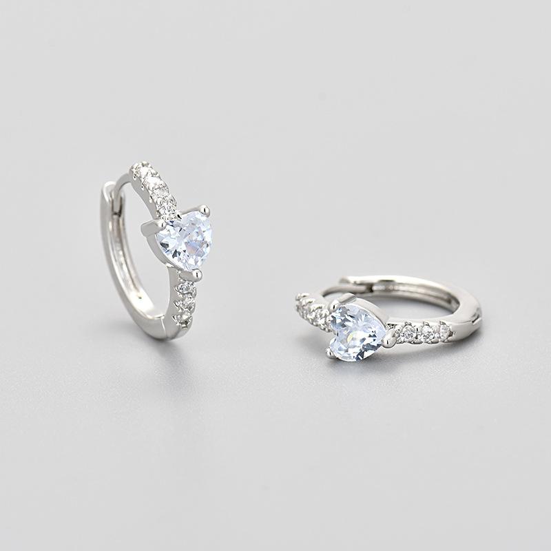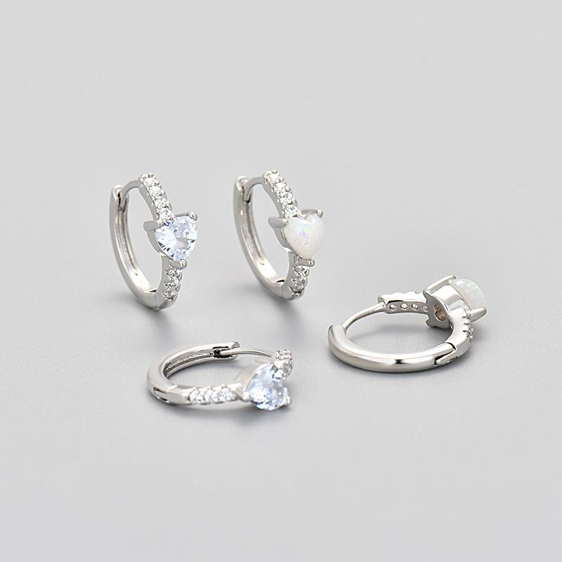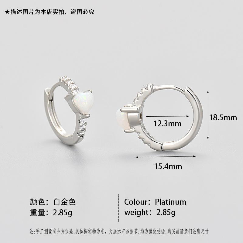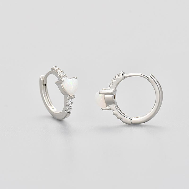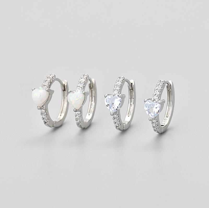Love ear buckle/zircon/white gold, Love earring/Opal stone/white gold