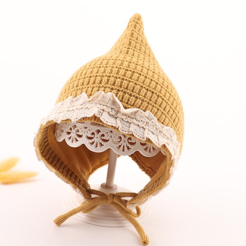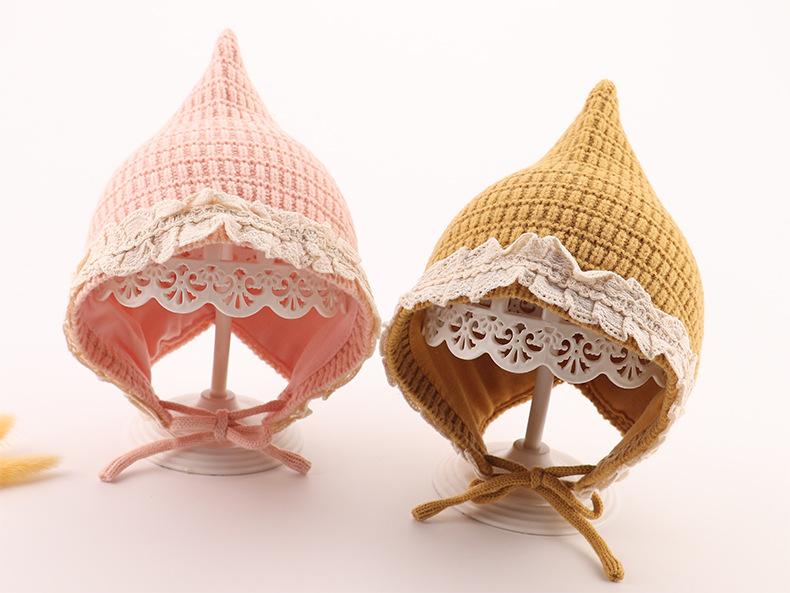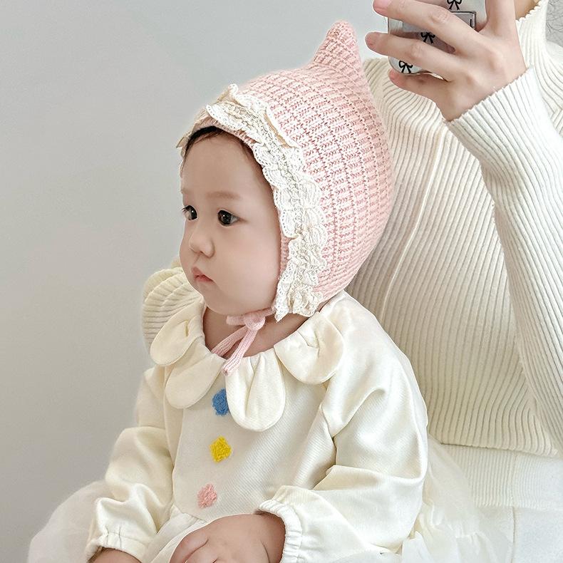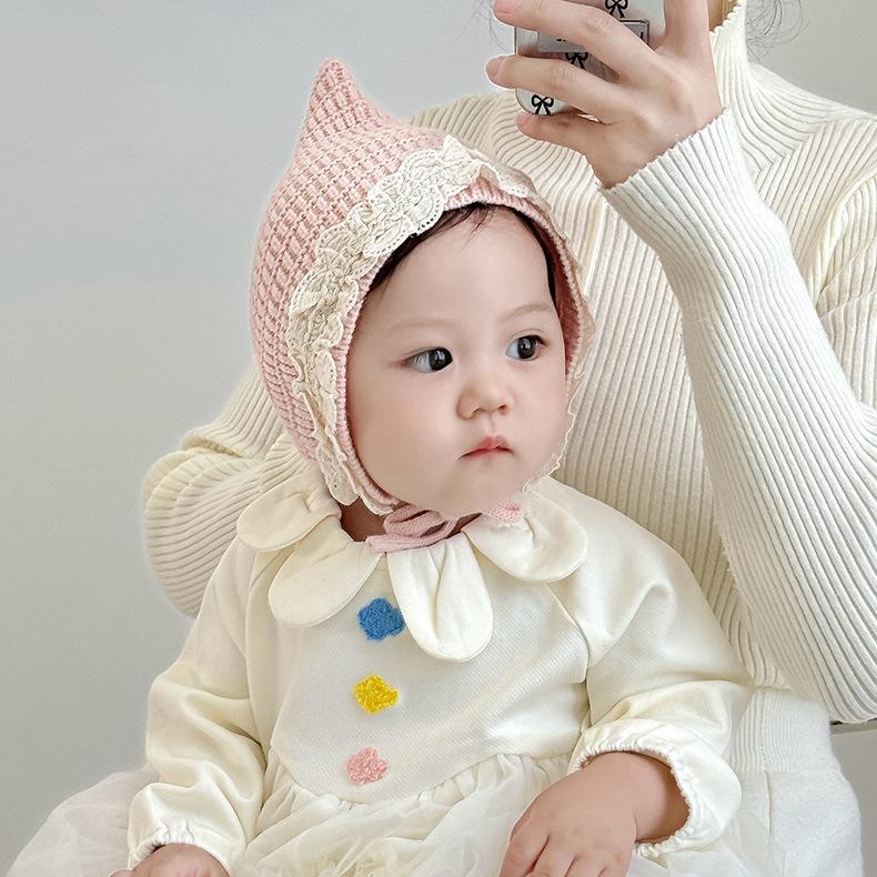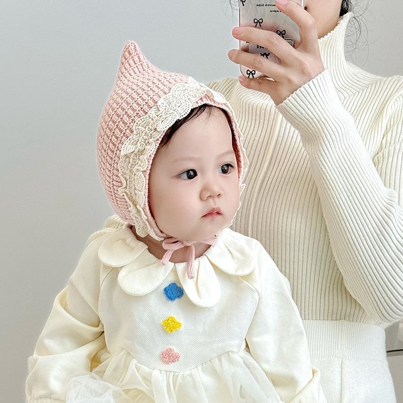 Gorro de bebé de otoño e invierno, estilo coreano, estilo extranjero, gorro de lana con protección para las orejas para niña princesa, gorro cálido de punto para niña.