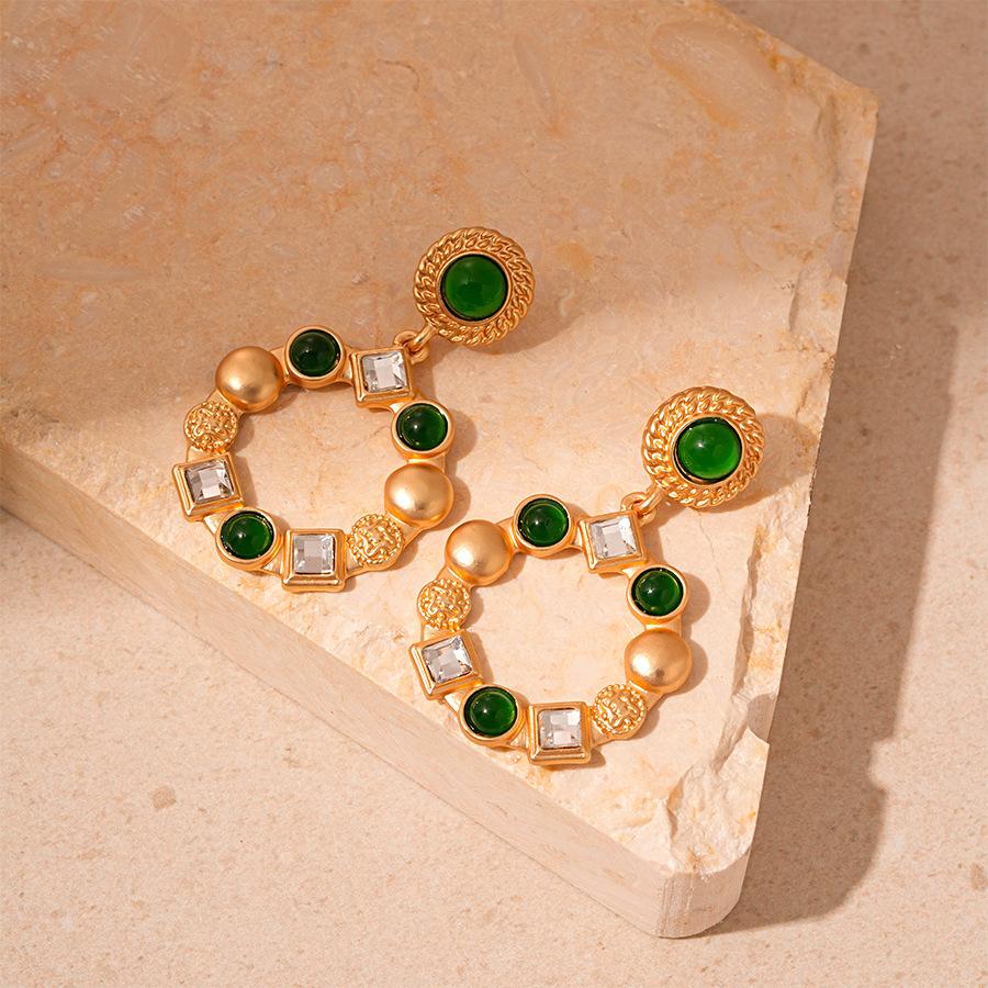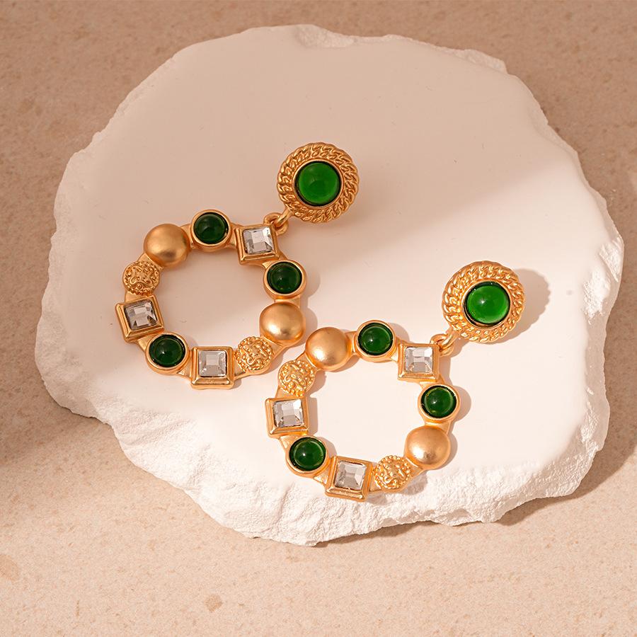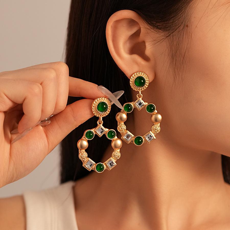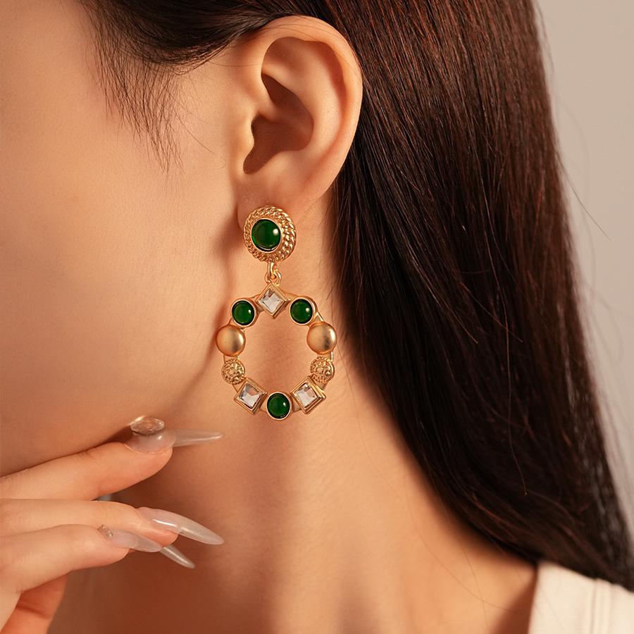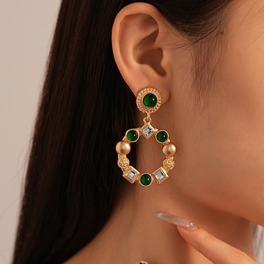 Pendientes de plata con diseño geométrico cuadrado de diamantes redondos de resina vintage, elegantes y de alta gama, de estilo nicho francés.