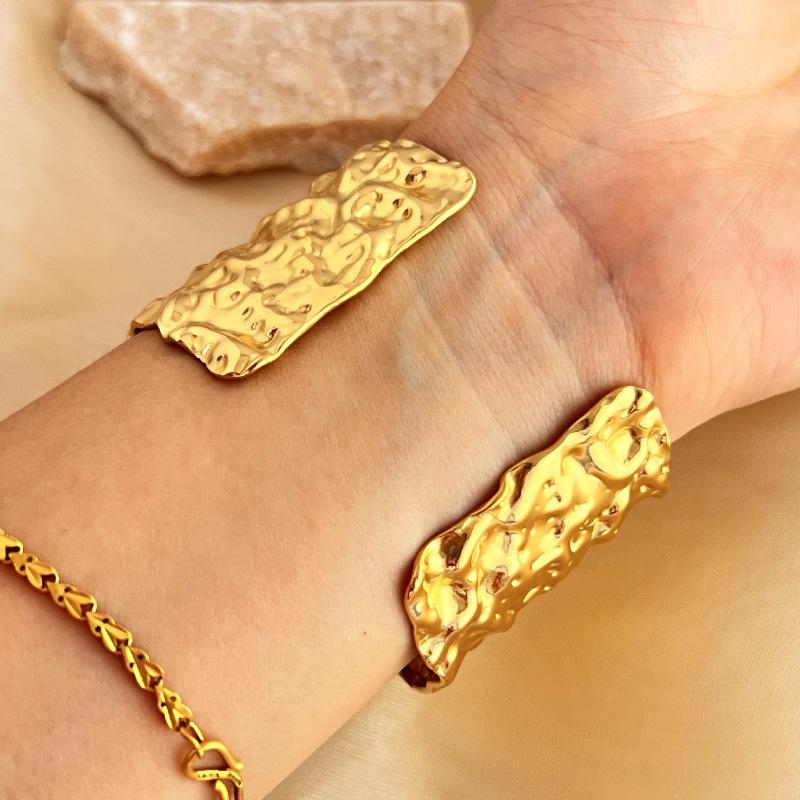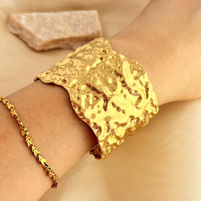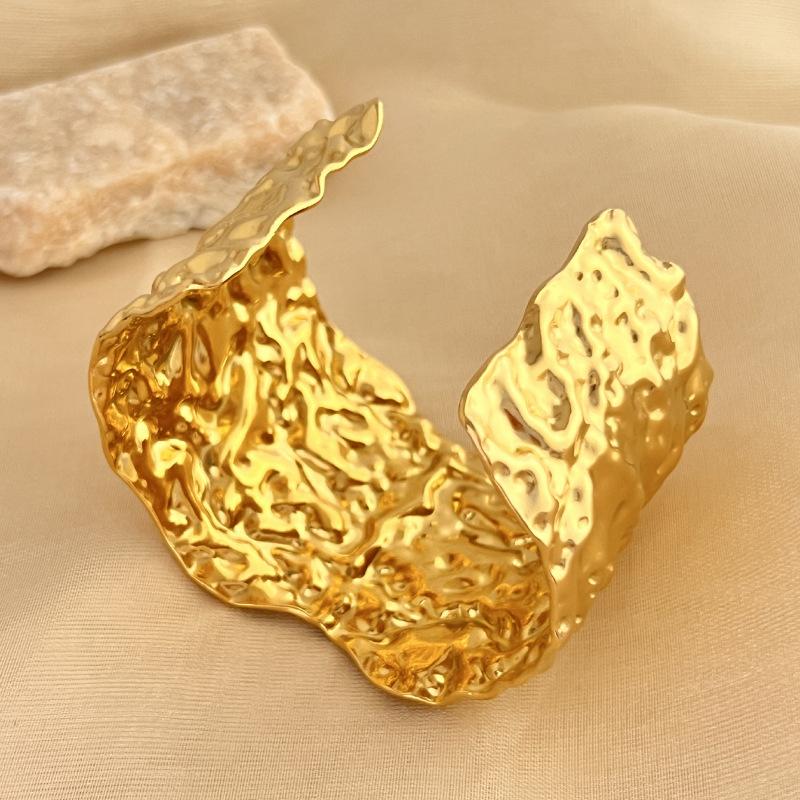 Compra Pulsera geométrica plisada de metal de alto sentido transfronterizo de Europa y Estados Unidos nueva pulsera de moda de lujo ligero nicho personalidad anillo de brazo mujer al por mayor en Joom.pro