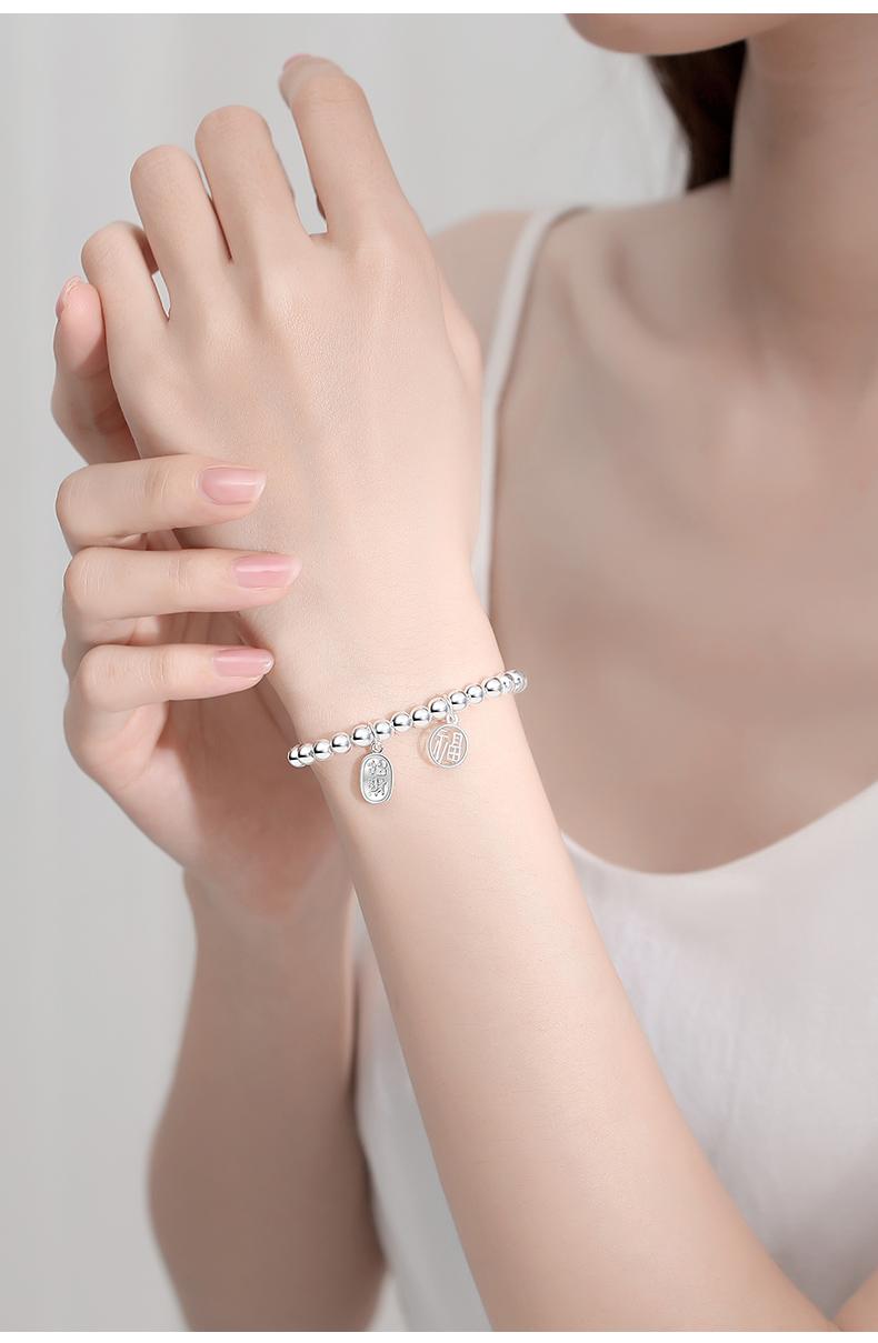 2023 Nueva Pulsera de Cuentas Plateada para Mujer Pulsera de Cuentas de Pie Pulsera de Cuentas Plateadas Pulsera de Transporte para Novia