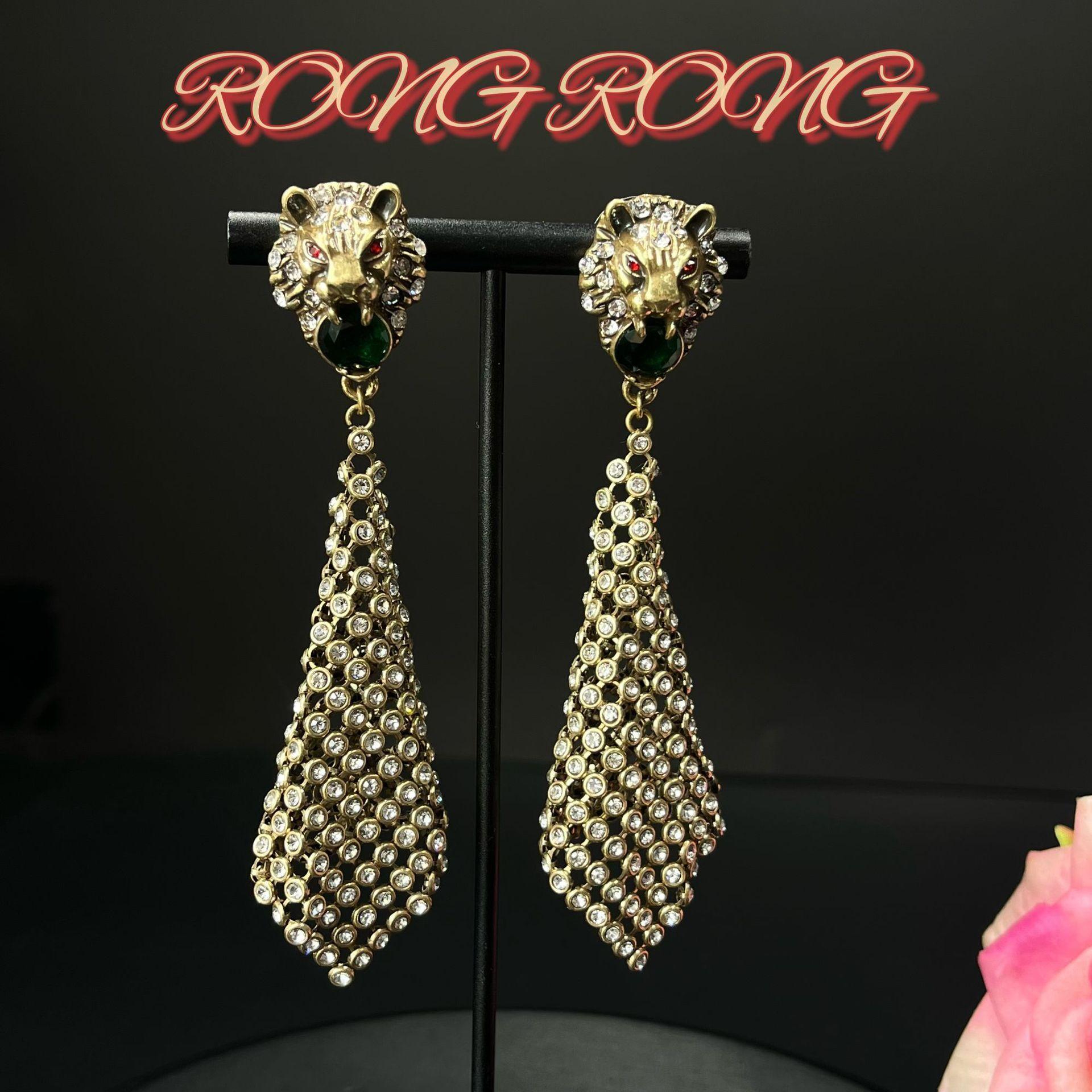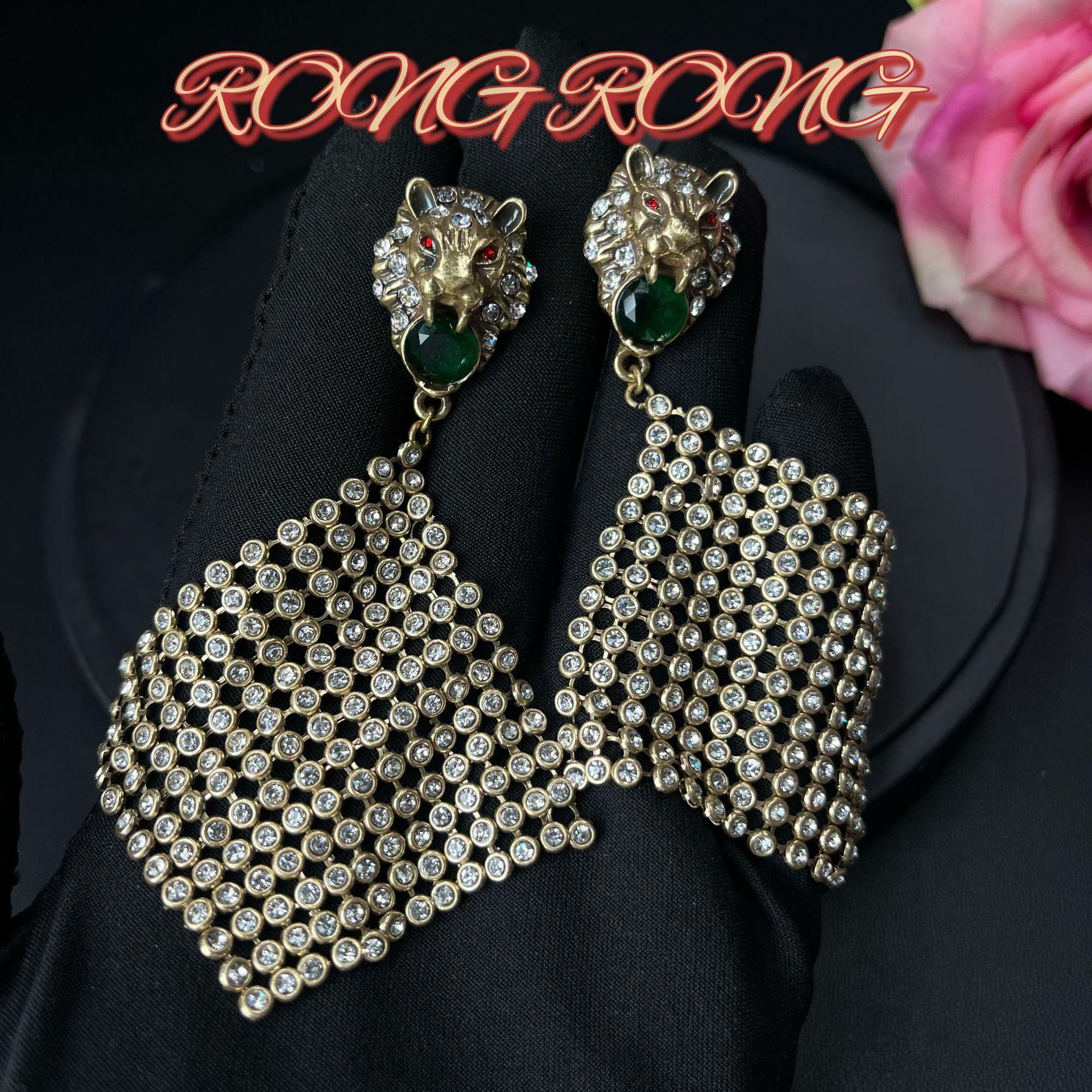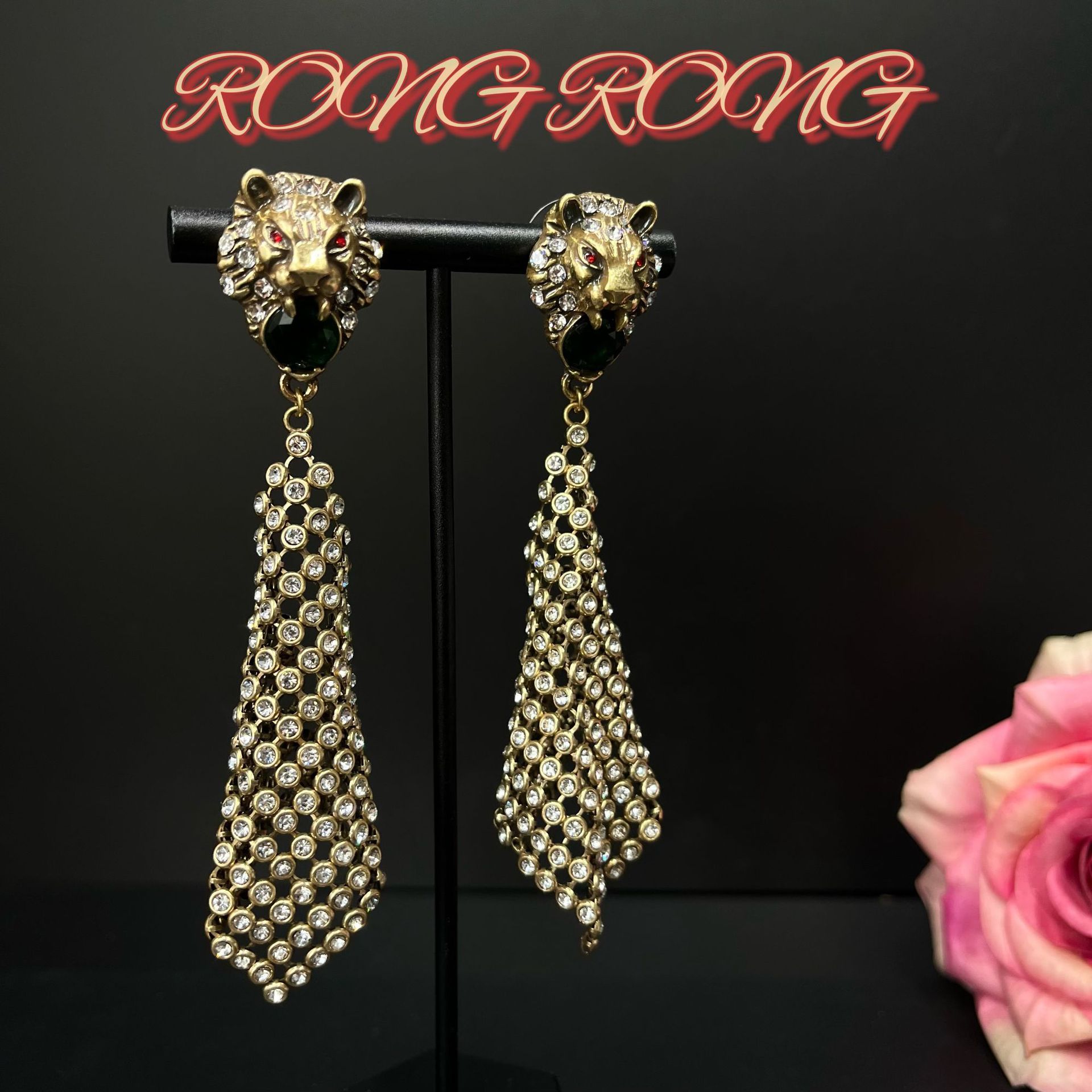 Pendientes de rejilla hueca con diamantes de león exagerados, de estilo vintage europeo y americano de la Edad Media, chapados en oro, personalizados, de estilo industrial pesado.