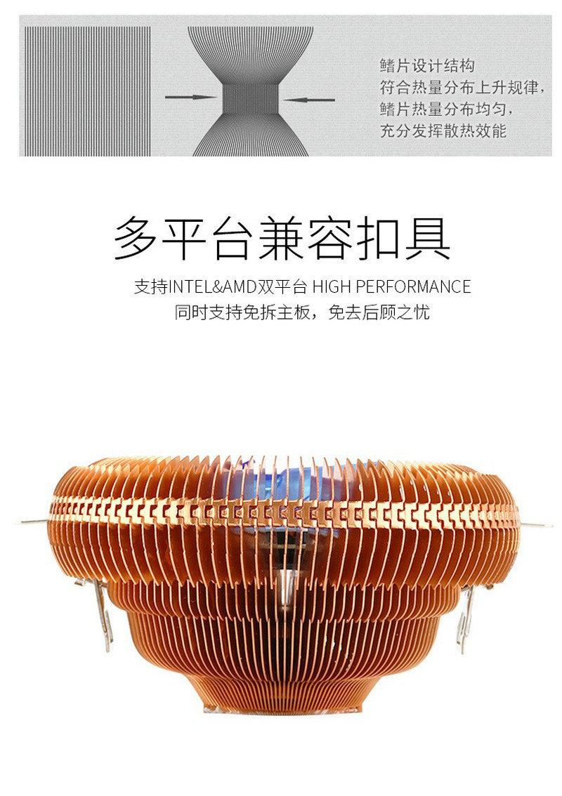 Radiador de CPU con luz azul LED bañado en cobre frío 300, ventilador de botón AMD multiplataforma 775/1155, 115X