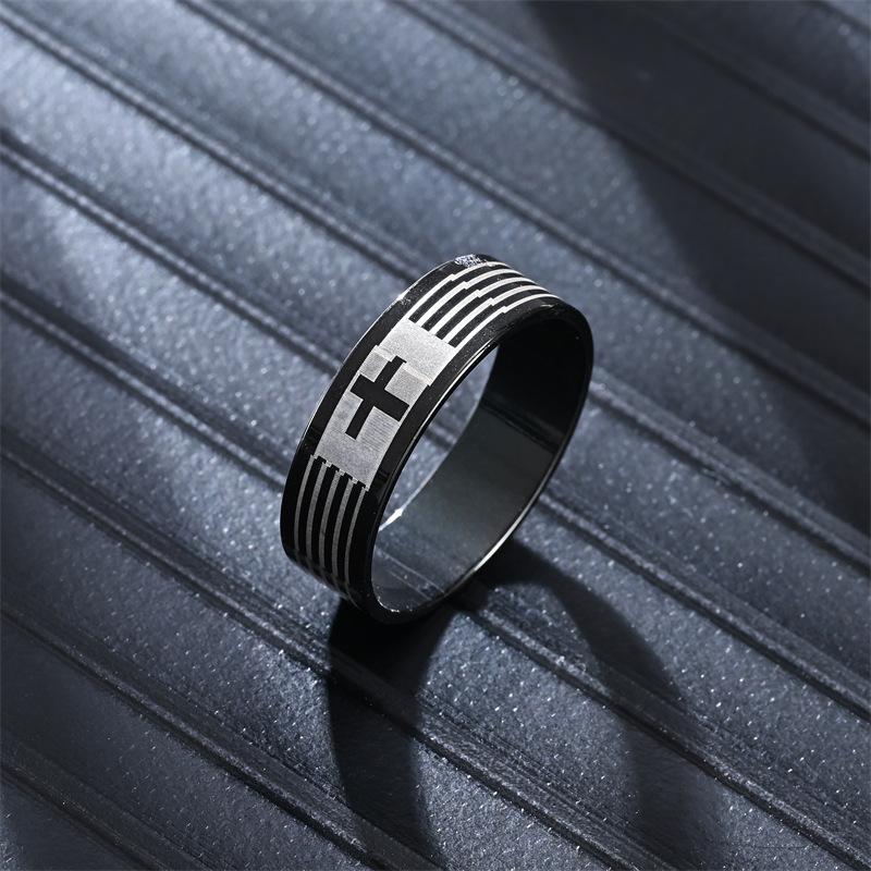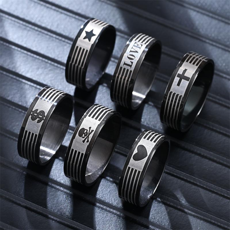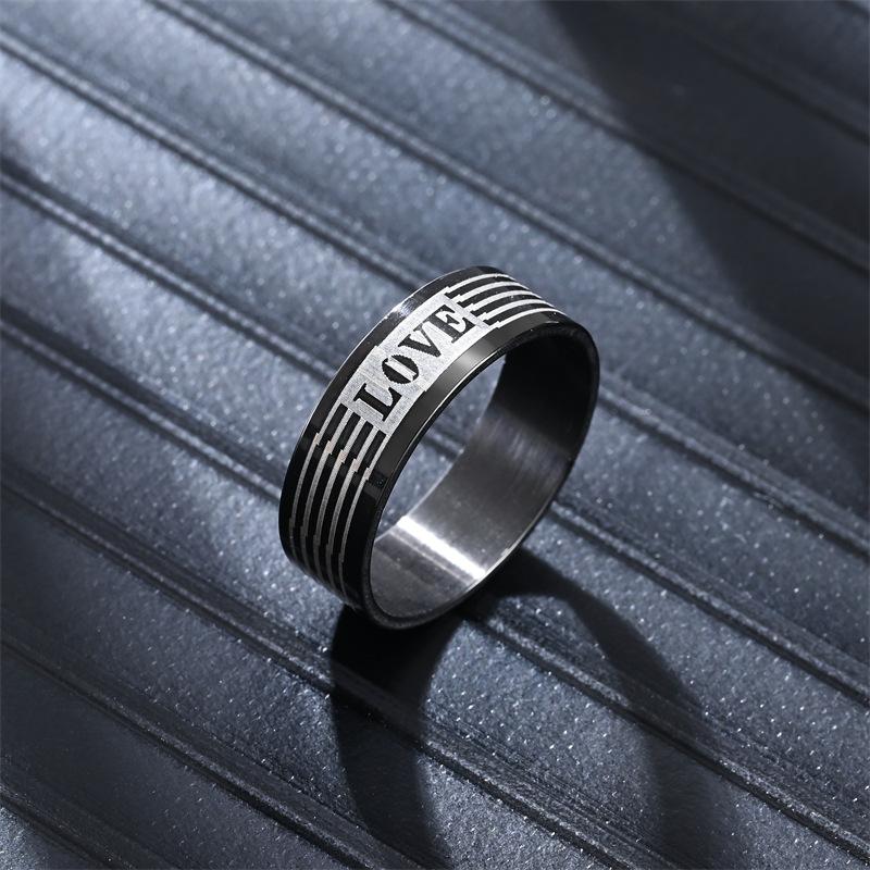 Anillo negro de venta caliente transfronterizo para hombres y mujeres, joyería de acero inoxidable con letras, fábrica de joyería de moda nueva, venta al por mayor