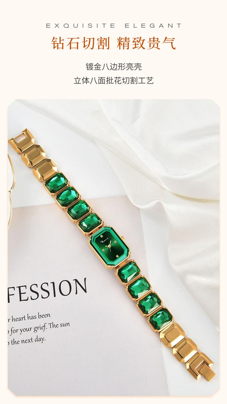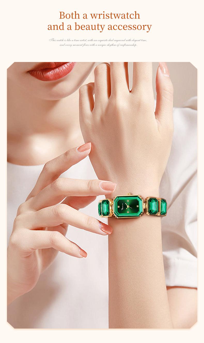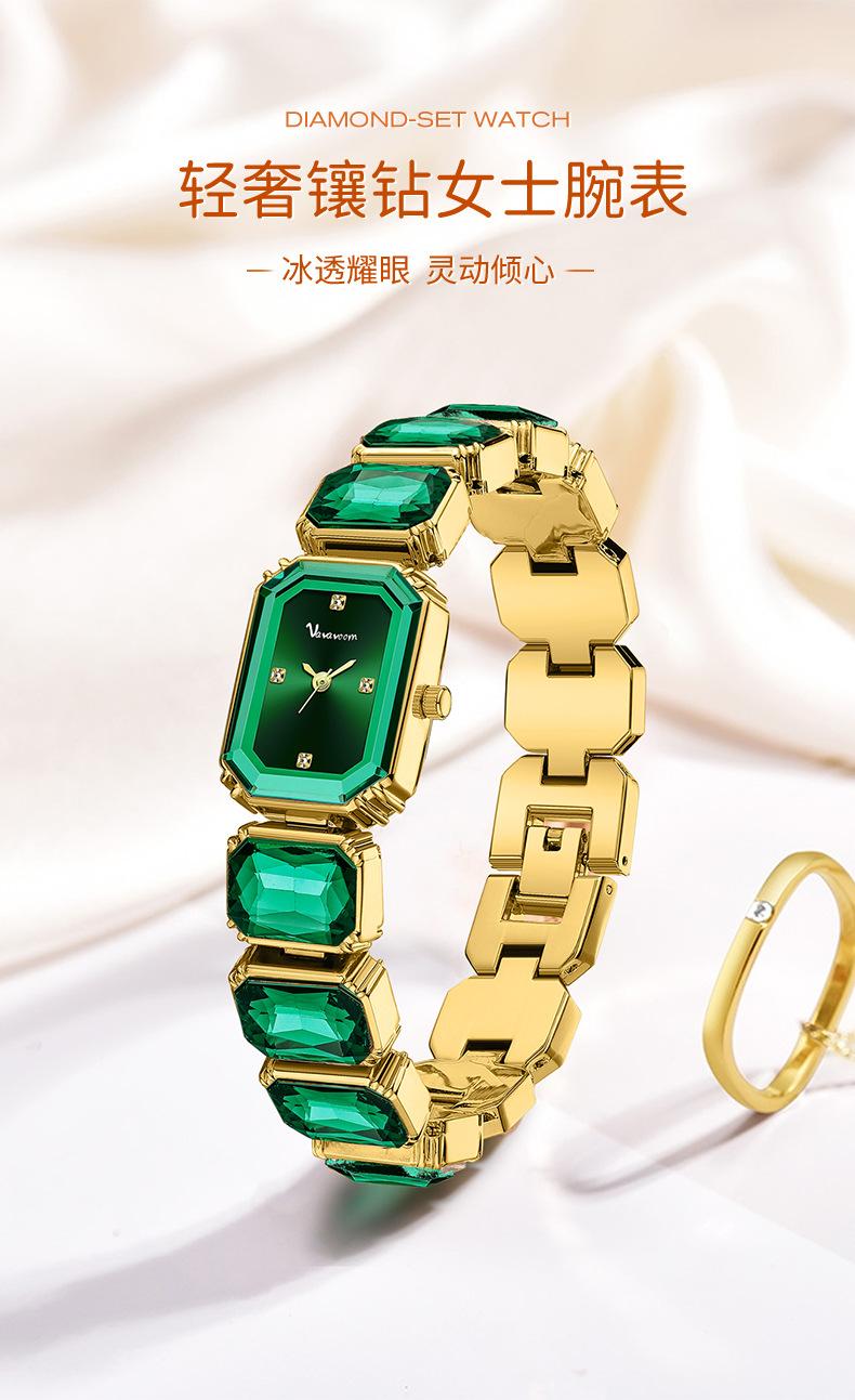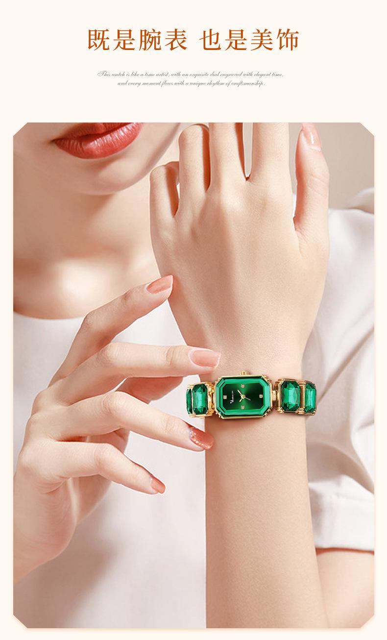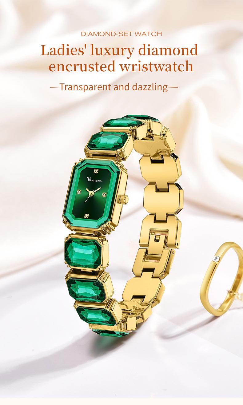Reloj de cuarzo con esfera cuadrada verde pequeña con incrustaciones de diamantes para mujer, reloj de moda transfronterizo, reloj personalizado con temperamento para mujer.