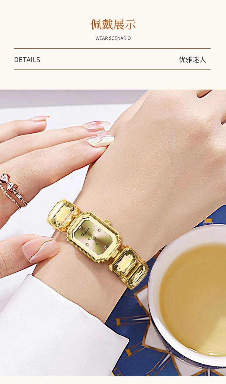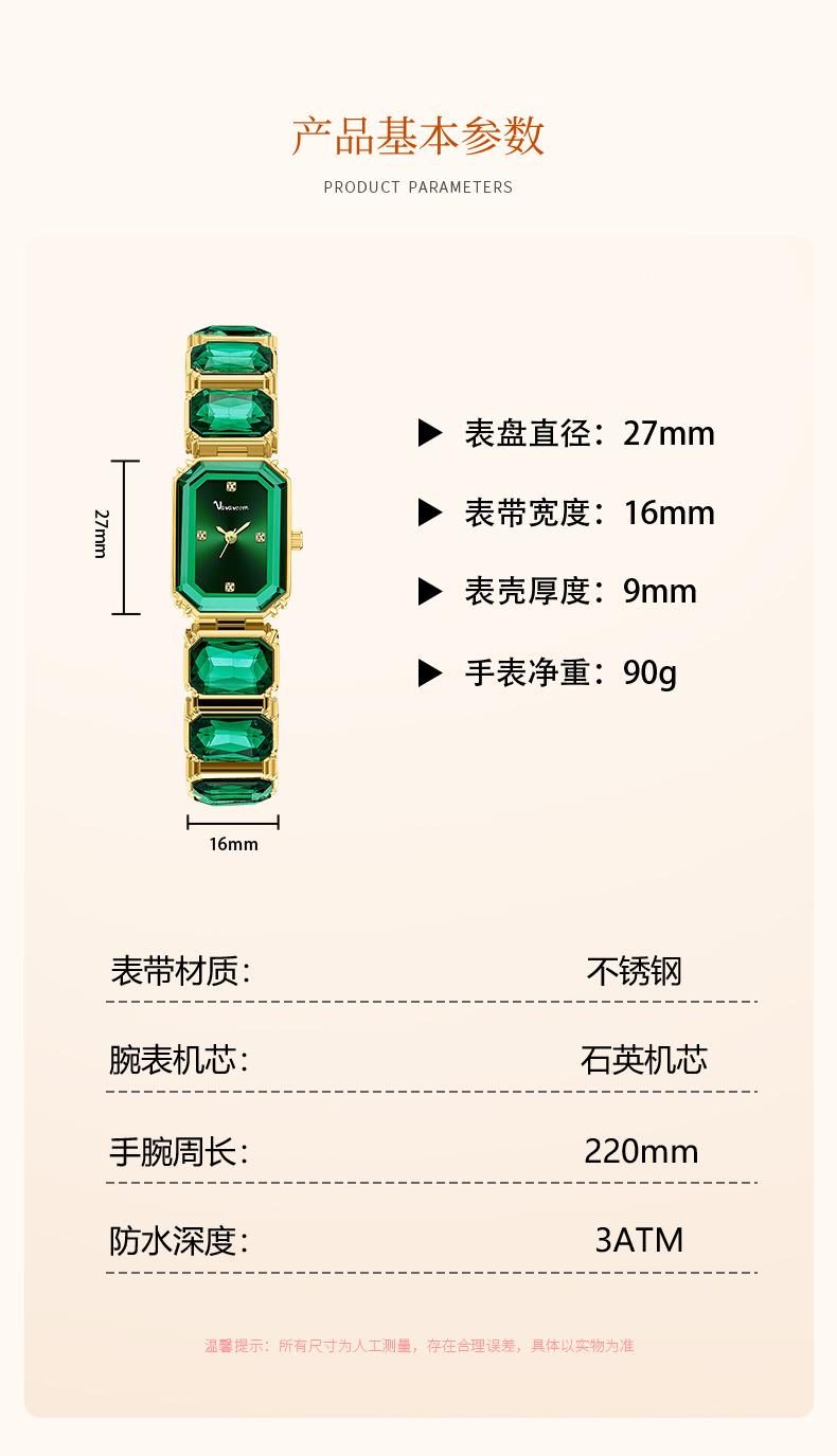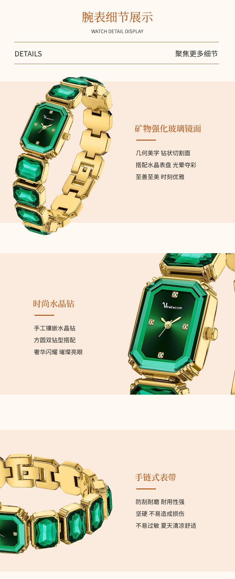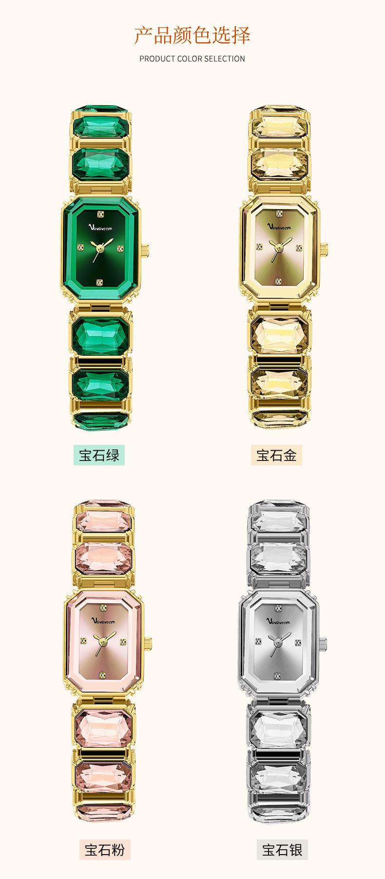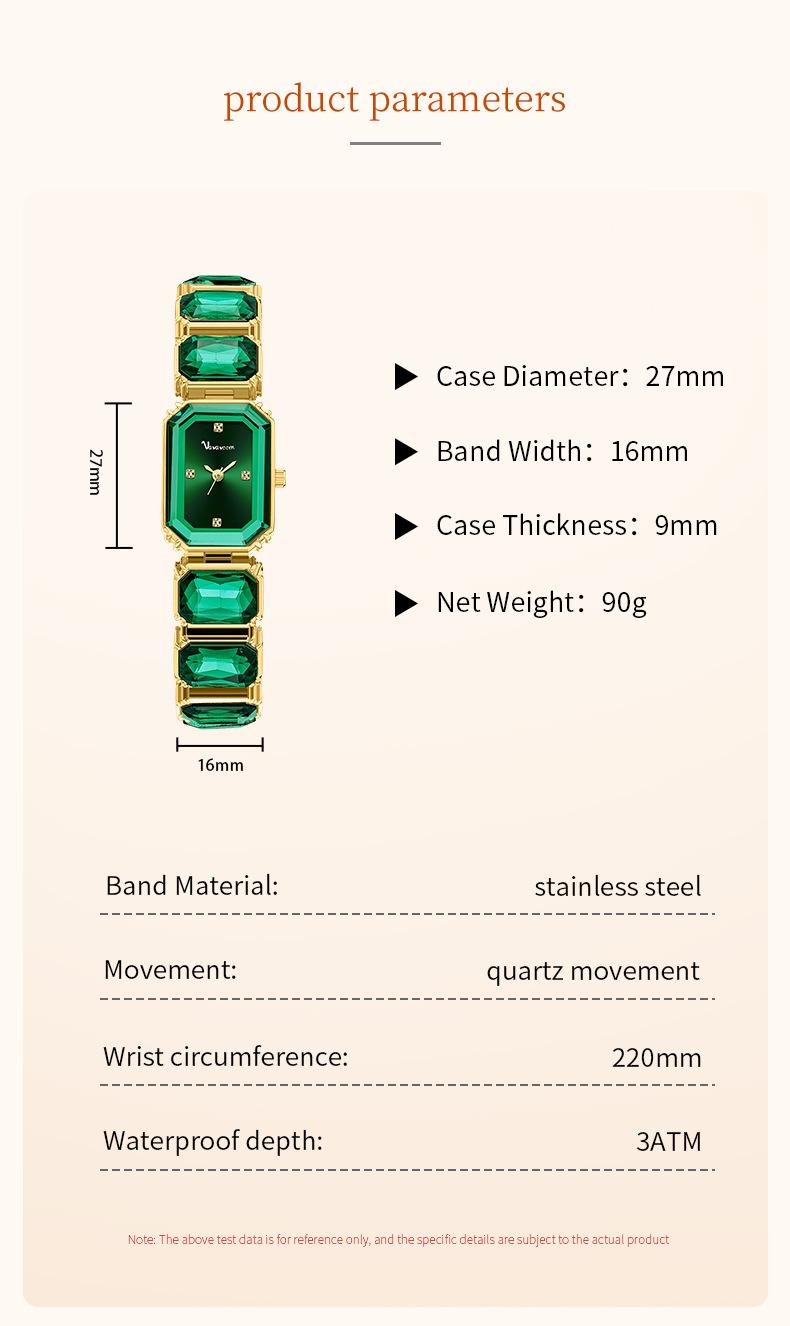 Reloj de cuarzo con esfera cuadrada verde pequeña con incrustaciones de diamantes para mujer, reloj de moda transfronterizo, reloj personalizado con temperamento para mujer.