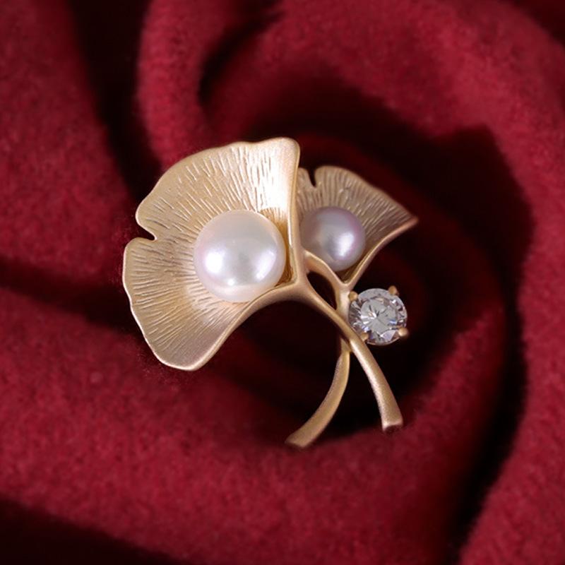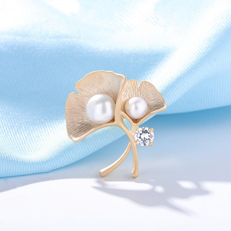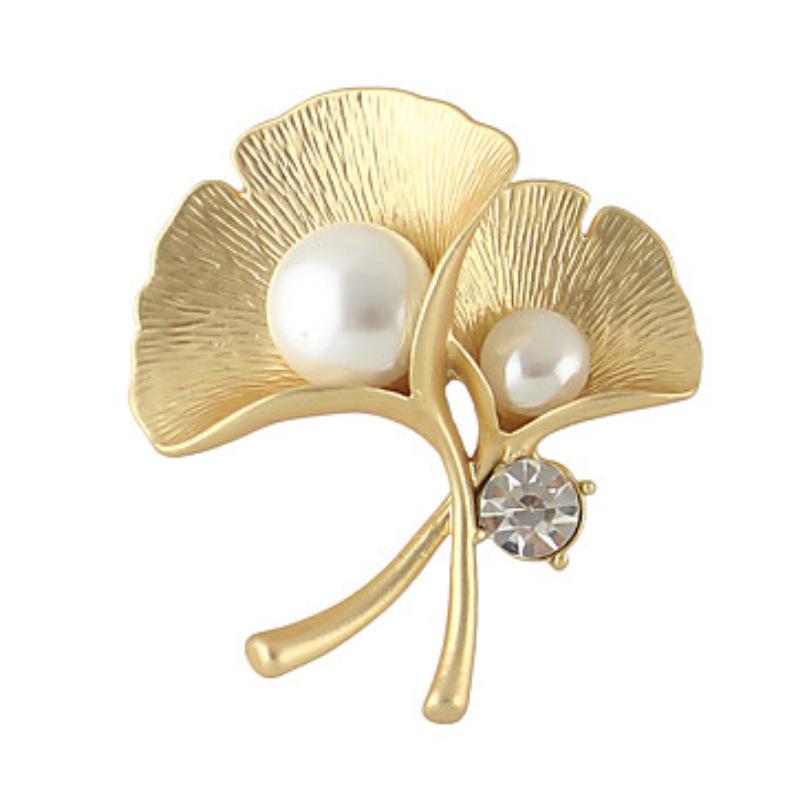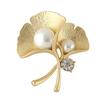Broche de hoja de ginkgo con perlas y diamantes de imitación de temperamento coreano, ramillete para traje de mujer, alfiler de moda simple, accesorios para abrigos, venta al por mayor