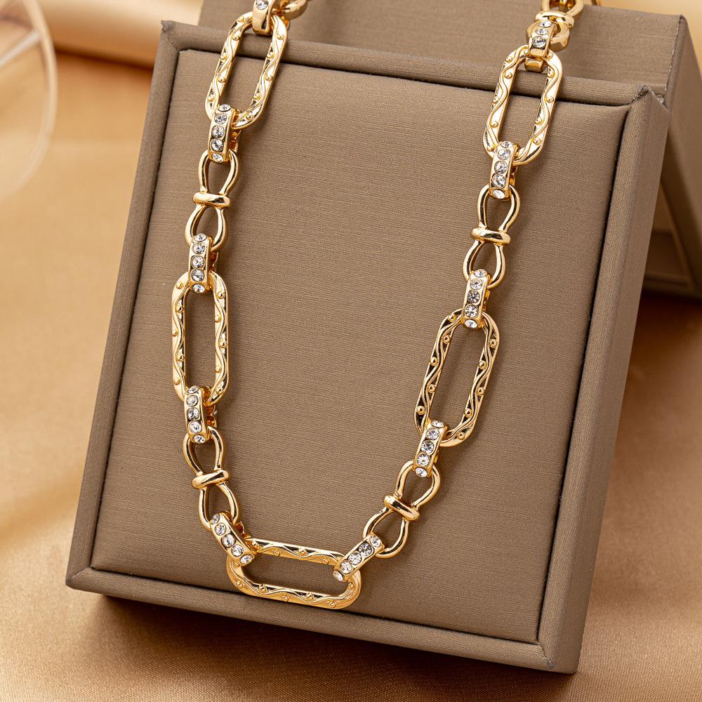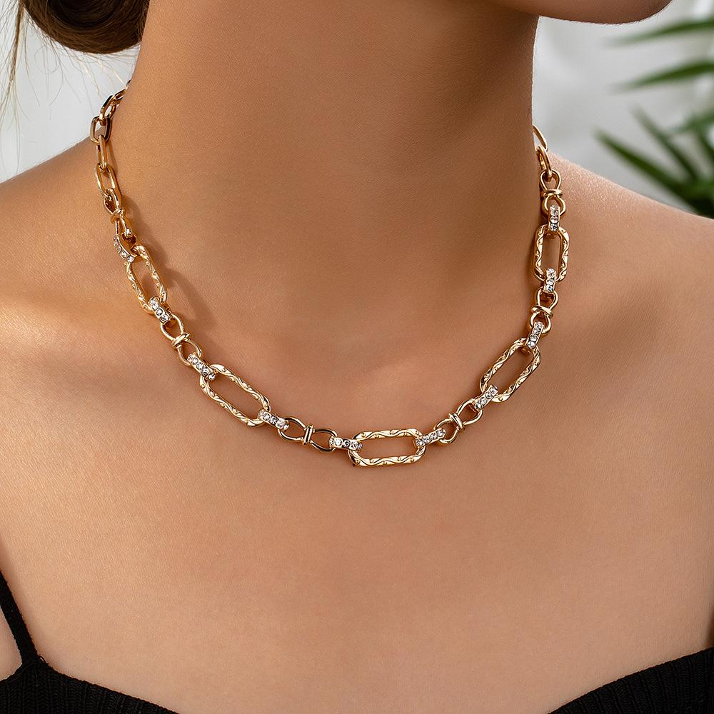 Collar de Cadena Metálica Cubana Europea y Americana Transfronteriza Nicho de Alta Gama Cadena Clavicular Hip-hop Retro Personalidad Collar Collar para Mujer