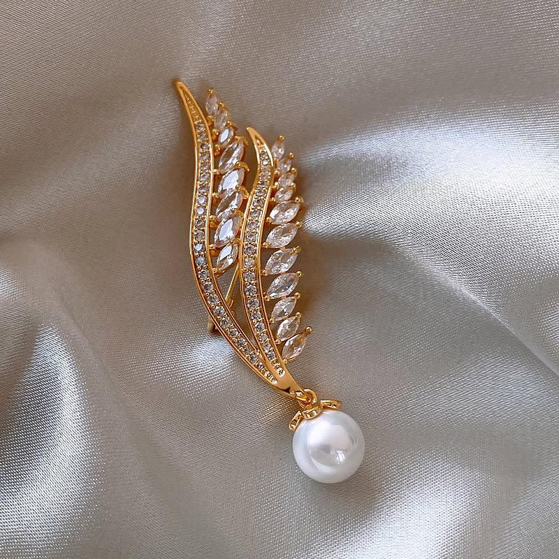 Broche de perlas de trigo para mujer, accesorio de traje ligero, antidesgaste, de alta gama, de lujo, exquisito broche de ramillete de alta gama.