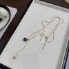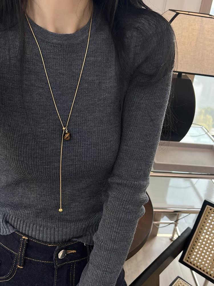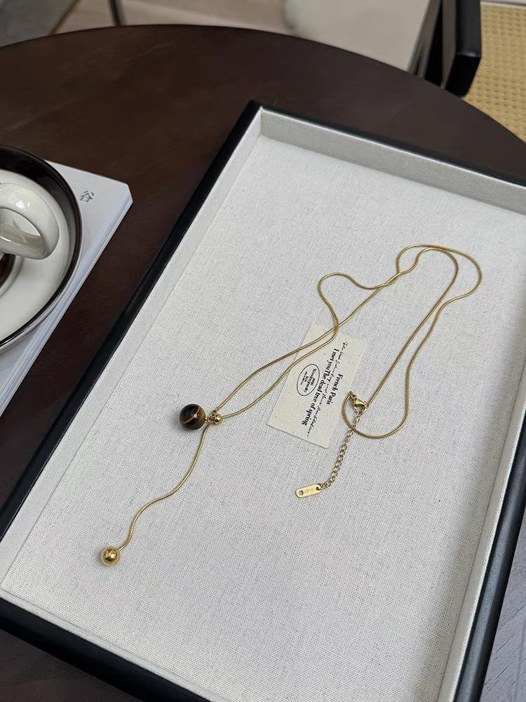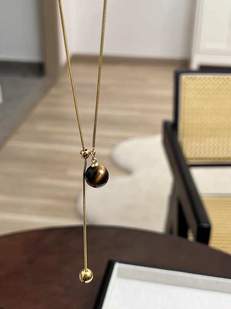 Collar Maillard redondo de piedra de ojo de tigre con hueso de serpiente dorado, cadena de lana extraíble larga, collar vintage de alta gama para otoño e invierno.