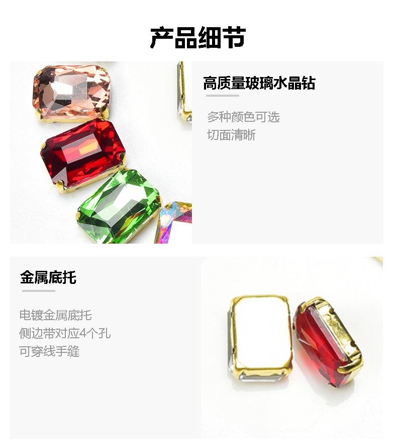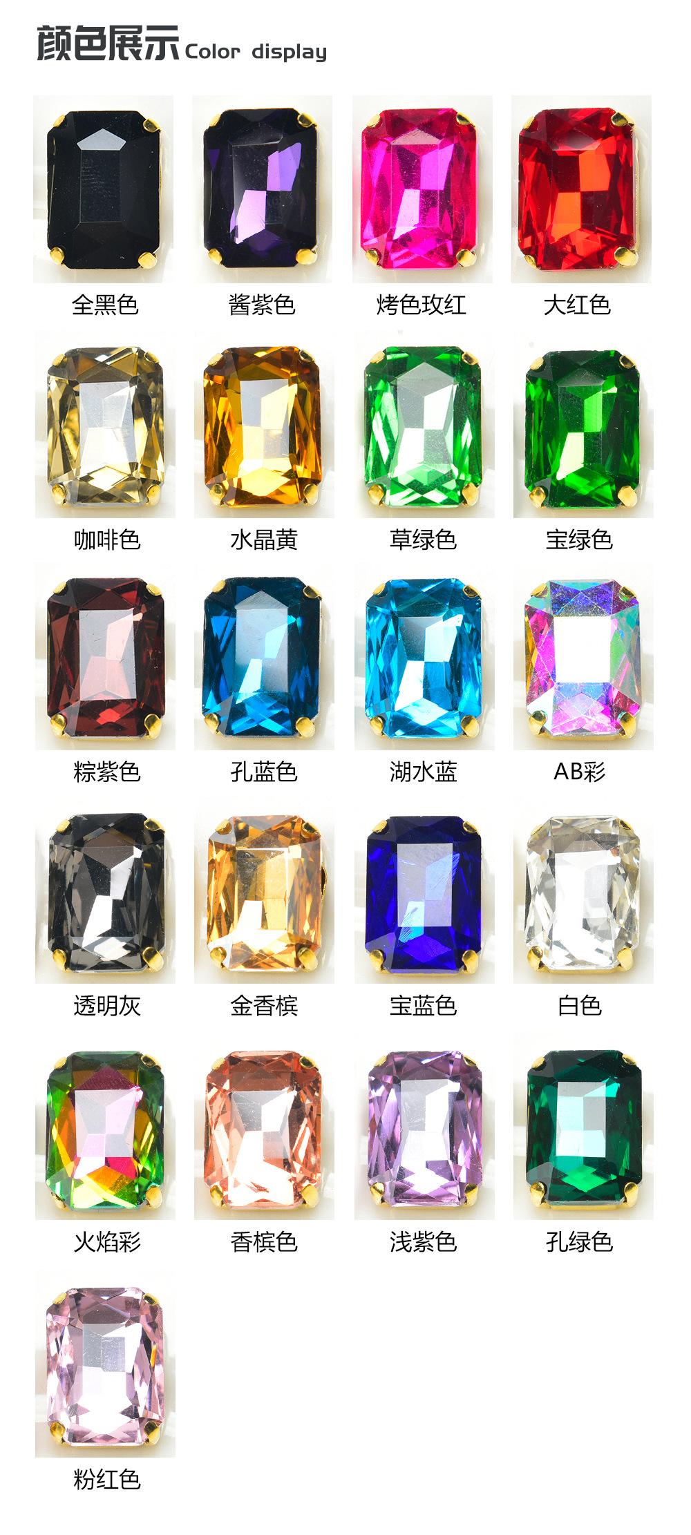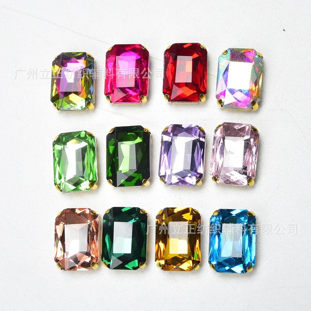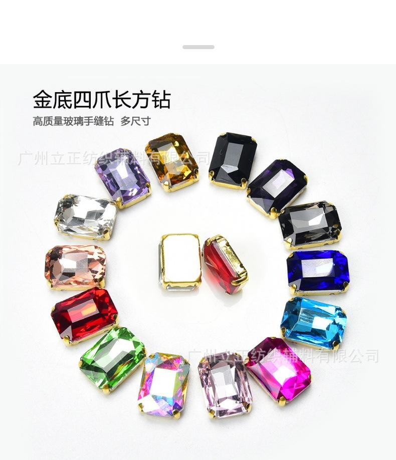 【Nombre del Producto】:Exquisitos Cristales de Estrás Rectangulares de Cuatro Garras con Fondo Dorado Colorido Cosidos a Mano