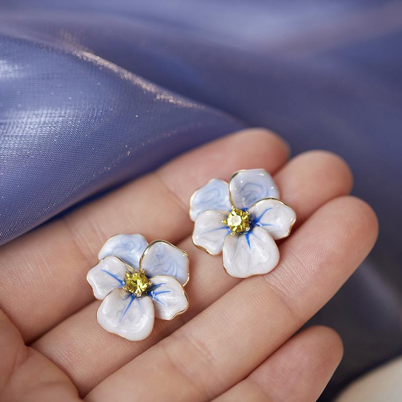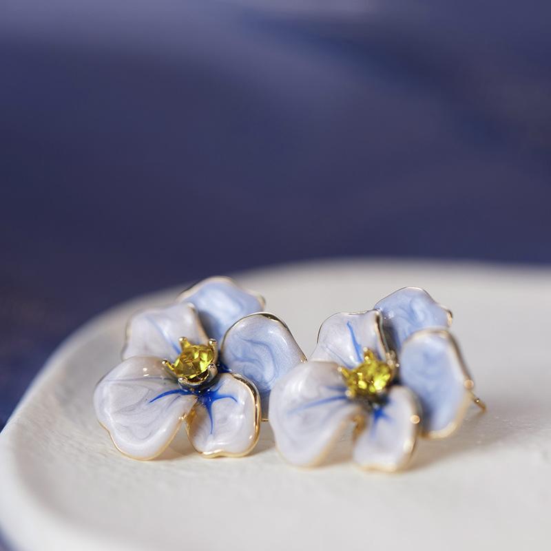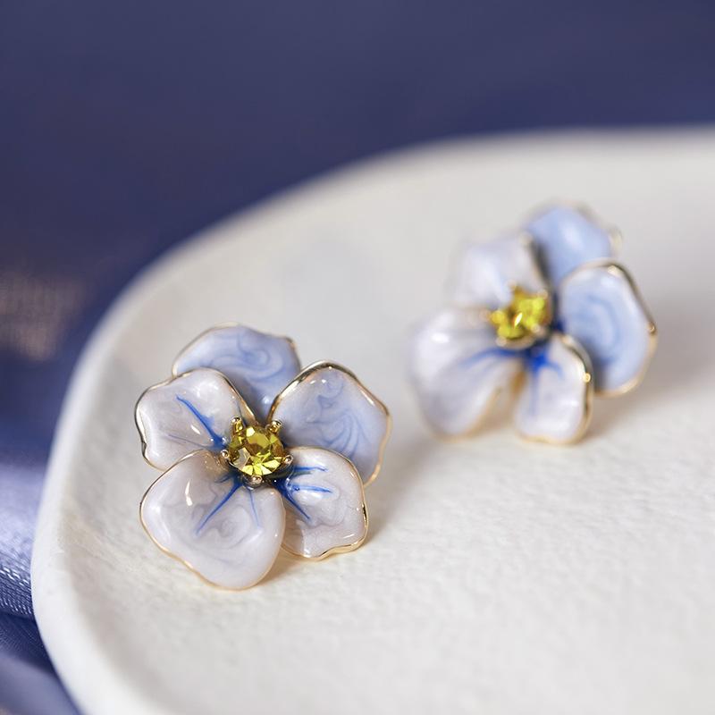 Pendientes de la serie Secret Garden con aguja de plata s925 para mujer, 2023, nuevos y exquisitos y elegantes pendientes de flor de pensamiento.