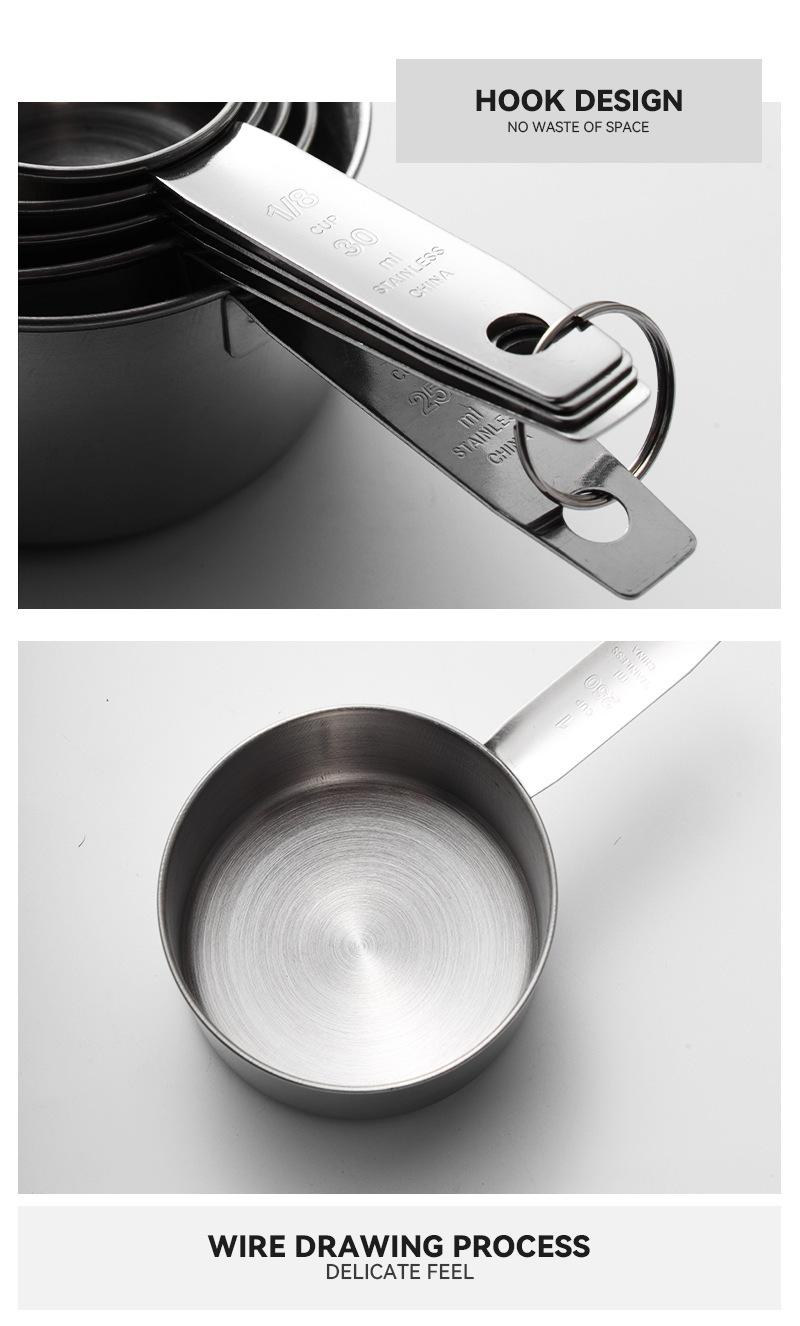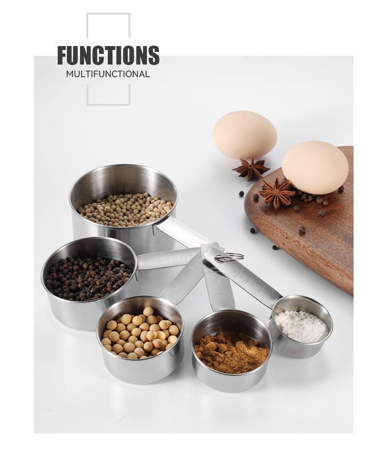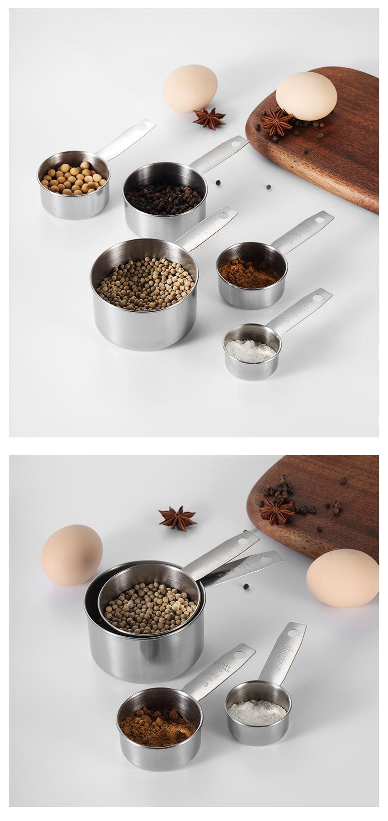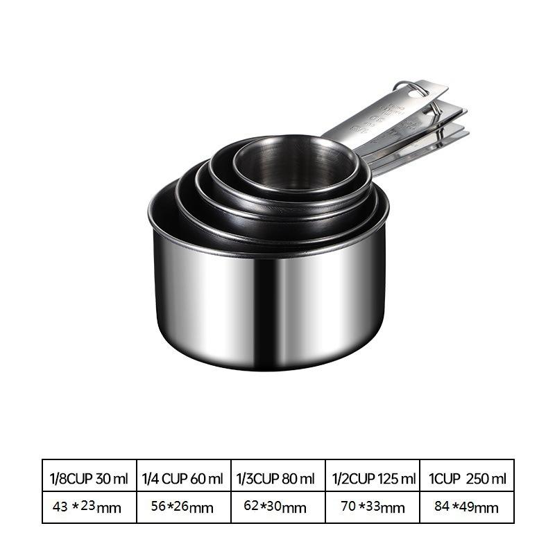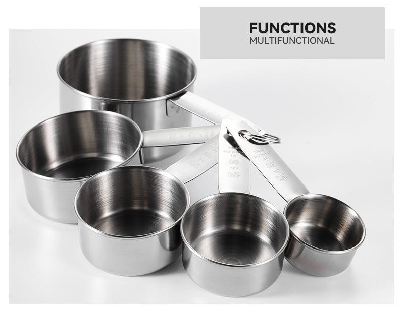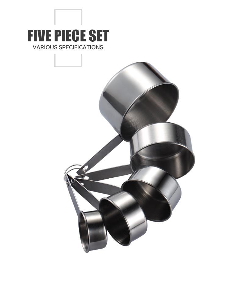 Utensilios para hornear transfronterizos taza medidora cuchara medidora traje 430 acero inoxidable taza medidora juego de 5 piezas con escala taza medidora cuchara medidora