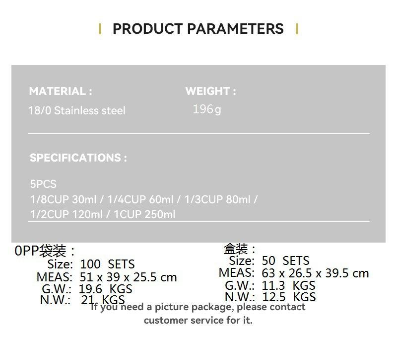 silver 4-piece measuring cup [OPP bag]], Golden 4-piece measuring cup [OPP bag]], silver 5-piece measuring cup [OPP bag]]