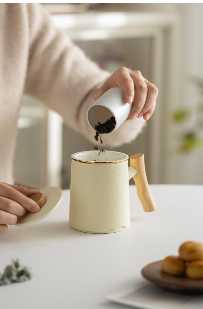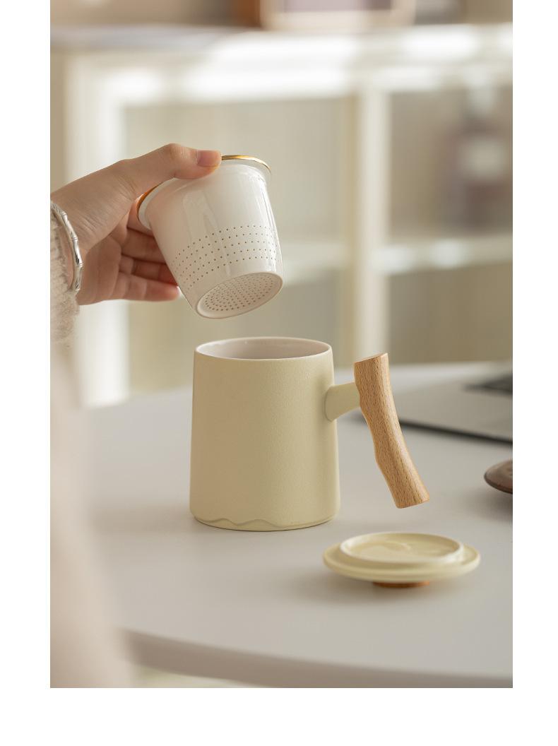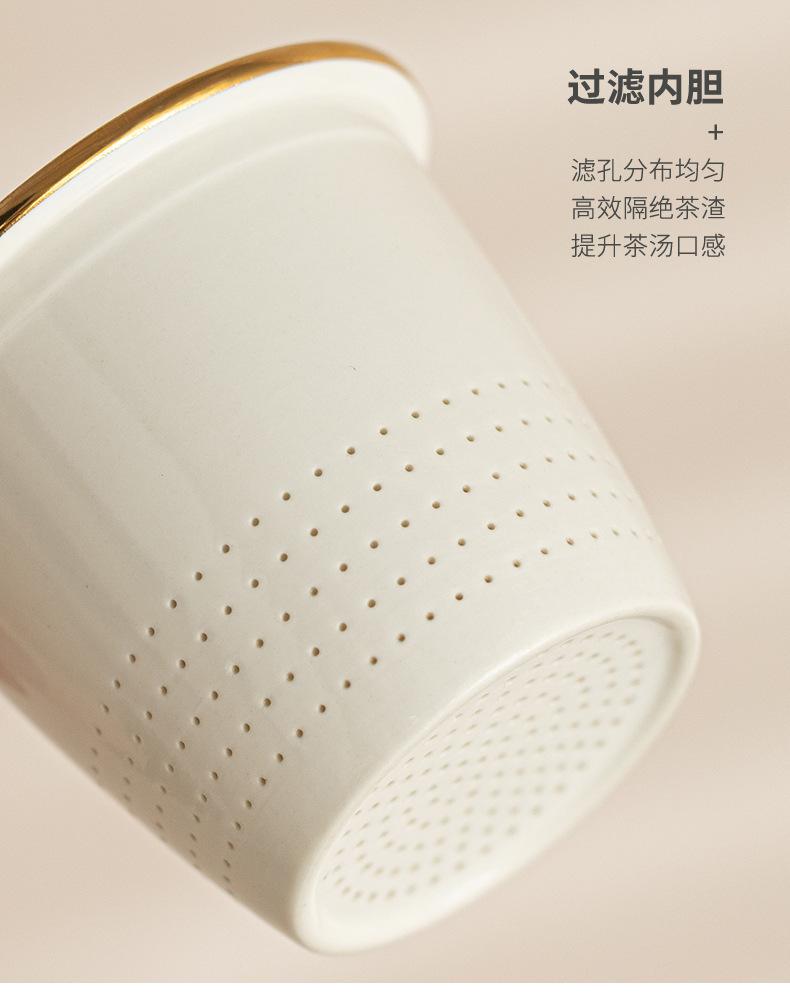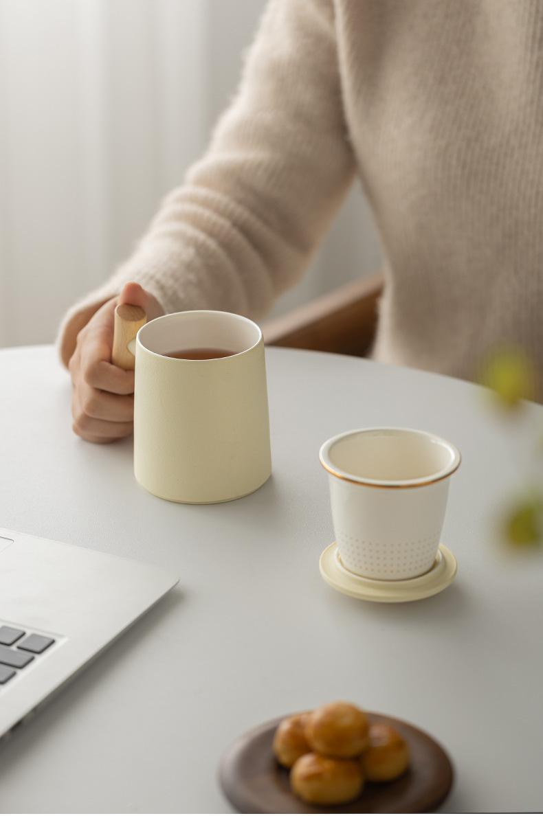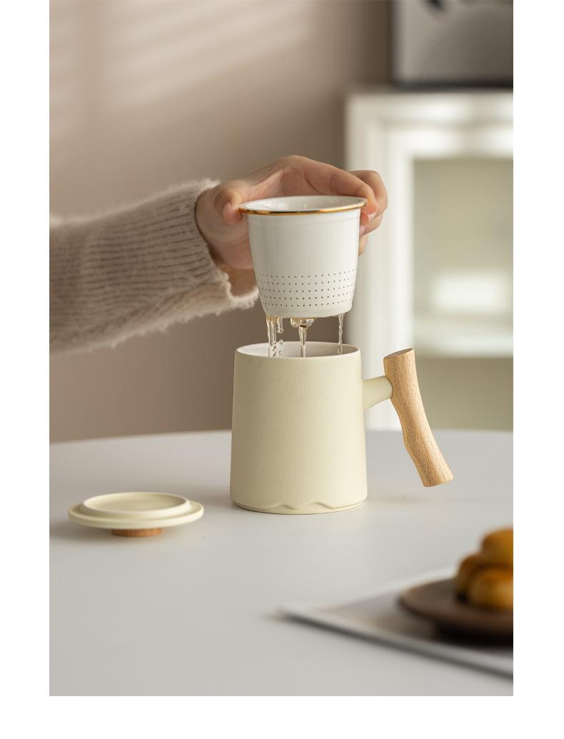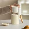Taza de té de cerámica beige con separación de agua y filtro, ideal para el hogar y la oficina.