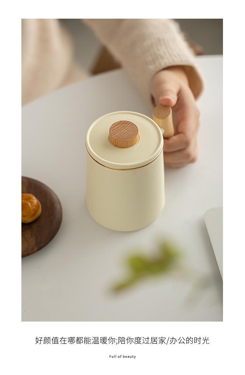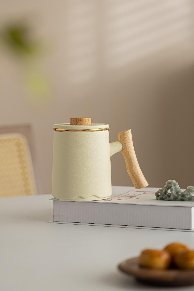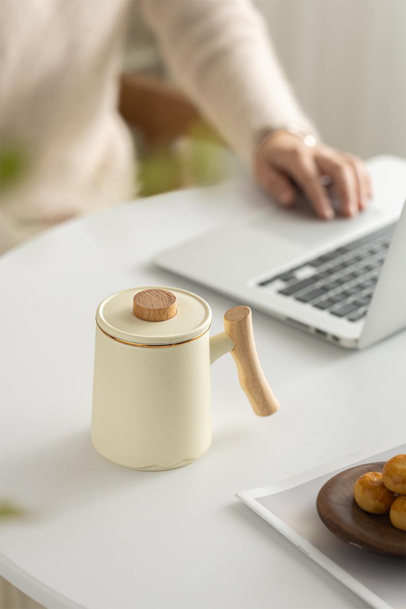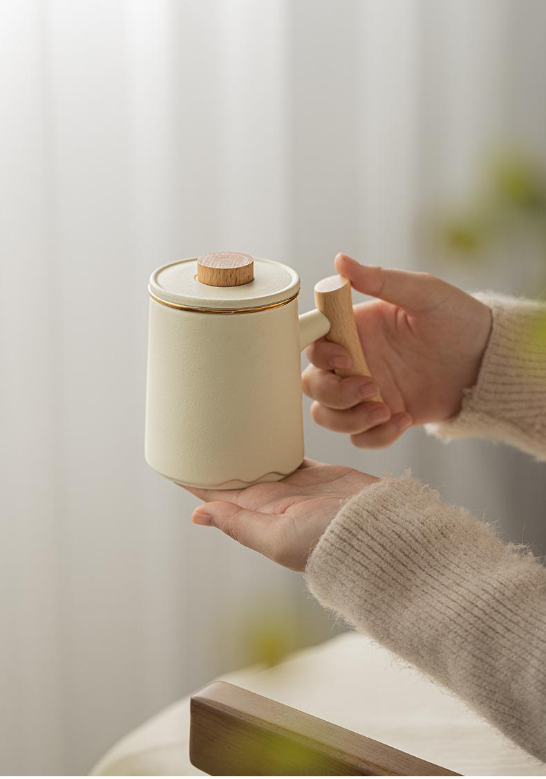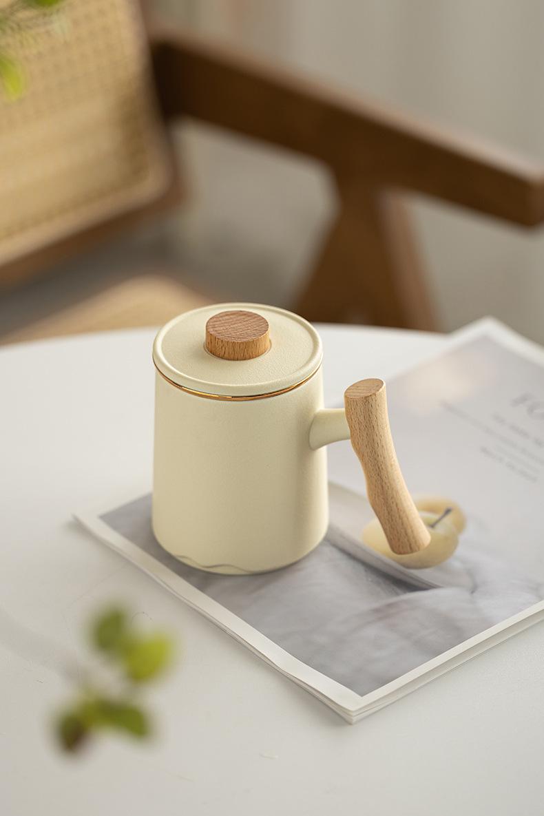 Taza de té de cerámica beige con separación de agua y filtro, ideal para el hogar y la oficina.