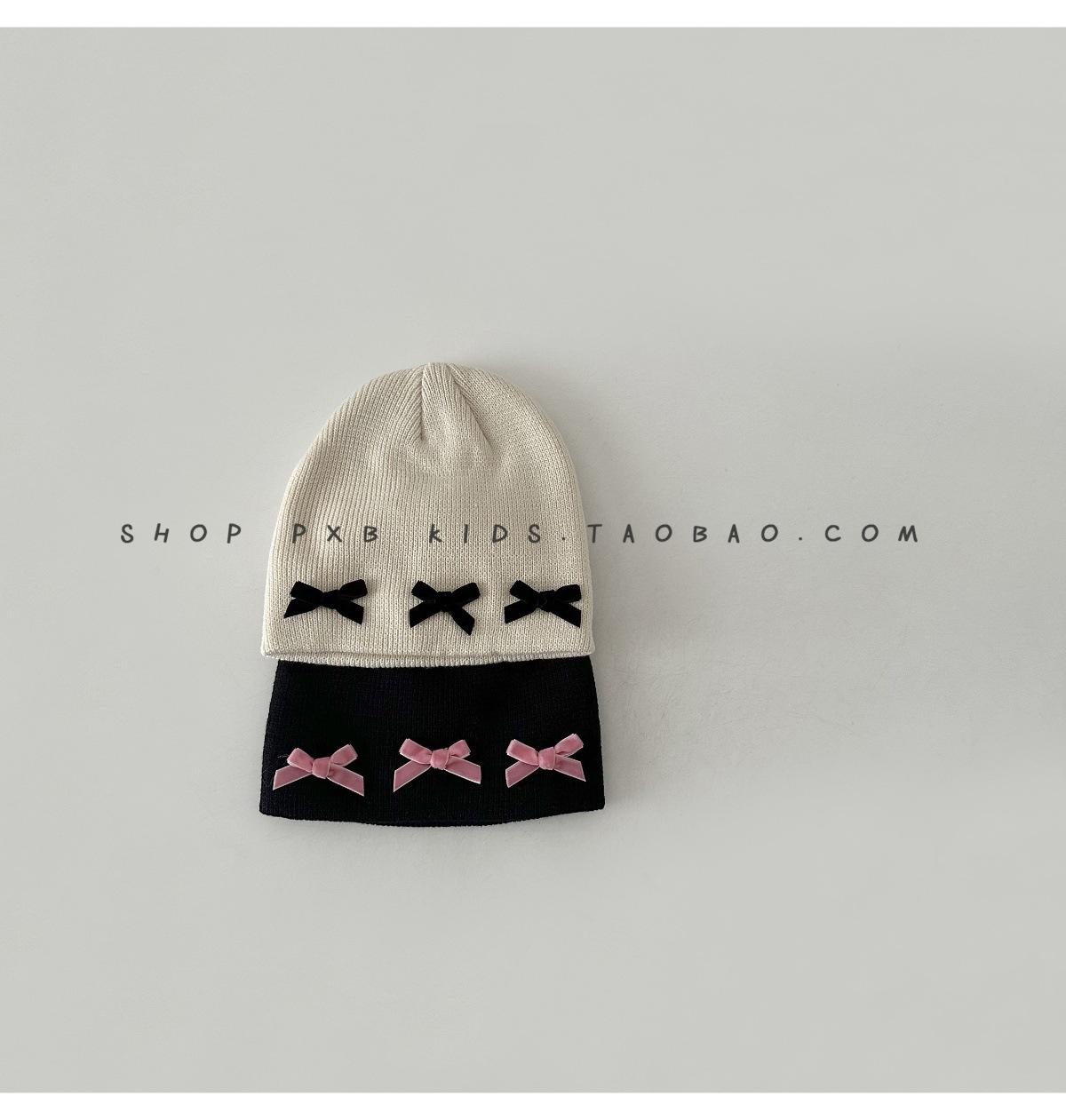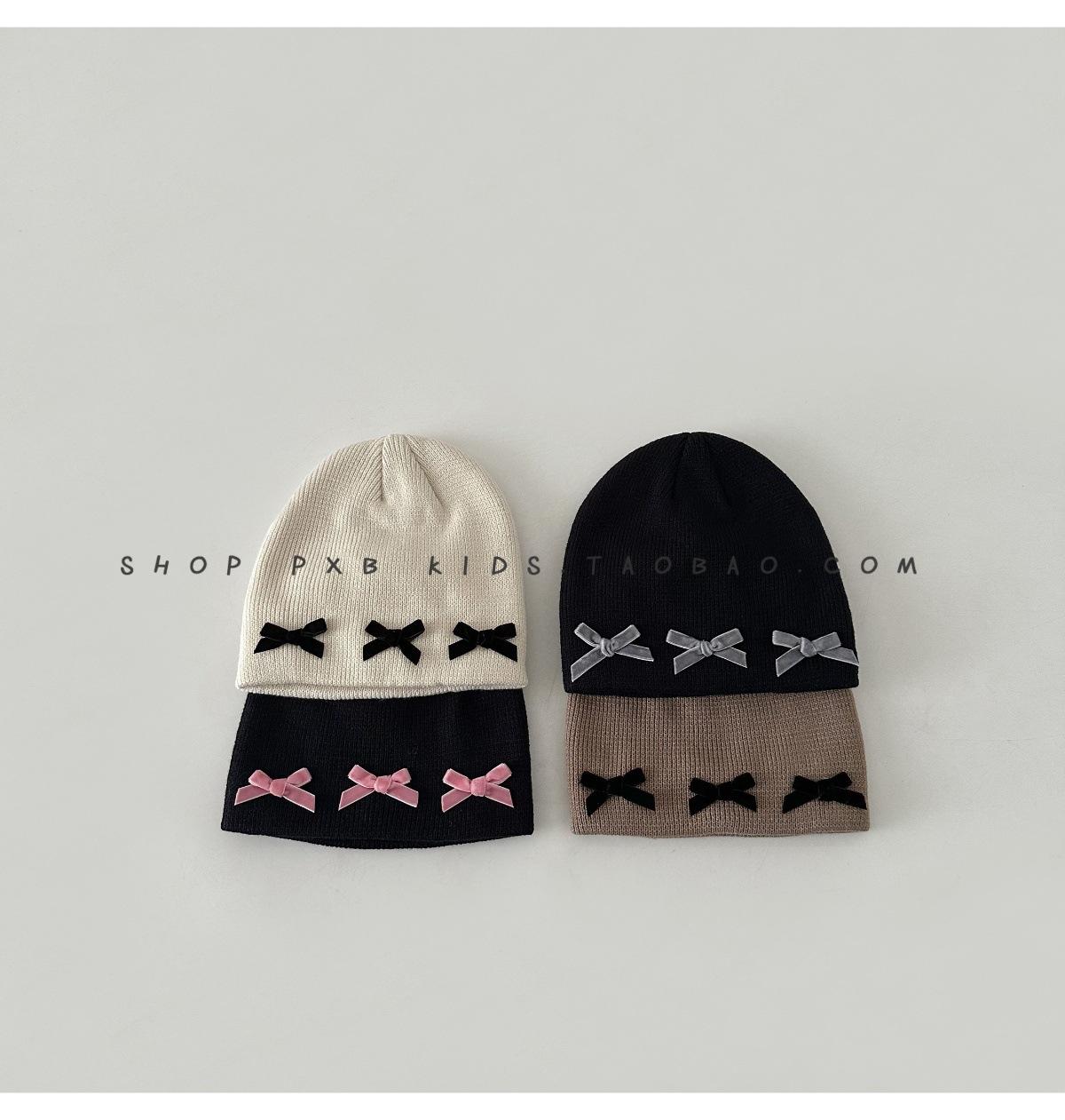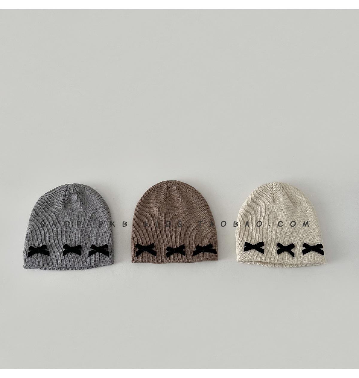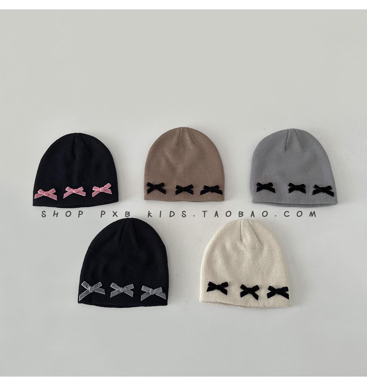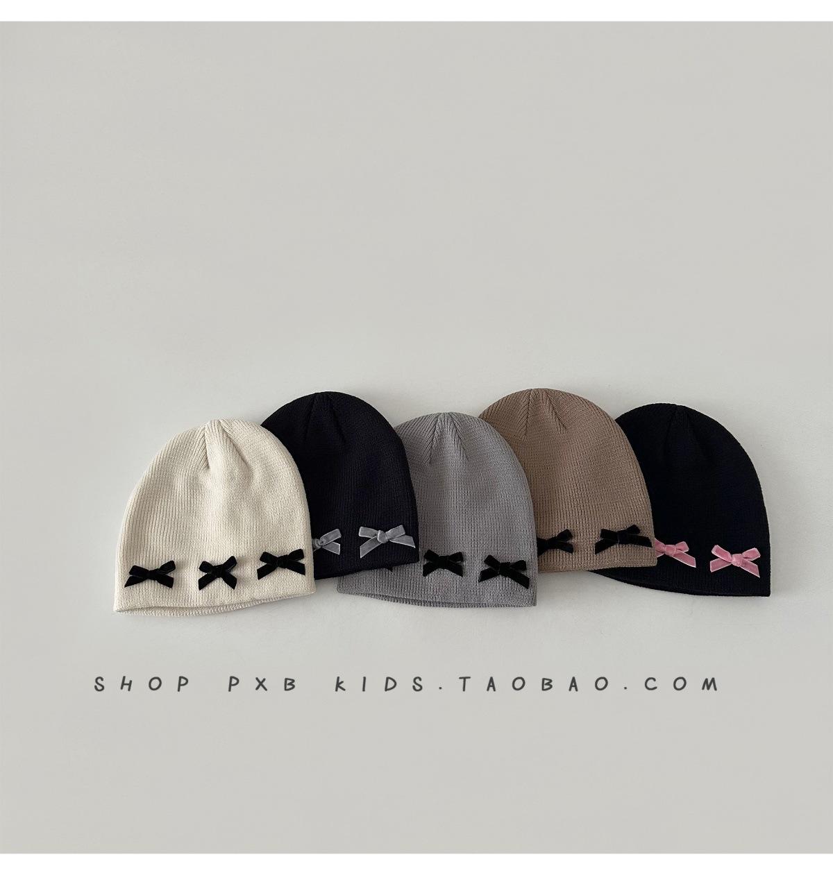 Gorro de punto con lazo elegante, estilo coreano, cálido gorro de lana para niños y niñas, gorro estilo jersey de moda para otoño e invierno.