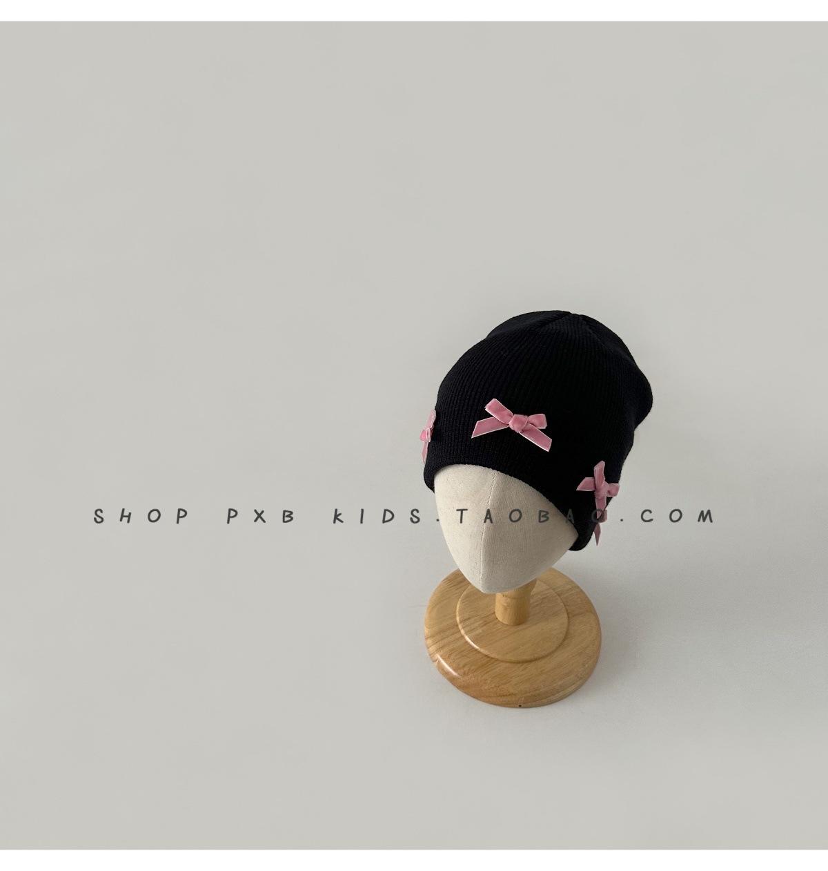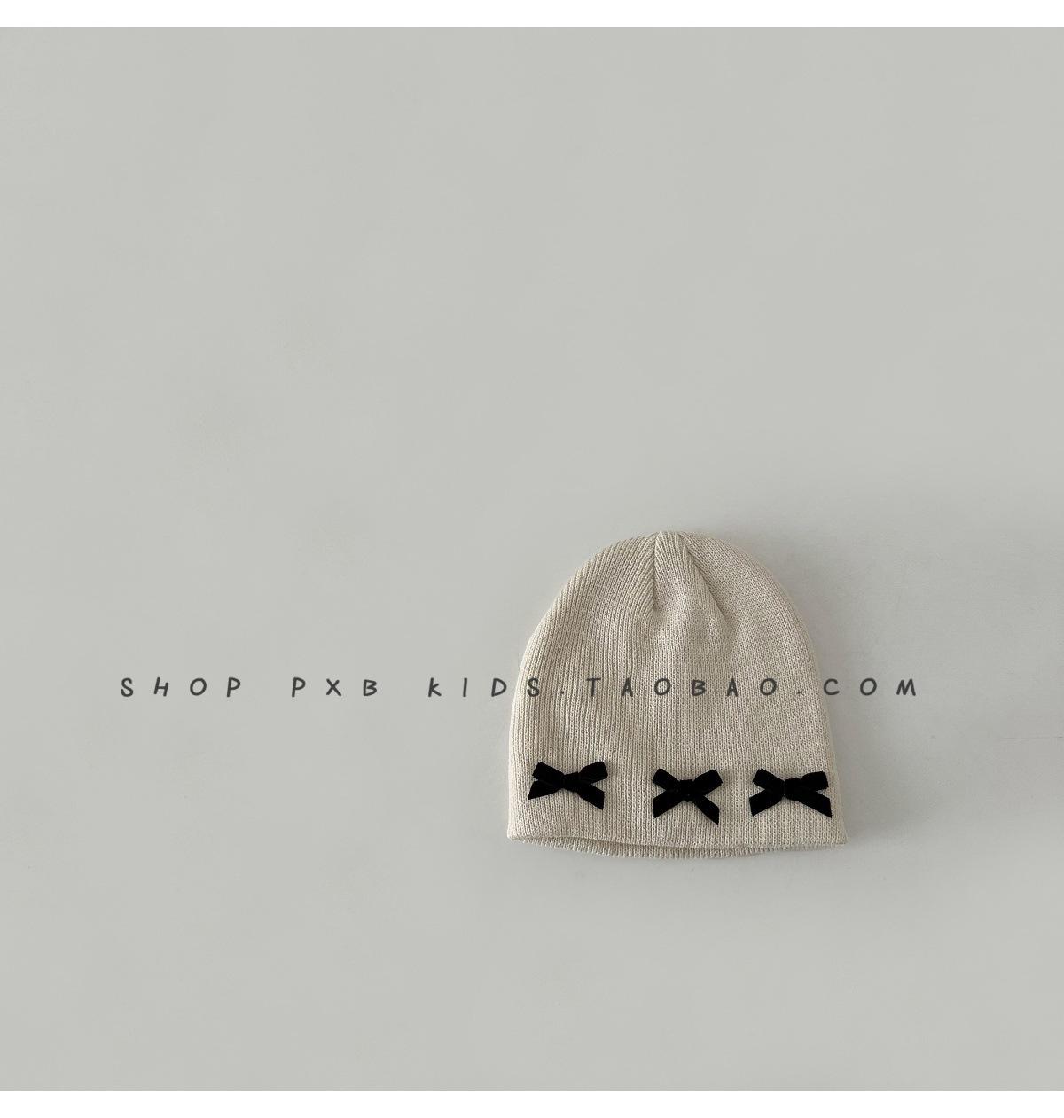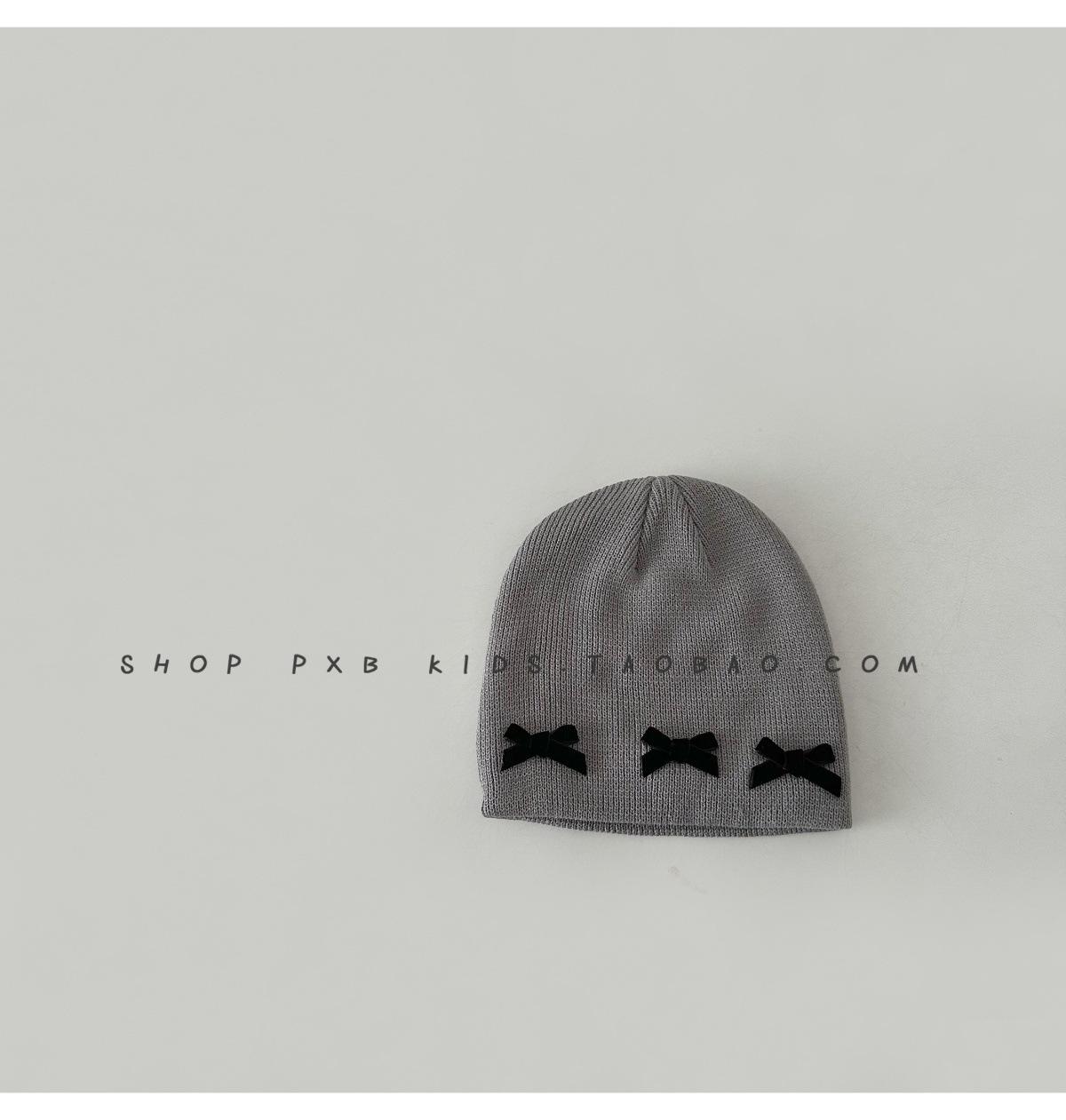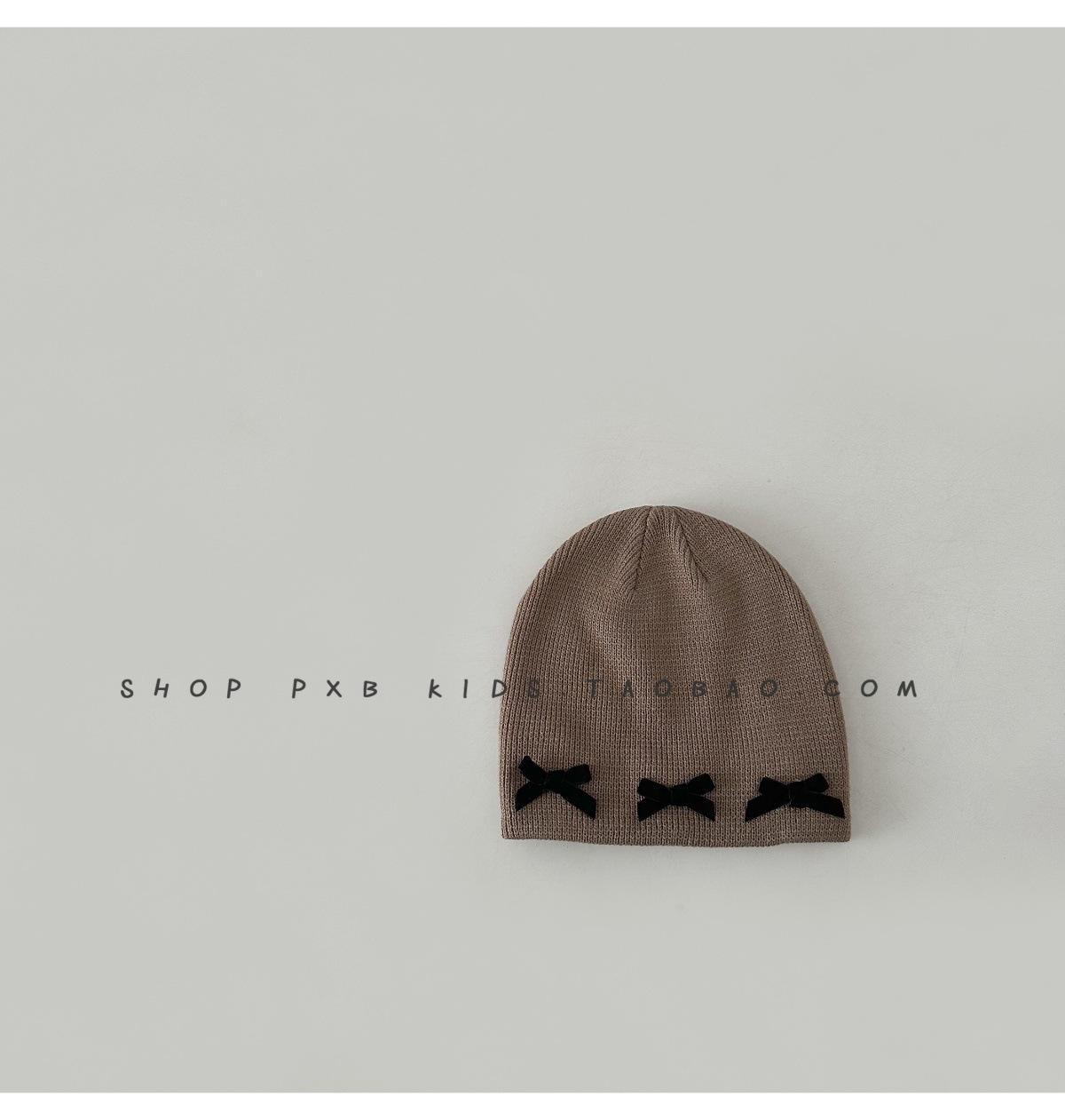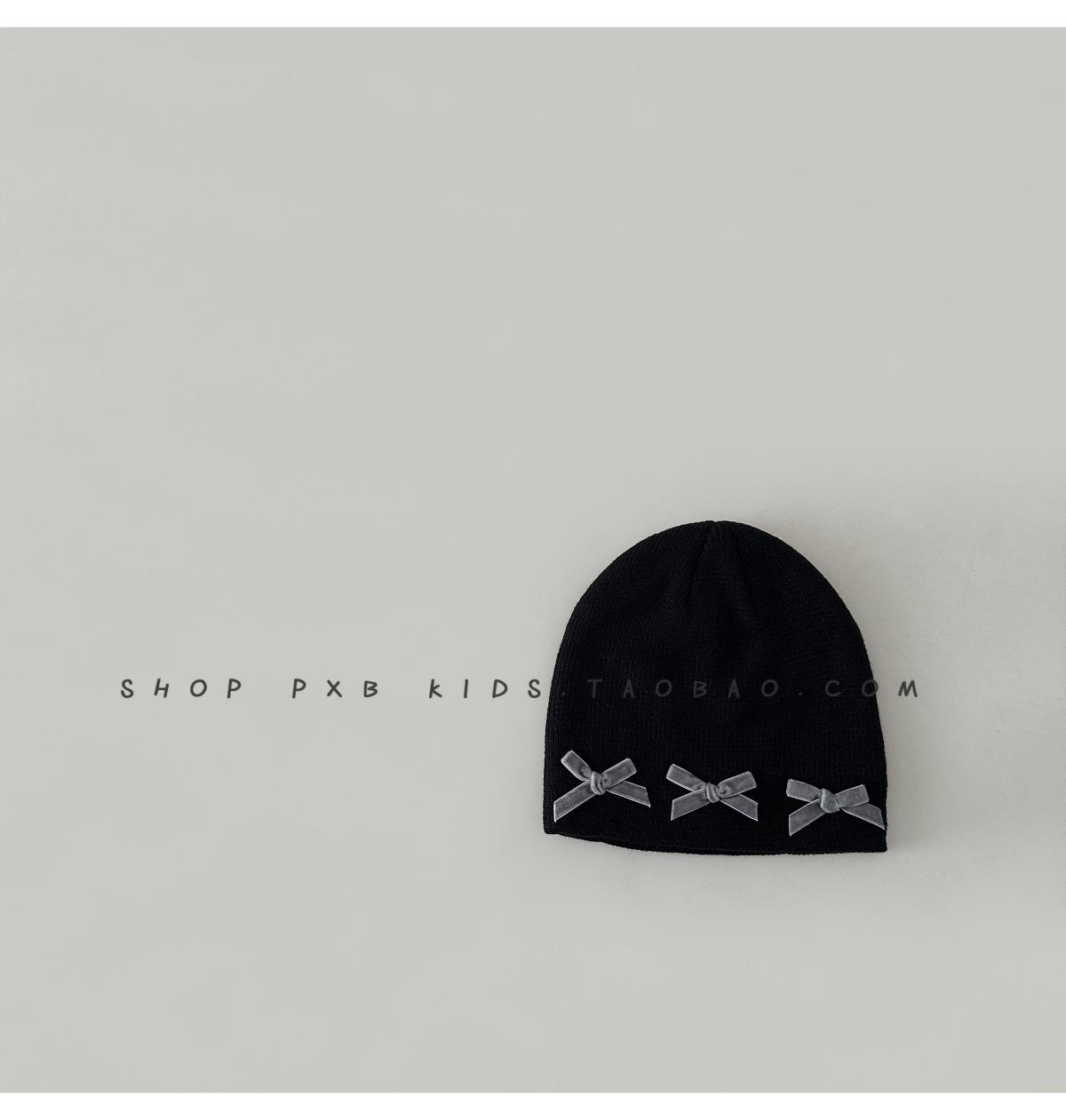 Gorro de punto con lazo elegante, estilo coreano, cálido gorro de lana para niños y niñas, gorro estilo jersey de moda para otoño e invierno.
