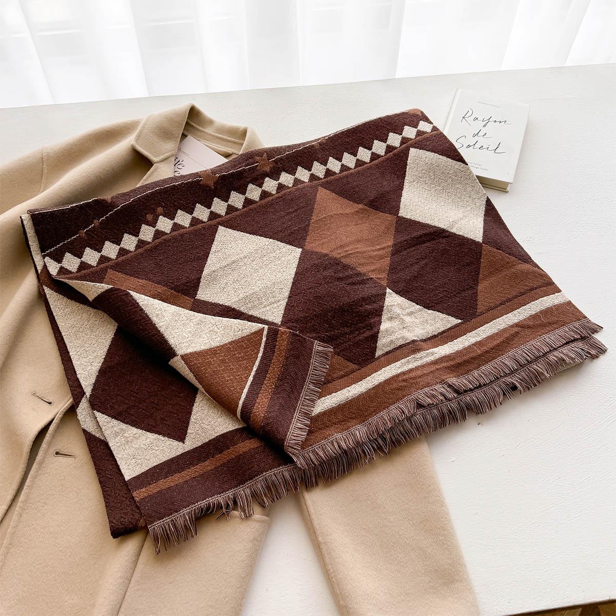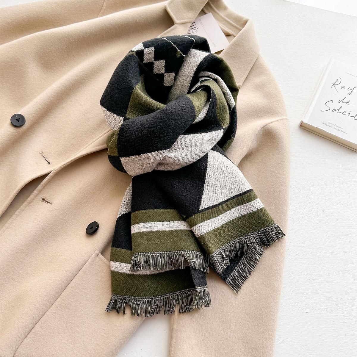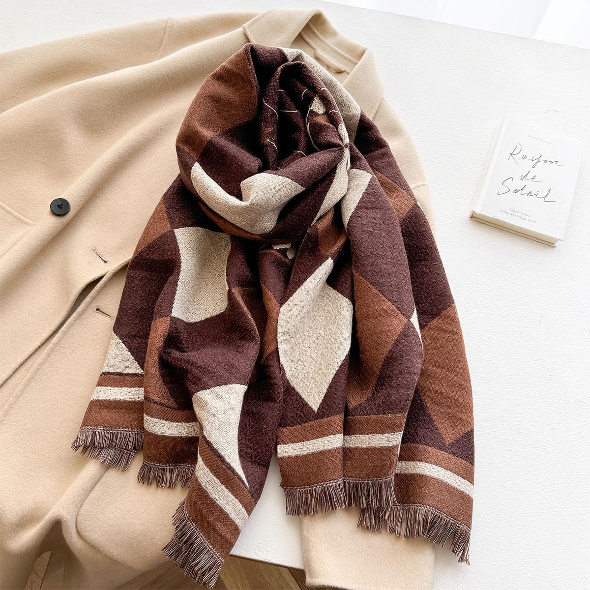 Estilo Coreano Nueva Llegada Bufanda de Cachemira de Doble Cara con Forma de Diamante a la Moda Bufanda Elegante para Mujer que Reduce la Edad Bufanda Cálida para Estudiante Mujer