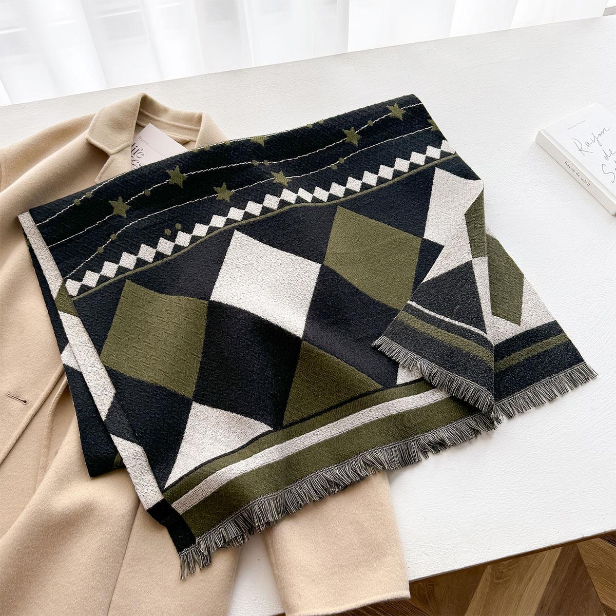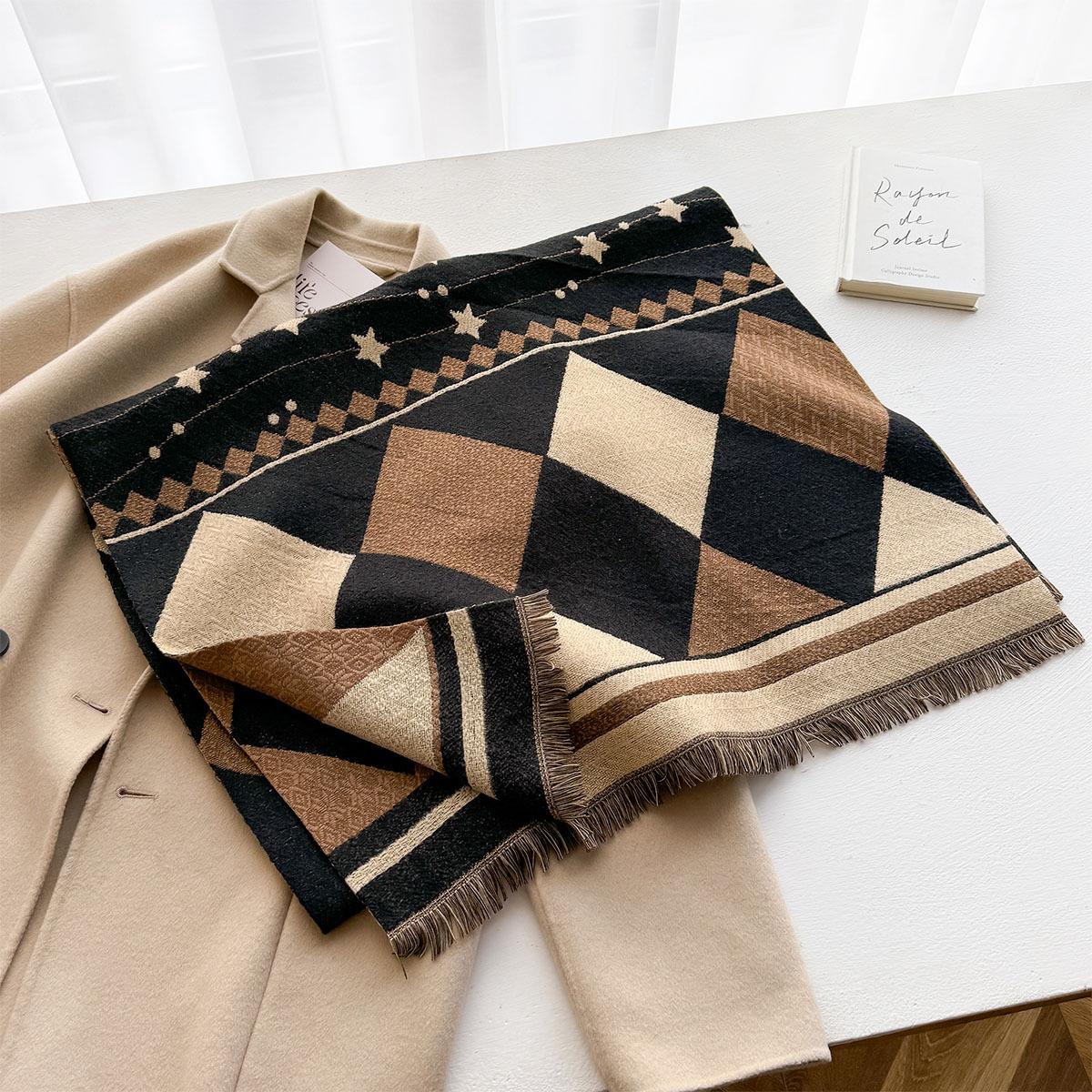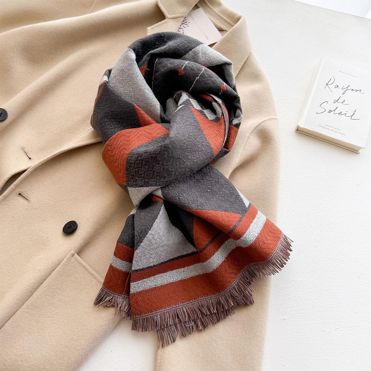 Estilo Coreano Nueva Llegada Bufanda de Cachemira de Doble Cara con Forma de Diamante a la Moda Bufanda Elegante para Mujer que Reduce la Edad Bufanda Cálida para Estudiante Mujer