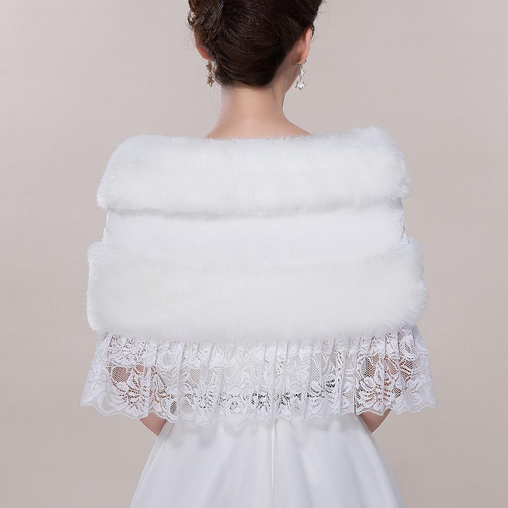 Chal para vestido de novia, chal de felpa para novia, otoño e invierno, estilo europeo y americano, imitación de piel de conejo, cálido chal de lana con costura de encaje.