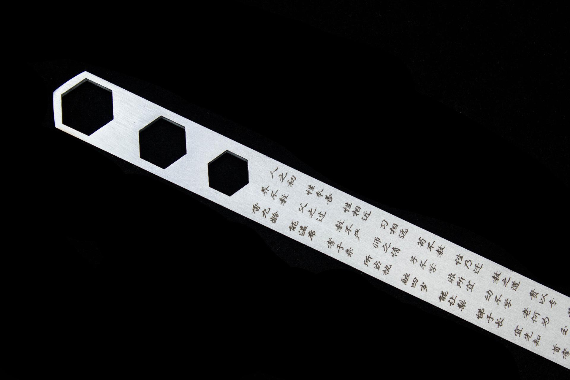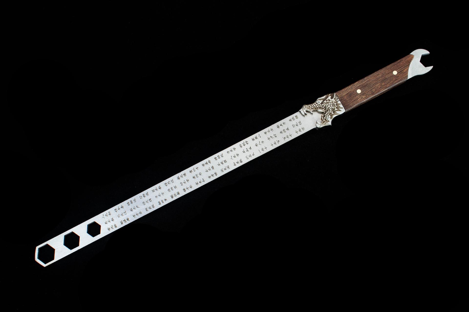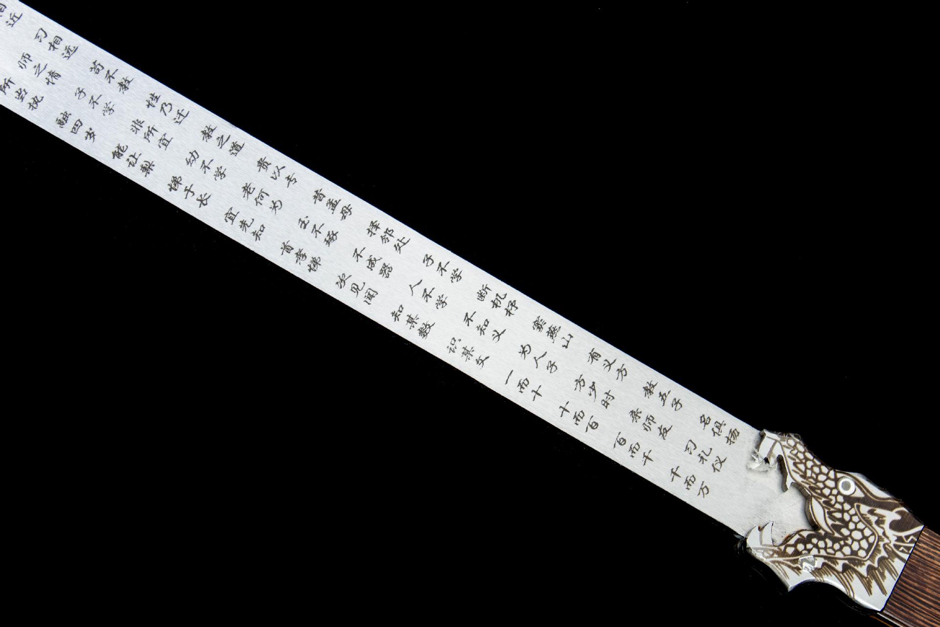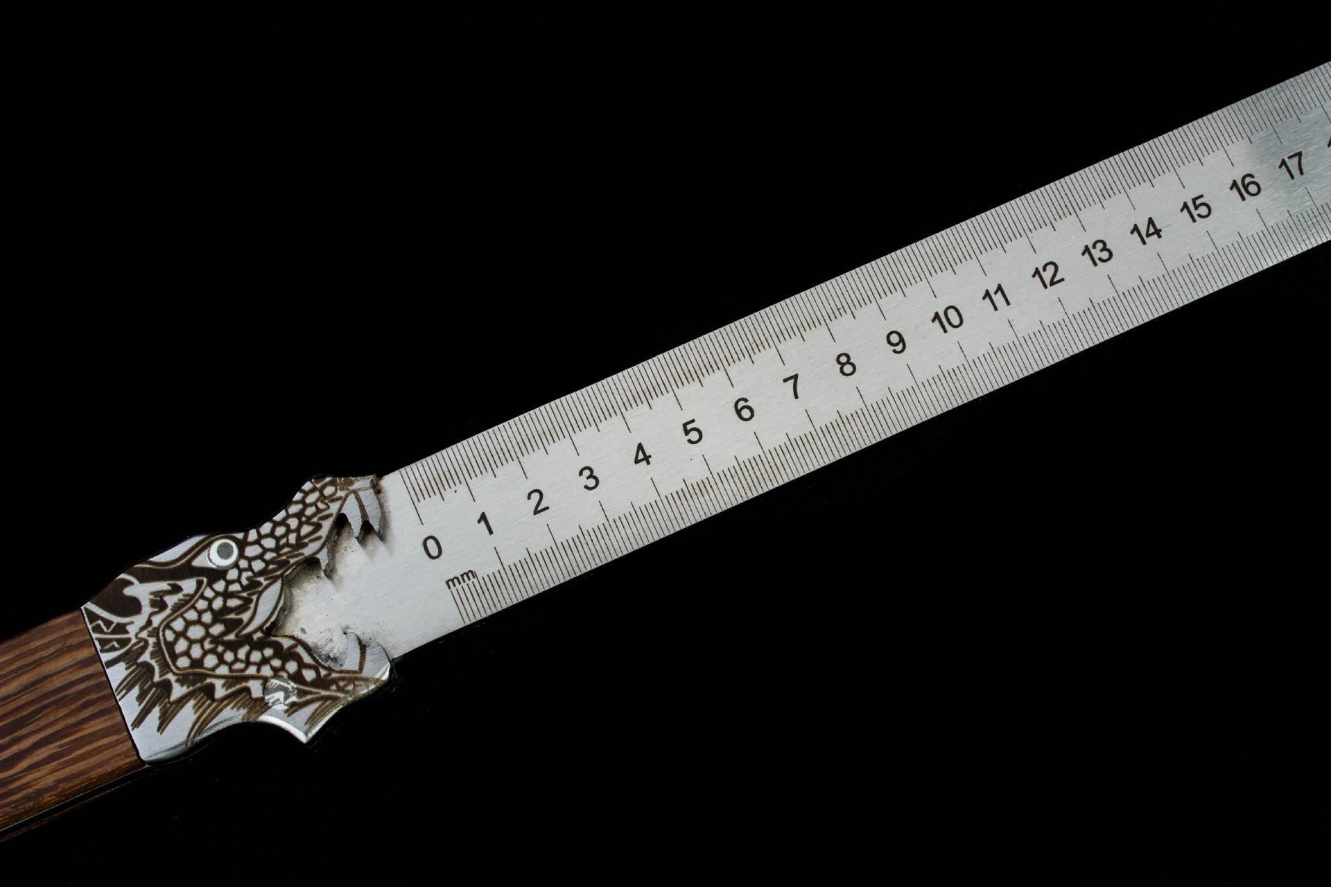 Artesanía: Heredando la artesanía tradicional de fabricación de espadas de Longquan, forjada a mano y sometida a múltiples procesos como temple, recocido y revenido. Longitud total: 61cm Longitud de la regla: 41cm (escala: 30)