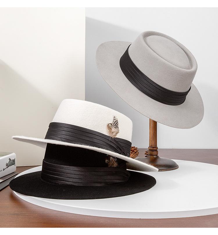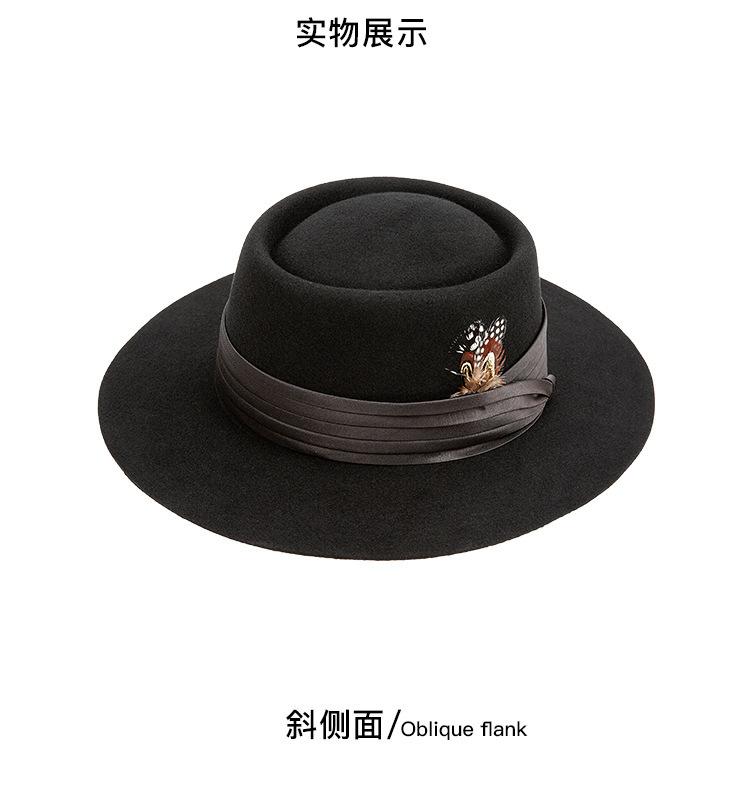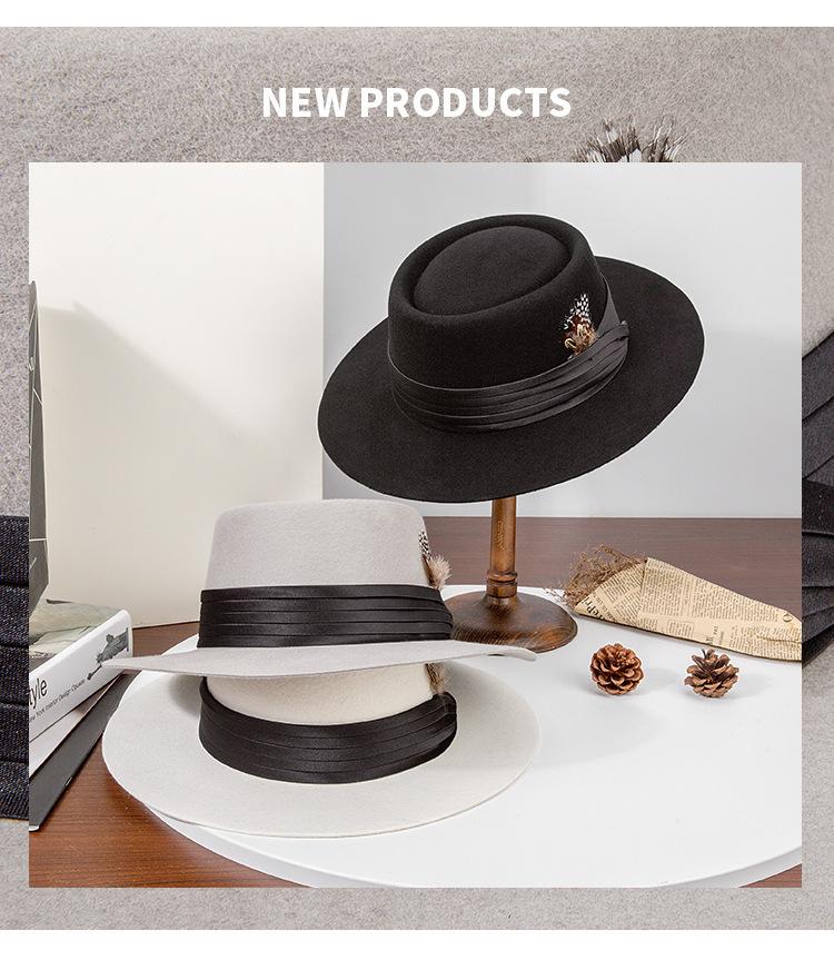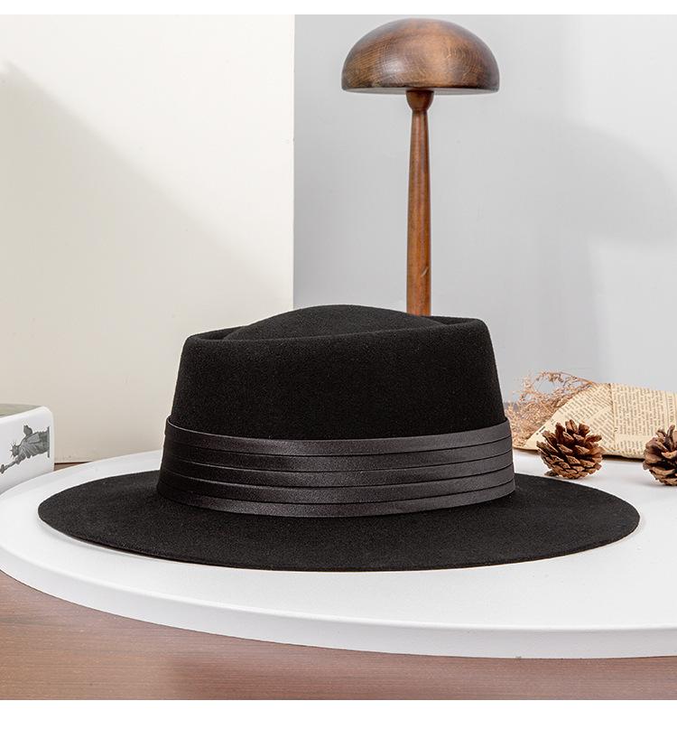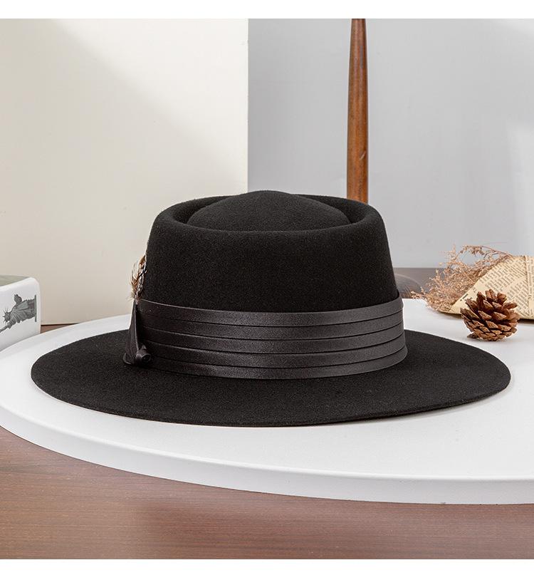 Sombrero de Lana de Ala Plana Estilo Francés Nuevo de Otoño e Invierno 2025 Unisex Moderno Negro Versátil Sombrero de Fieltro Europeo y Americano