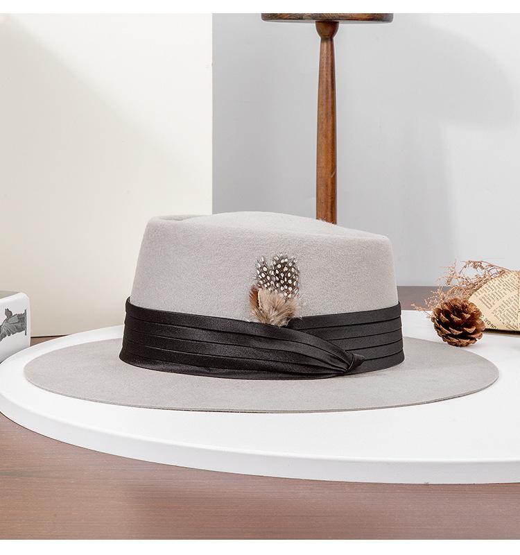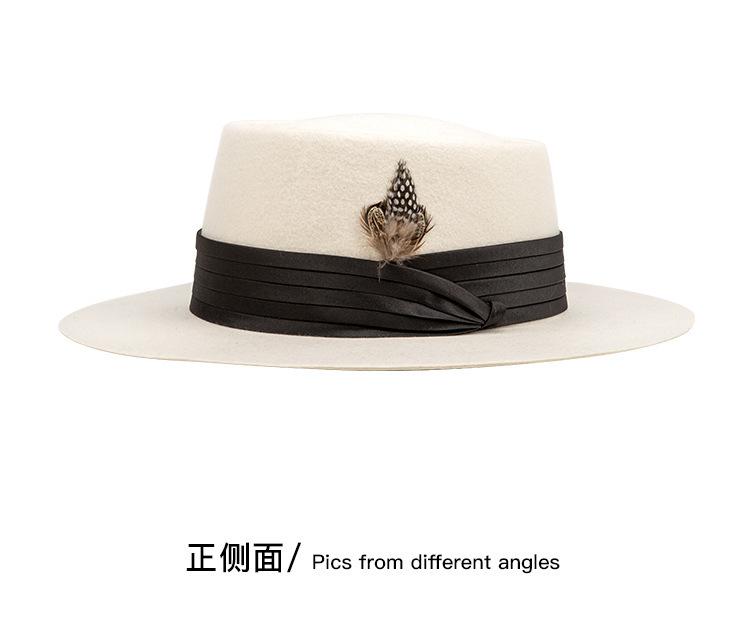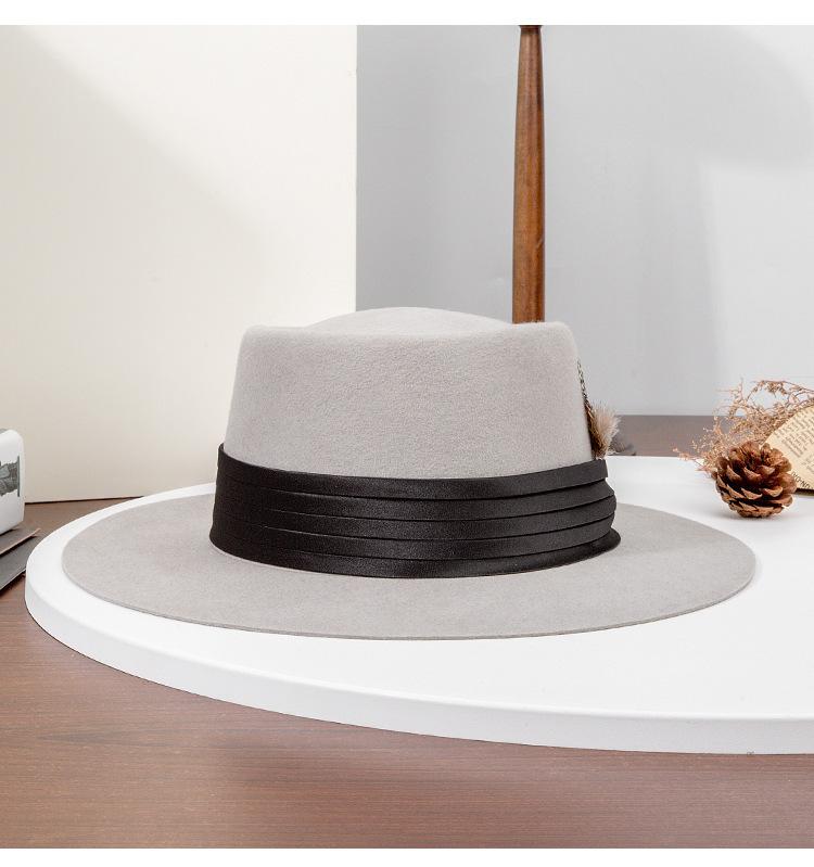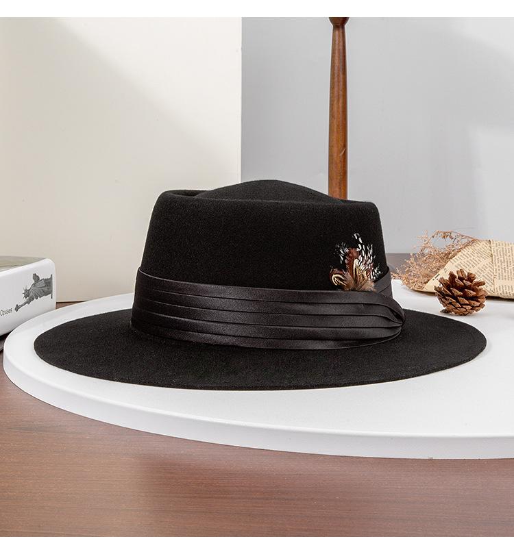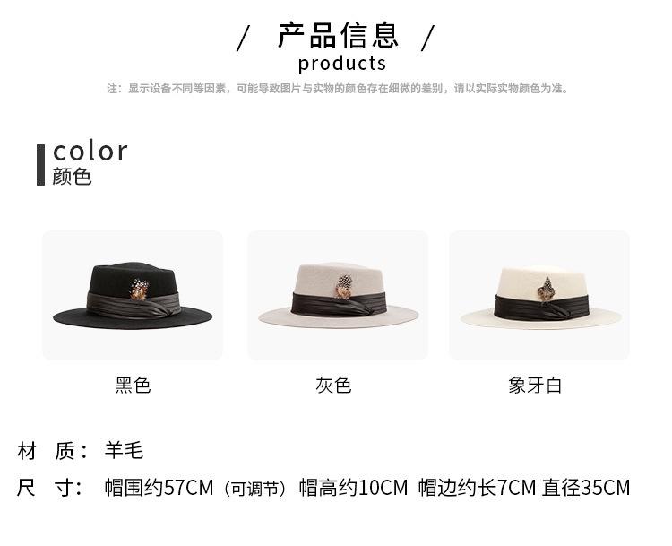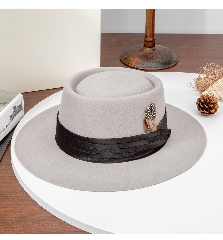 Sombrero de Lana de Ala Plana Estilo Francés Nuevo de Otoño e Invierno 2025 Unisex Moderno Negro Versátil Sombrero de Fieltro Europeo y Americano