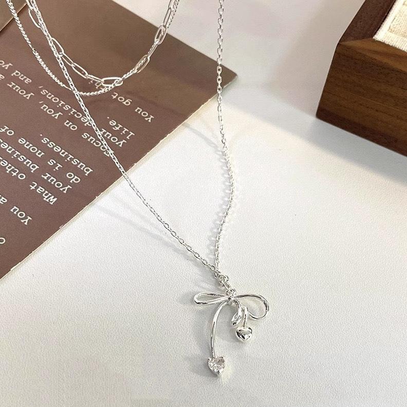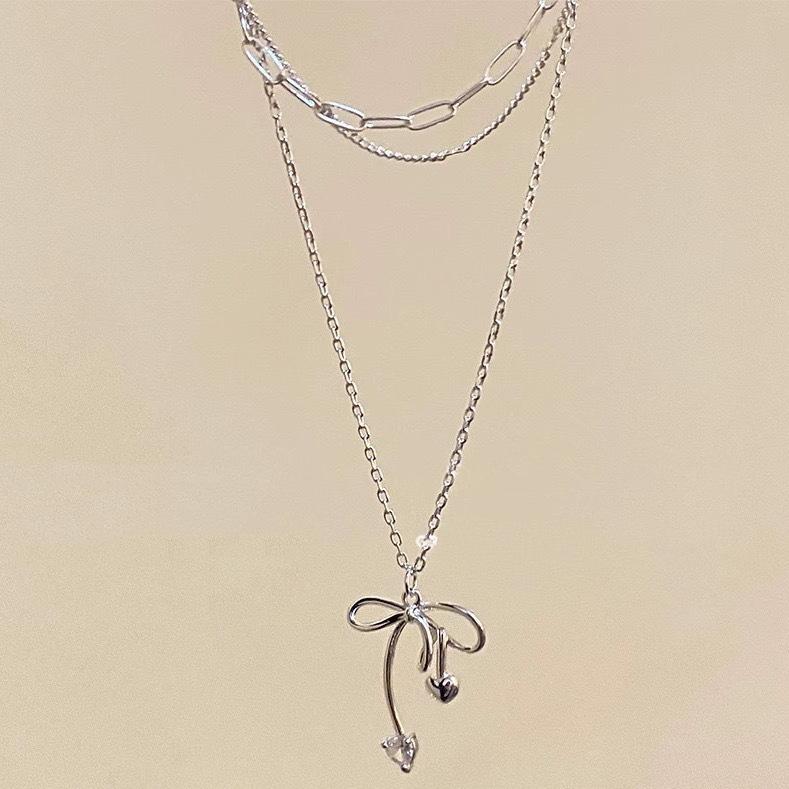 Collar romántico de verano con colgante de amor y lazo multicapa para mujer, cadena de clavícula sencilla y de alta gama, combinable con todo.