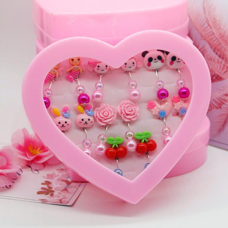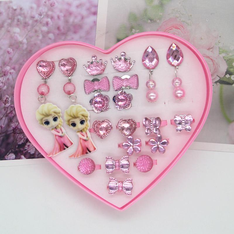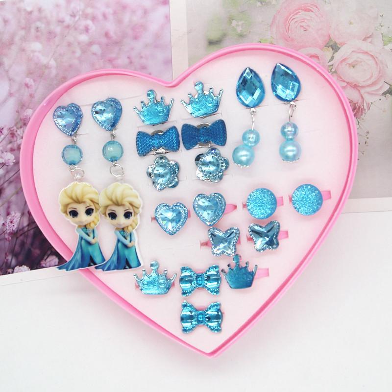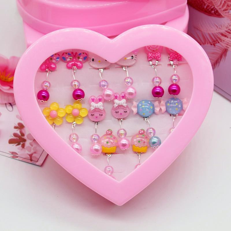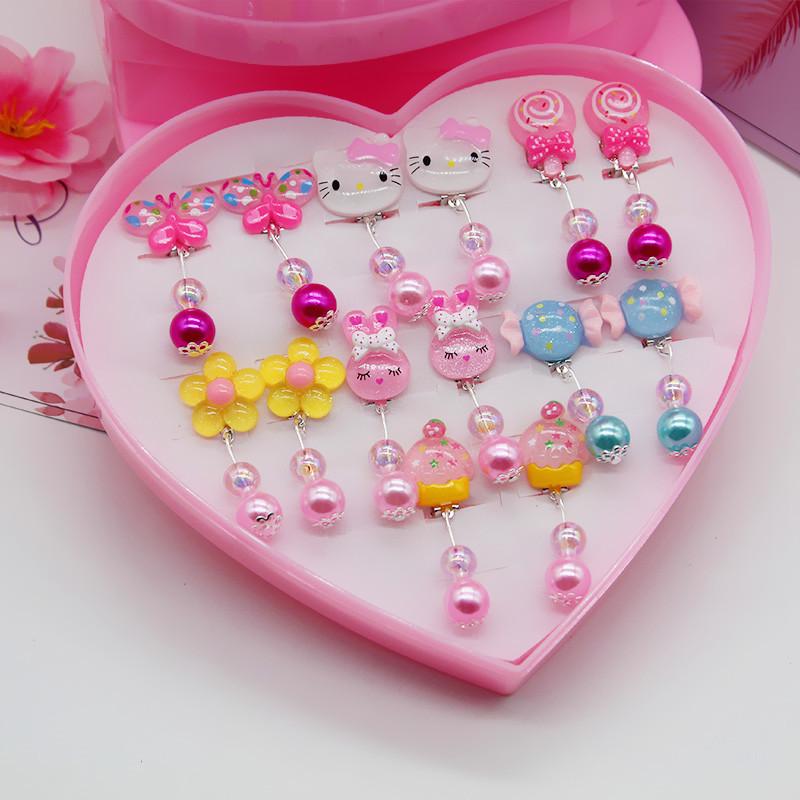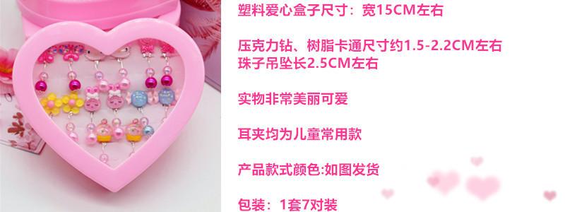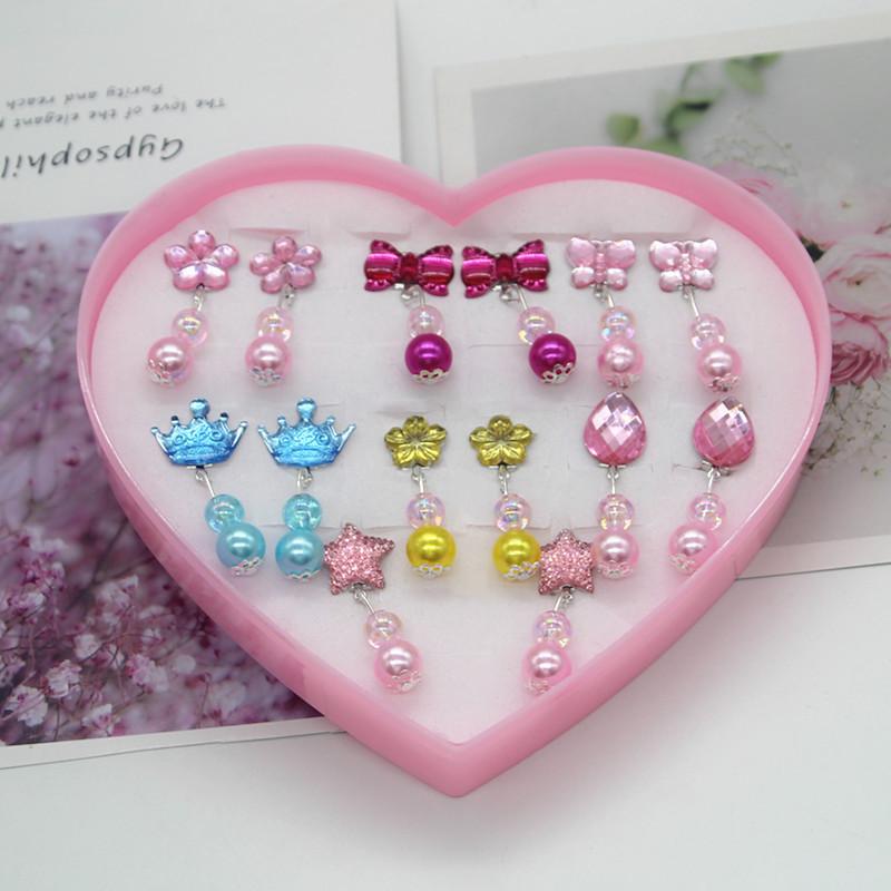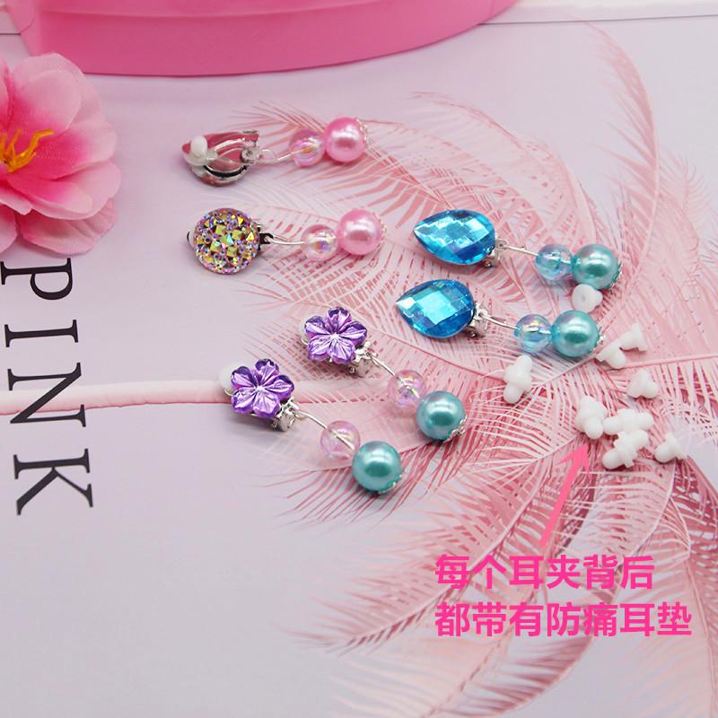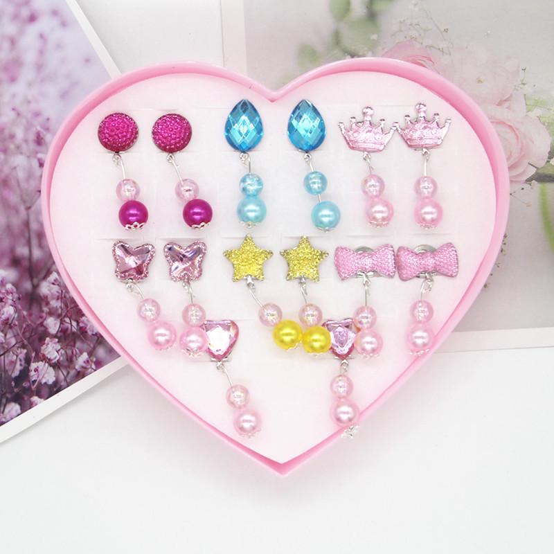 Pendientes de clip para la oreja de juguete para niños de fábrica sin orificio para la oreja con colgante, lindos pendientes de princesa de dibujos animados, caja de regalo de amor, traje