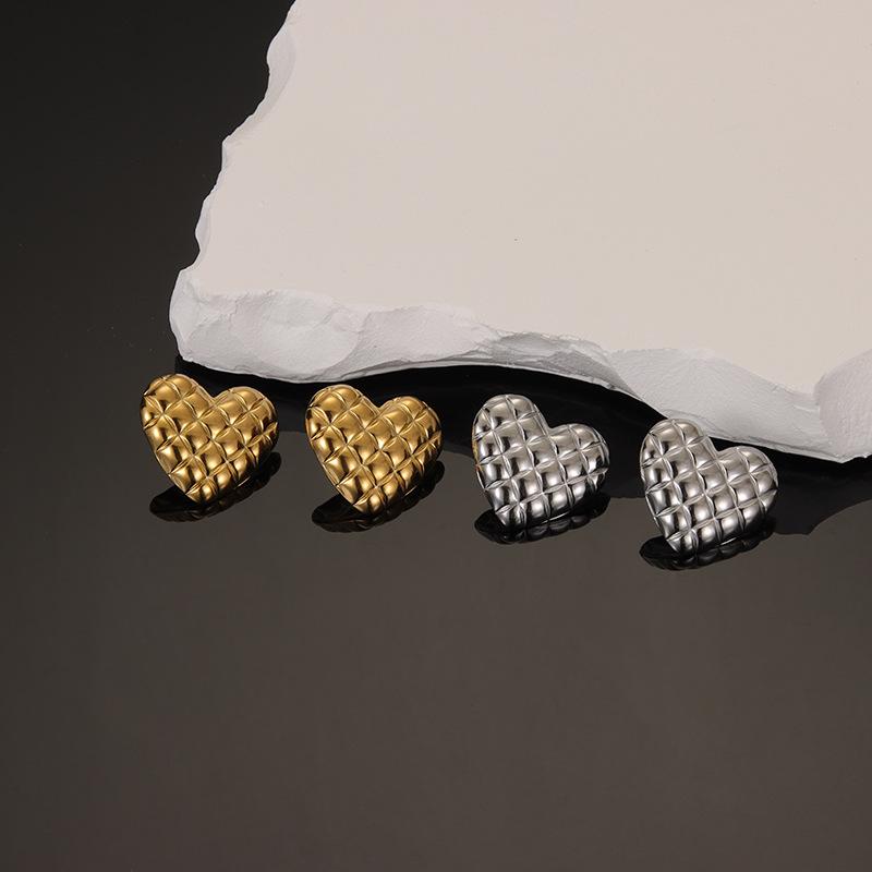 D136 steel color plaid heart earrings, one pair, D136 gold plaid heart earrings, one pair, D137 steel color co...