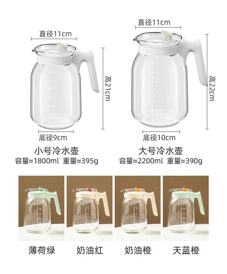 Hervidor de agua de vidrio de fábrica, resistente a altas temperaturas, apto para refrigerador, hervidor de agua para jugo, hervidor de té de gran capacidad