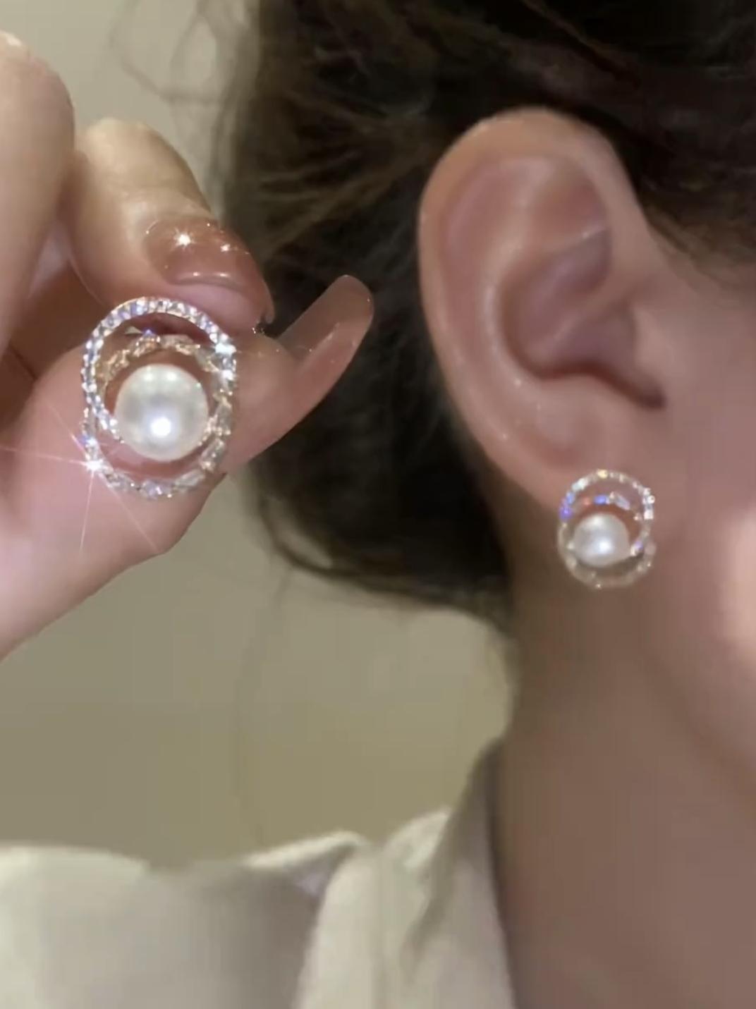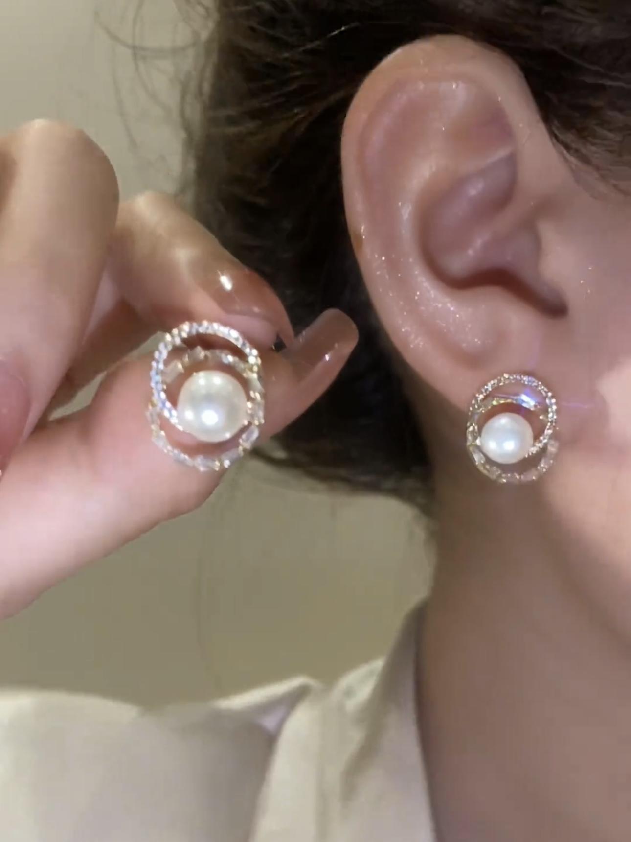 Aretes de tuerca de perla enrollada microincrustada temperamento femenino nicho aretes de alta gama 2023 Nuevos aretes exquisitos de lujo ligero aguja de plata