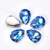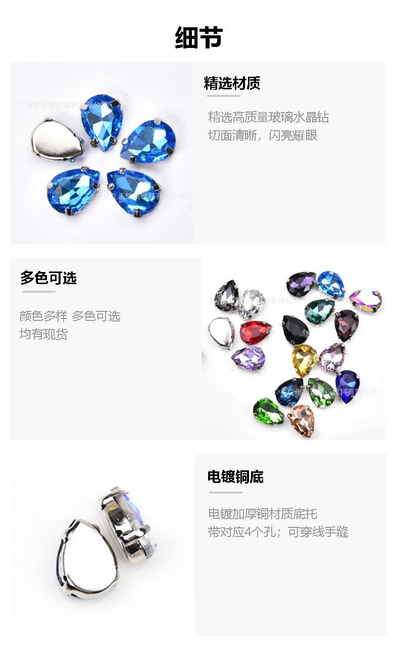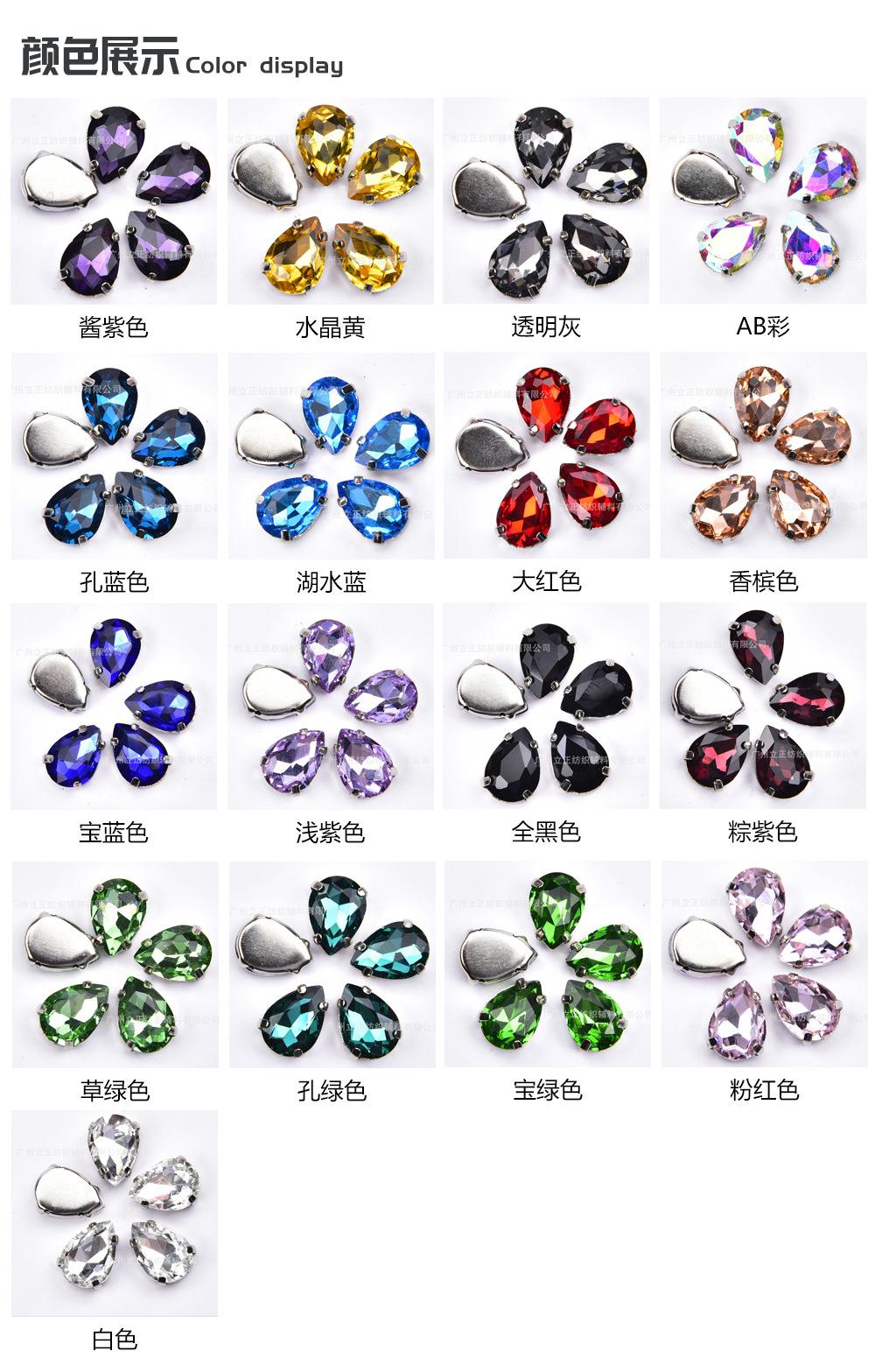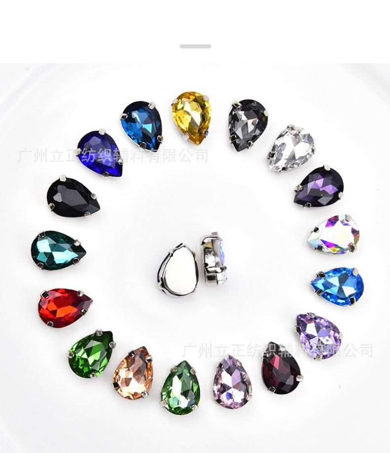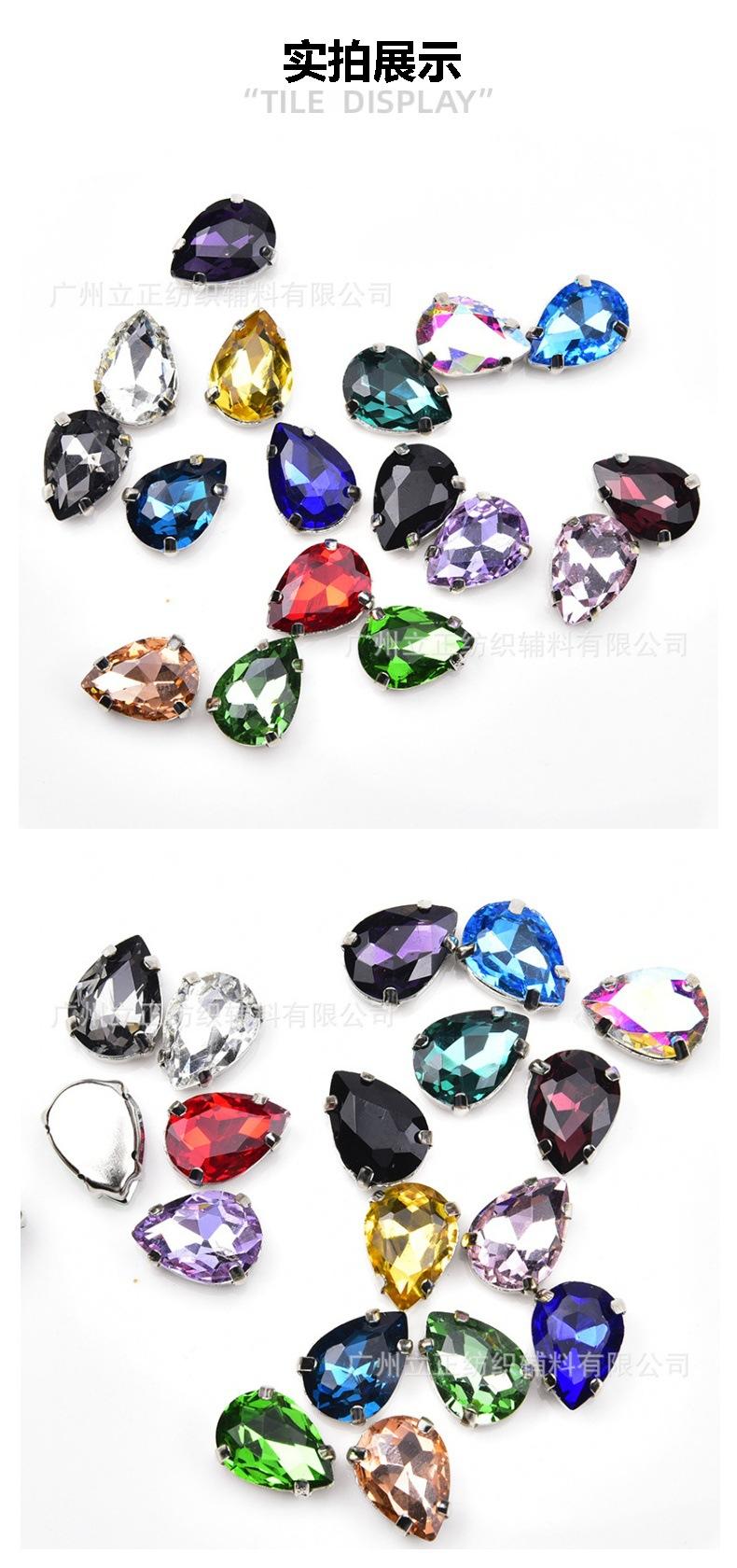 [Nombre]: Exquisito diamante cosido a mano en forma de lágrima de cuatro garras con fondo plateado de colores