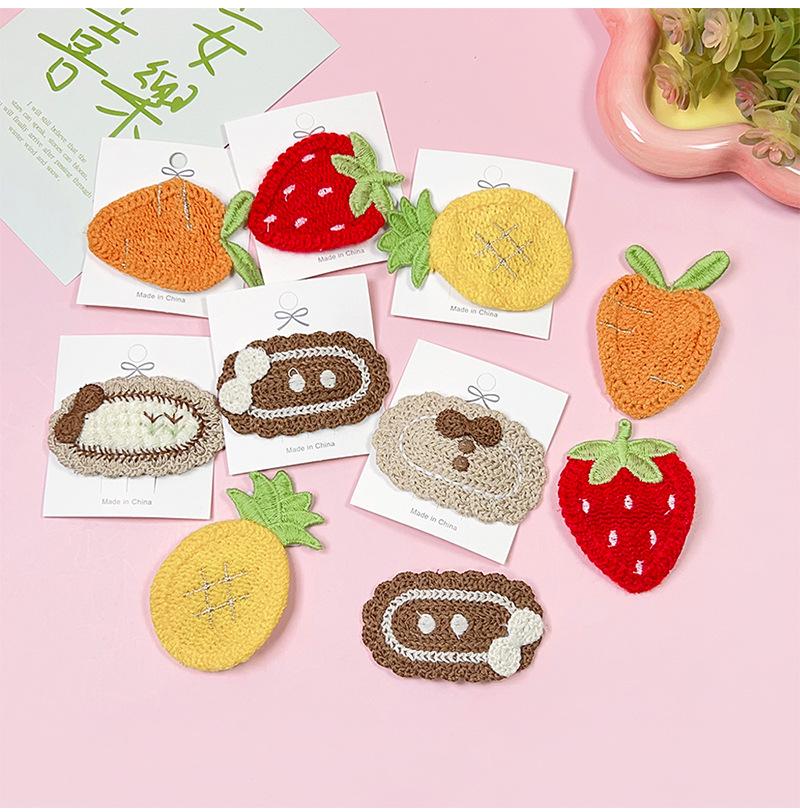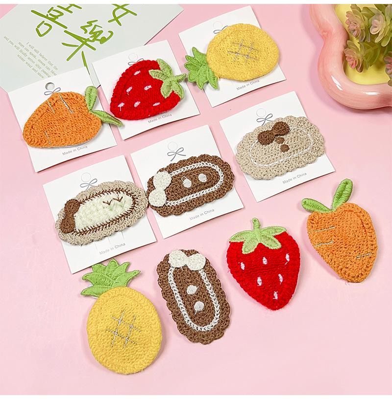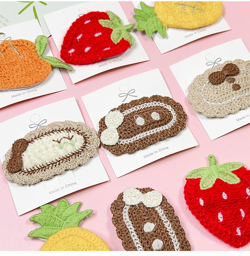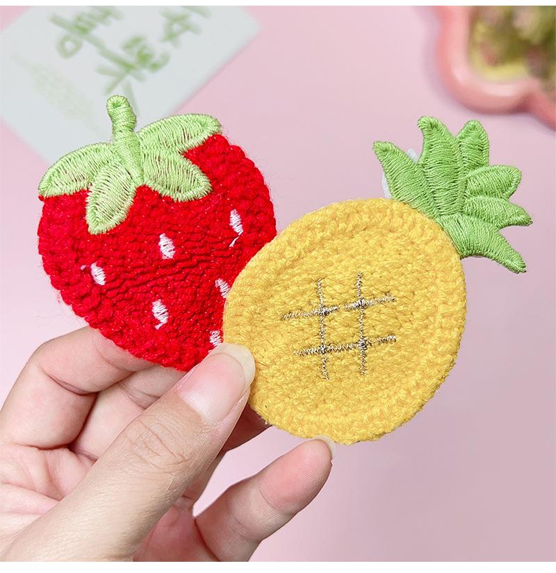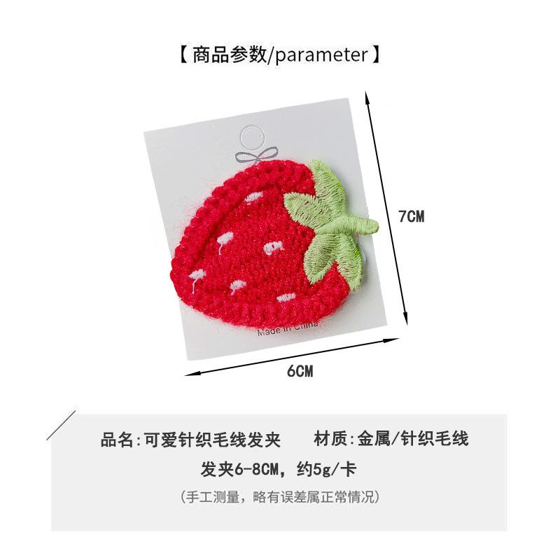 Nuevos productos al por mayor, linda horquilla de punto de fresa, clip de flequillo de dibujos animados, clip BB, accesorios para el cabello con fruta bordada, clip para la cabeza