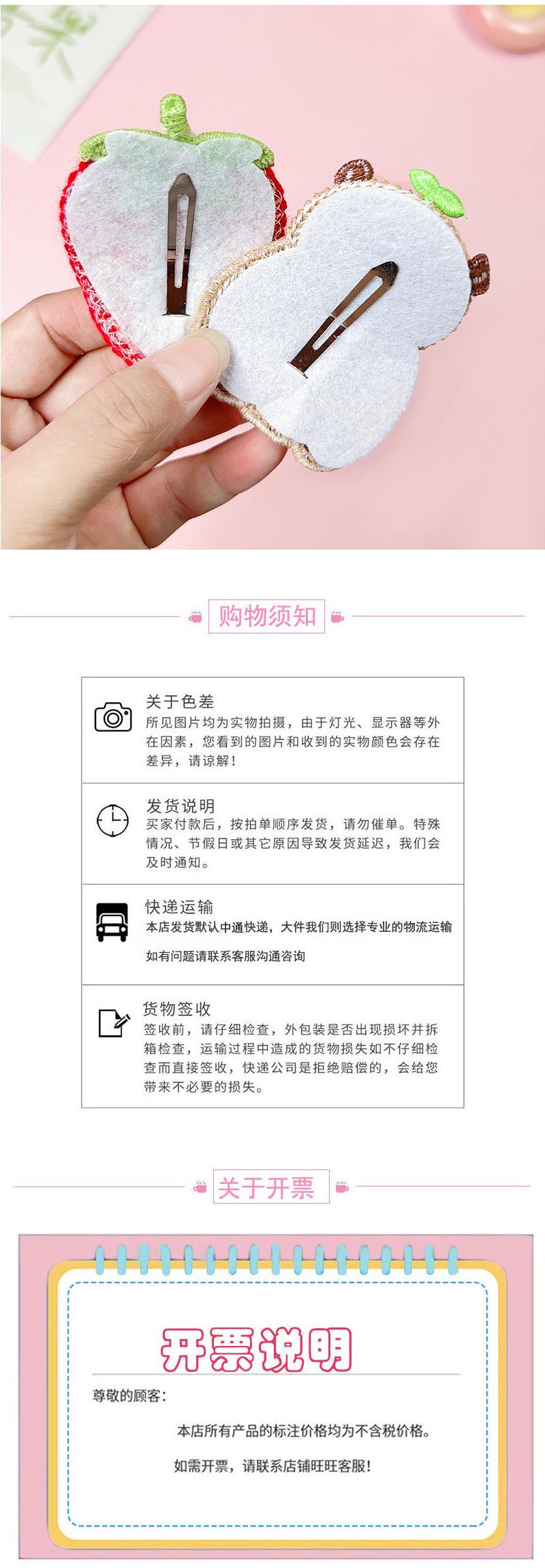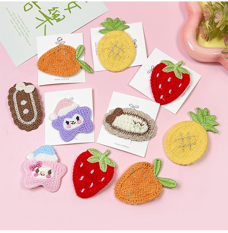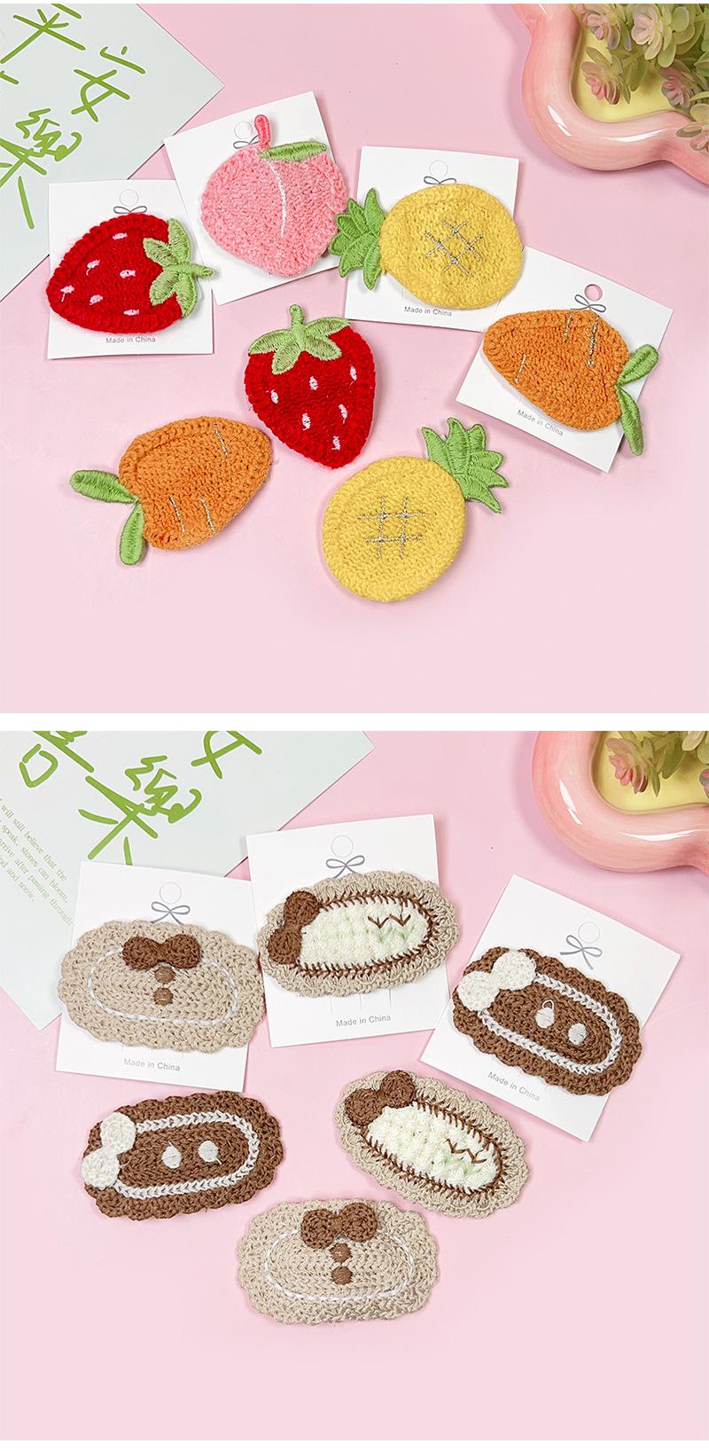 Nuevos productos al por mayor, linda horquilla de punto de fresa, clip de flequillo de dibujos animados, clip BB, accesorios para el cabello con fruta bordada, clip para la cabeza